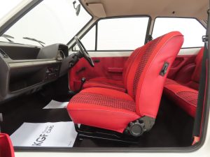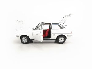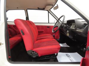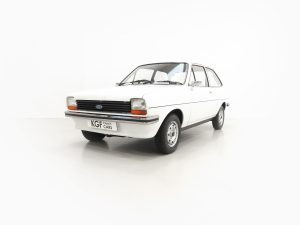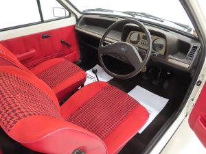 This ultimate collector quality Fiesta boasts wonderful credentials of just one owner and 8,134 miles from new! Finished in Diamond White, (Code B 3), the paintwork gleams and all body panels are factory fitment. Close inspection of this unicorn of Fiesta’s will reveal the bodywork in amazing condition and an original underside in perfect structural condition. The panels are pin straight with linear gaps and crisp seams preserved. Close scrutiny reveals nothing other than a handful of carefully touched in markings. Trim sections, original lenses and factory glass are preserved throughout, the latter having registration etching to all panes. The chrome bumpers with black insert are pristine and the supplying dealer steel number plates and front and rear screen stickers remain fitted. The rear screen sticker is faded. As we fast approach the 50th anniversary of the Ford Fiesta, what better way of celebrating this milestone with this very special one owner example with miniscule mileage?