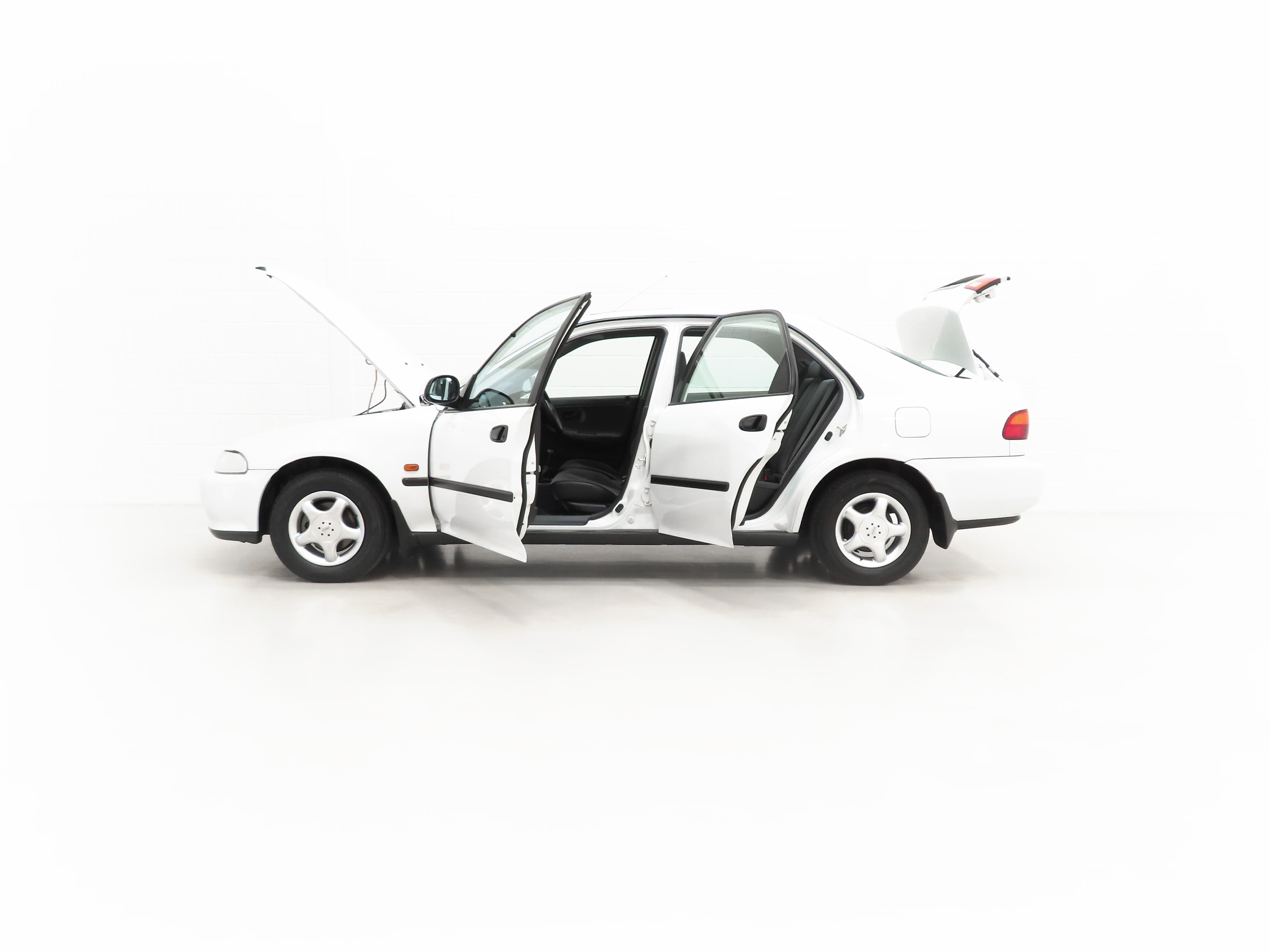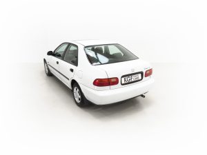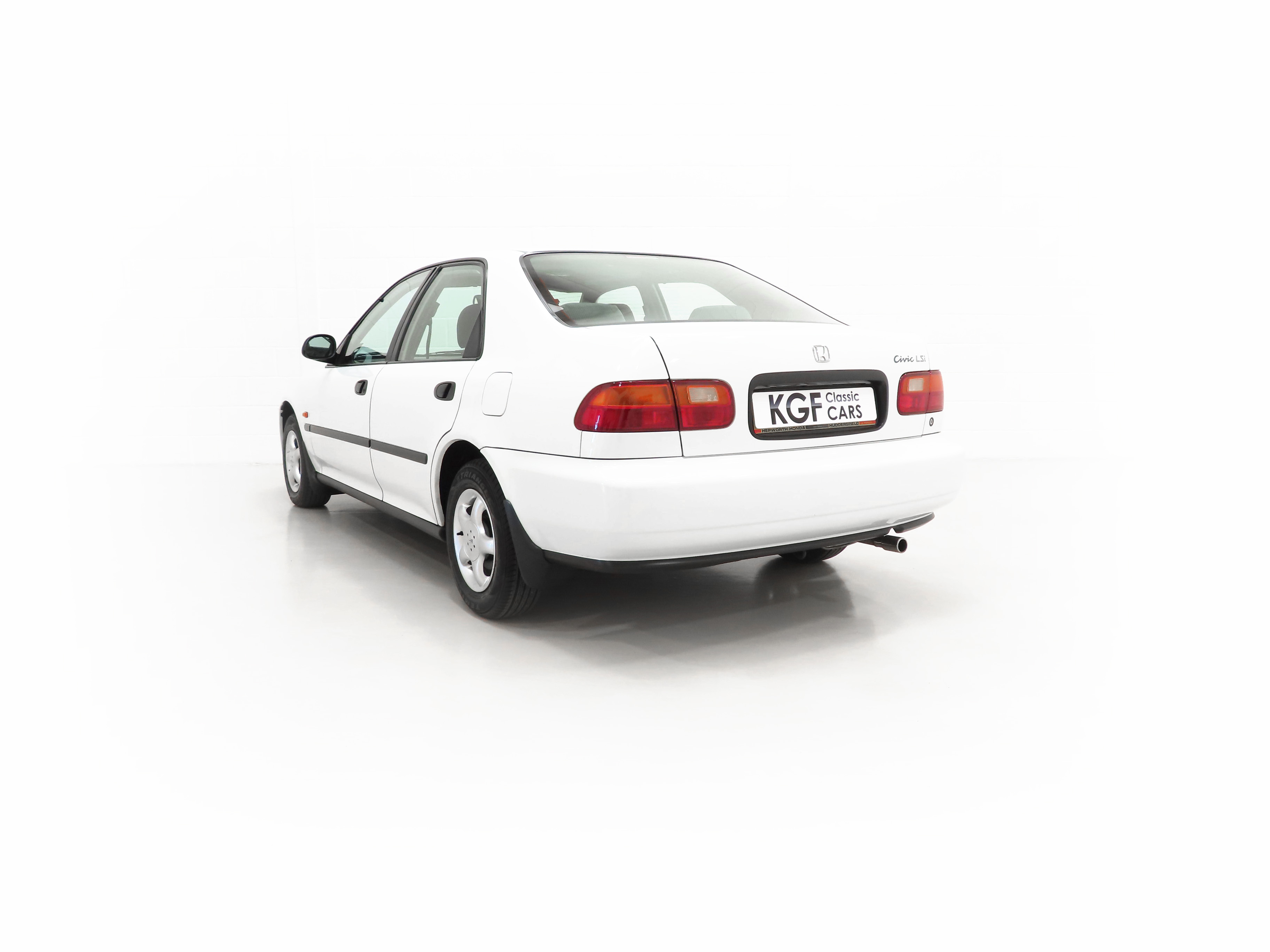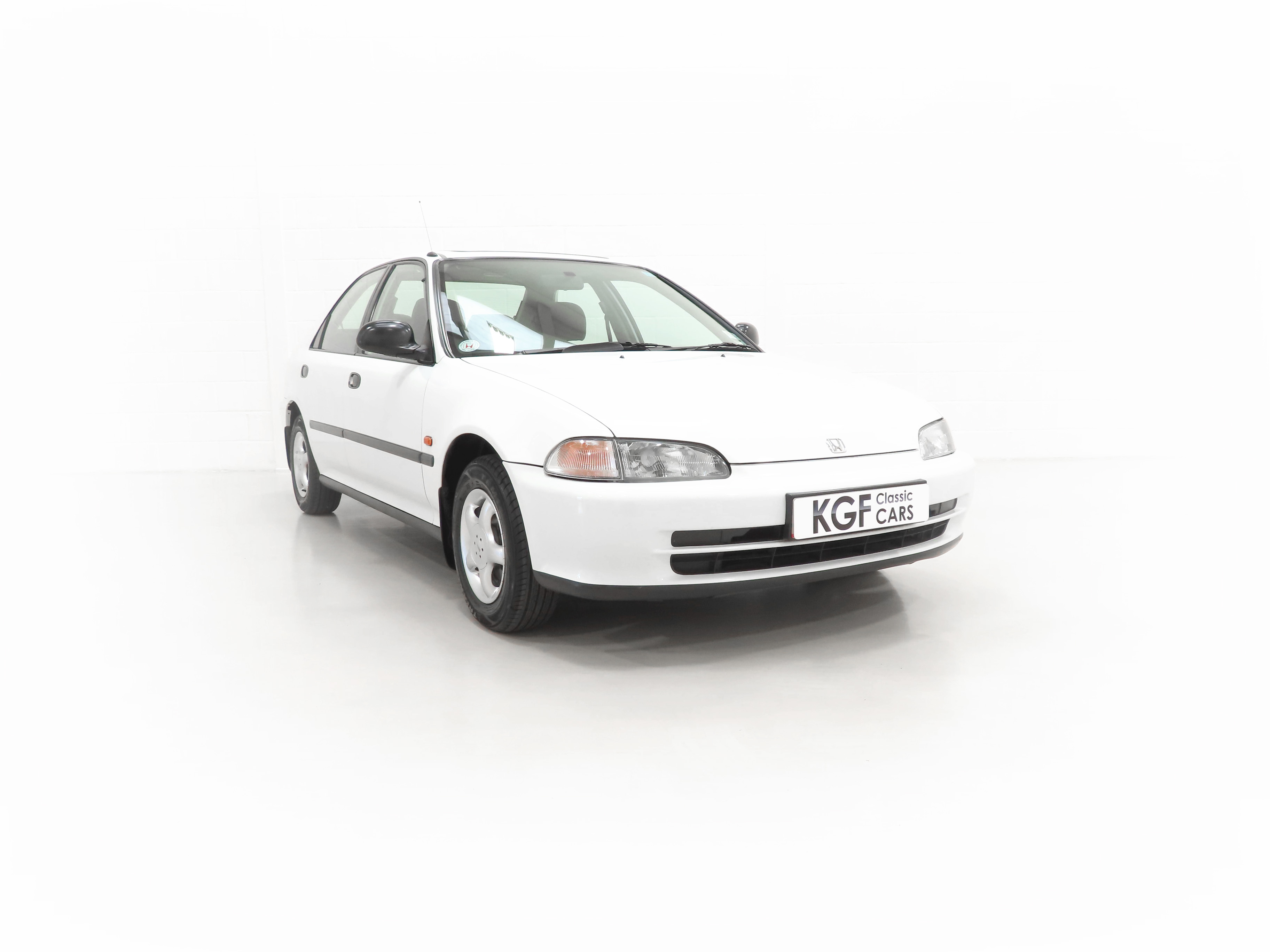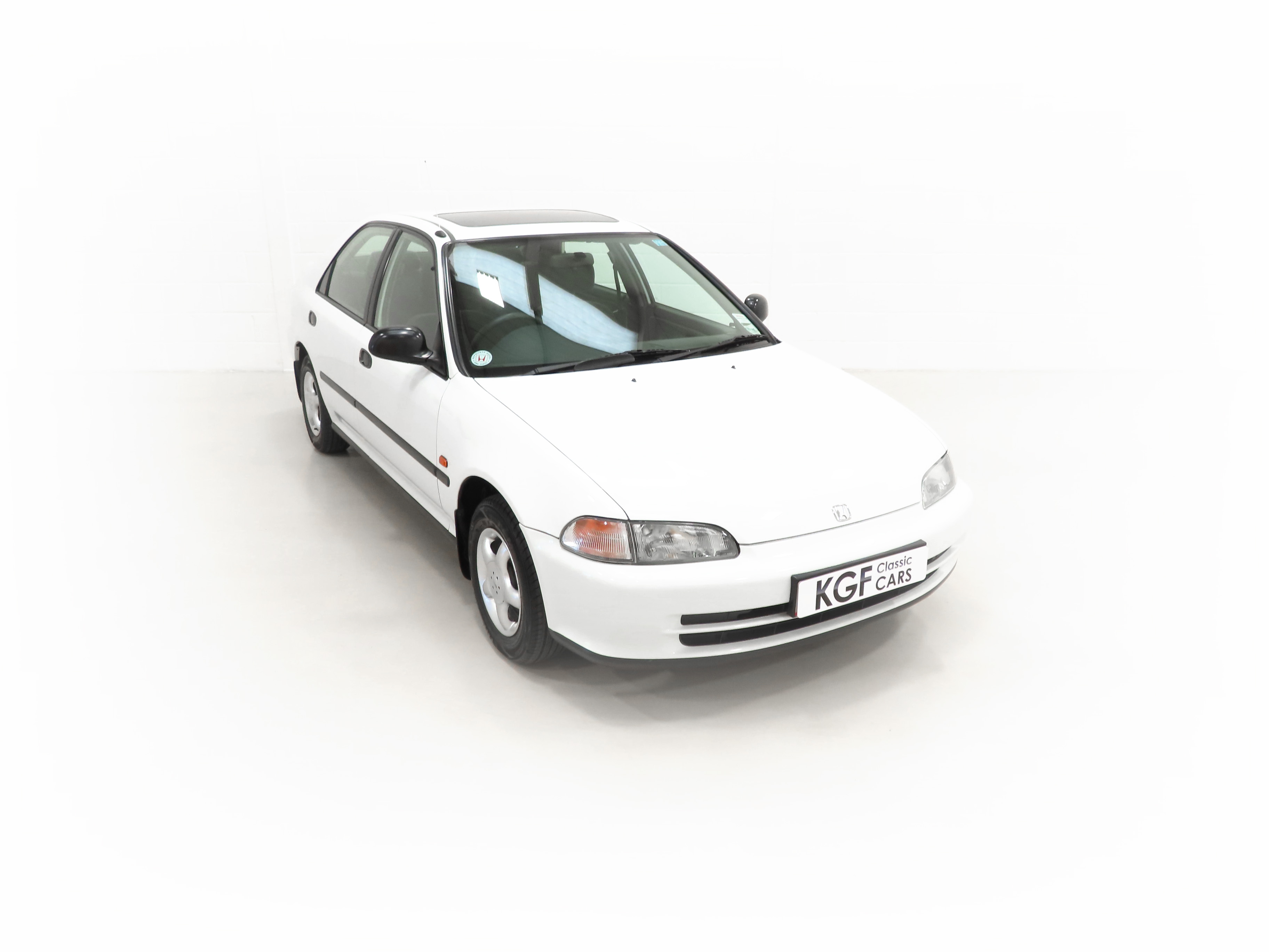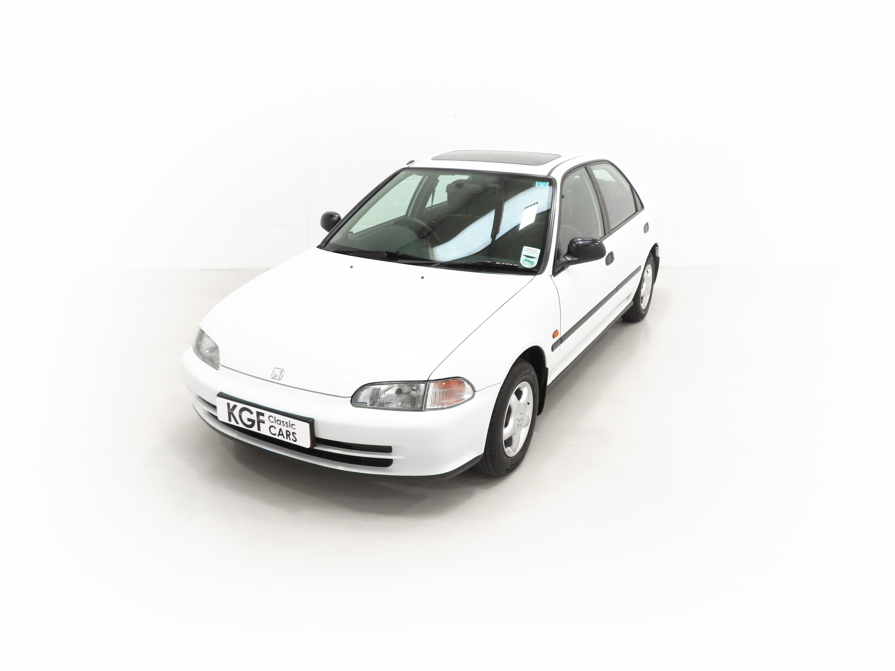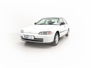 Integrated body-coloured bumpers, green tinted windows, side mouldings, electric tilt/slide sunroof, doorbeams, electric windows-auto-up on driver’s side, clock, centre console, interior tailgate release, interior fuel cap release, RDS stereo cassette, adjustable front and rear headrests, passenger seat magazine pocket, folding 60/40 rear seat lockable from interior, height adjustable front seat belt anchors. Factory Options: Alloy wheels. Dealer Options: Mud flaps, Honda Civic carpet mats. New Car Handover Pack: Hepworth Honda branded item to include, paper floor mats, touch up paint pack, Super Lube, car polish, screen wash.