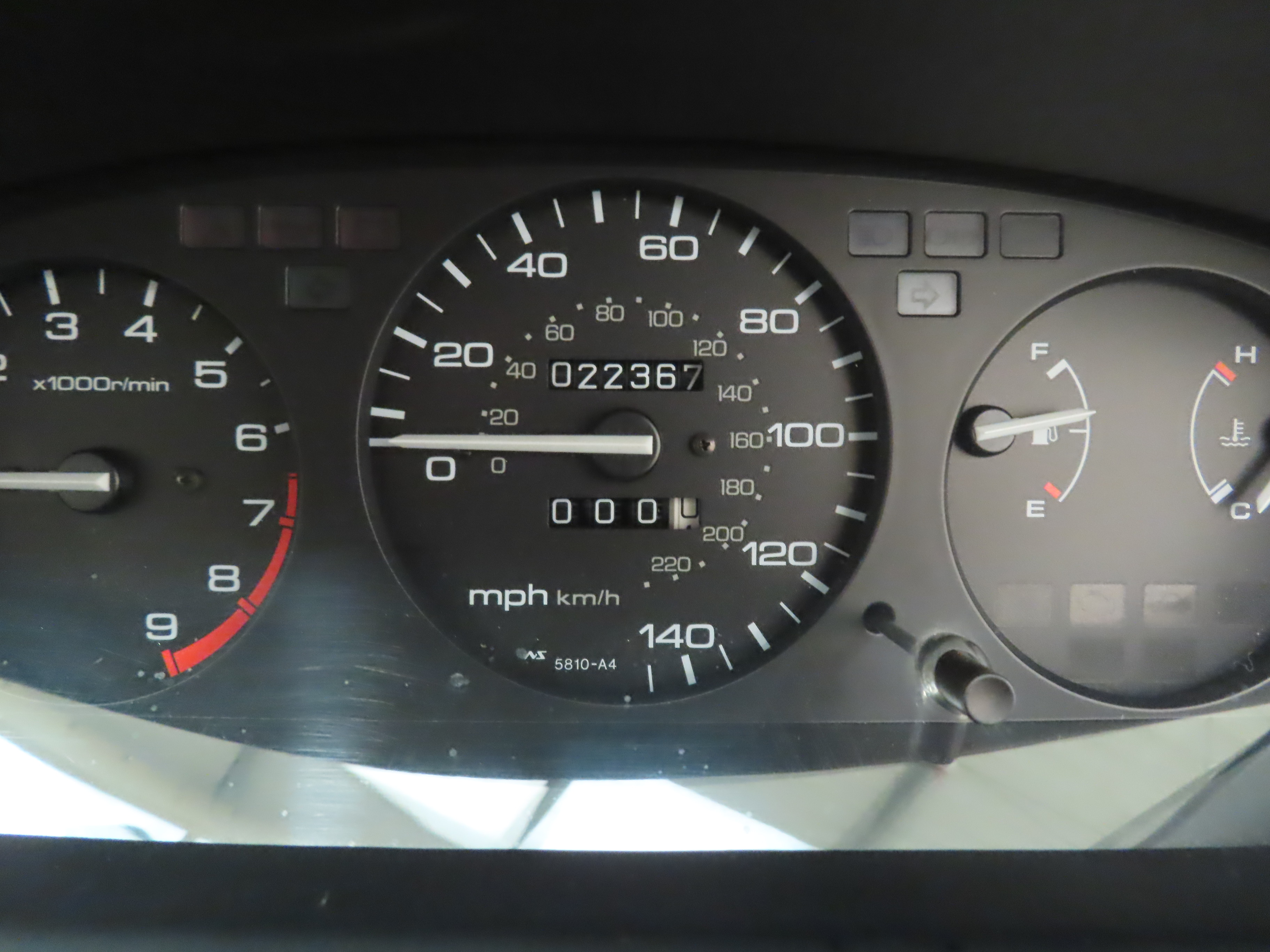 A typical Honda interior where everything feels engineered to precision and beautifully made. The spotless interior is trimmed in Charcoal Moquette, (Code Type D), with the seat material remaining tight and free from any notable wear. The carpets are pristine having been protected from new by tailored Honda Civic floor mats and the headlining is perfect. Even small circular PDI dot stickers have remained on the seats, most having been long lost or picked off by small fingers! The front passenger door card material has shrunk slightly. The steering wheel and gear knob display a distinct lack of wear synonymous with the very low mileage. The dashboard is immaculate, and all functions operate seamlessly including the original Honda RDS stereo cassette. The pristine boot space boasts an unmarked carpet underneath which the boot floor is as new with unused jack present. Clean, fresh and totally unspoilt.
