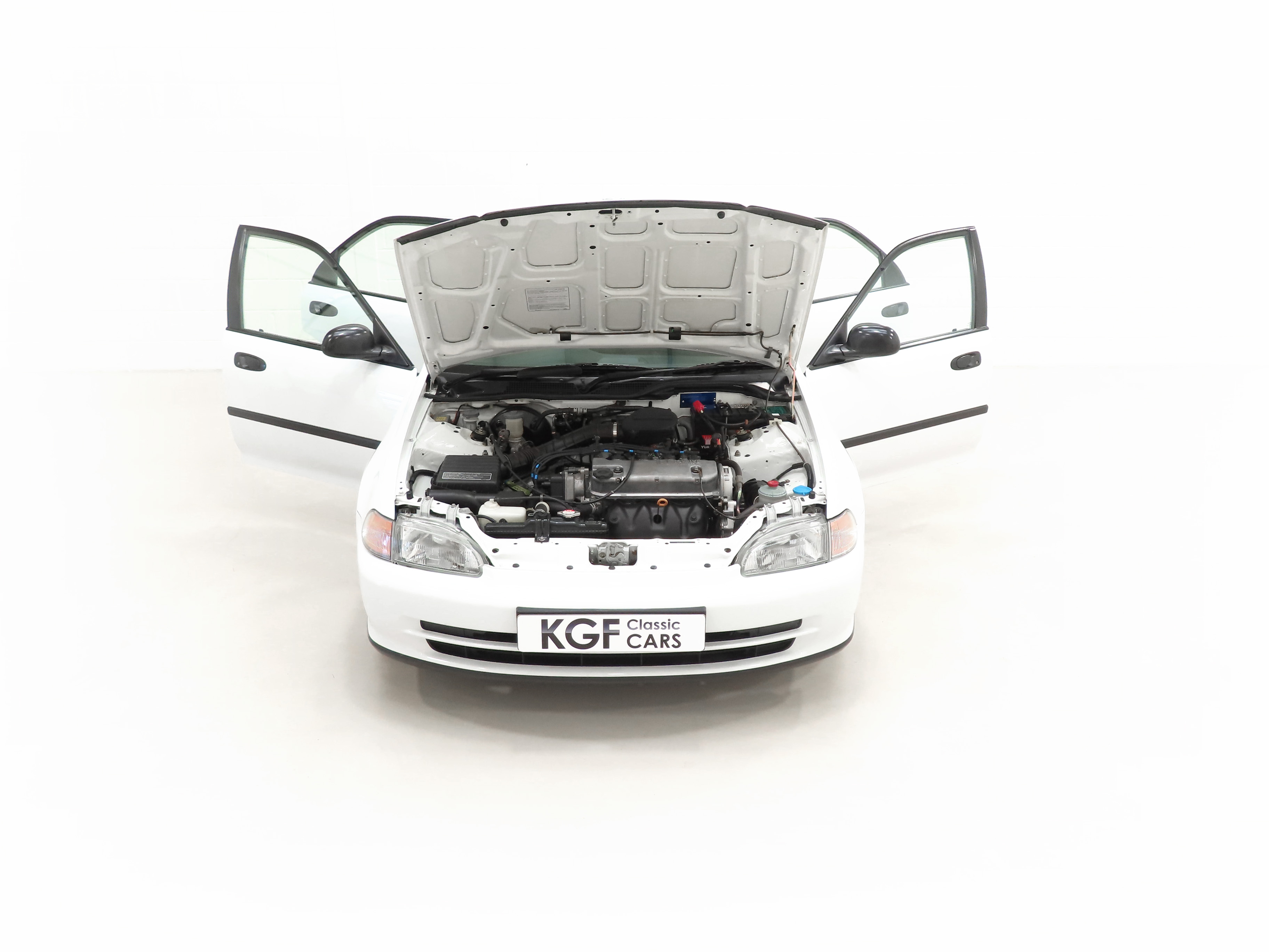 This ultra-rare survivor Fifth Generation Civic has covered just 22,367 miles from new, fully verified with colossal Honda main dealer service history. Finished in Frost White, (Code NH538), the paintwork presents beautifully with a bright polished shine throughout. The factory body panels are straight and free from dings, scuffs, damage and importantly, corrosion! Bumpers, trim and original badges/decals are fully intact as is all factory glass and the black plastics have not faded. Wonderfully, the supplying Honda dealer number plates, front and rear screen stickers and tax disc holder remain fitted. The tax disc even has the first tax disc in the screen! These Civic’s have all but disappeared from our roads and low mileage cosseted examples such as this are even more scarce.