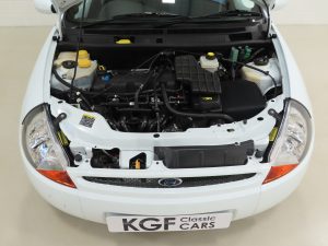 The dependable and frugal 1.3 Duratec four-cylinder engine as fitted to all post 2002 non-sporting Ka’s produces a power output of 70bhp and 106Nm of torque to achieve a top speed of 104mph and 0-60 in 14.1 seconds. The engine is quiet and performs faultlessly and all fluids are clean. The pristine engine bay features all factory stickers, plates, PDI markings and even fragile paper labels fully intact to items such as the inner headlamps casings. The five-speed gearbox is light, precise and effortless to use with a perfectly comfortable motorway cruising manner.
