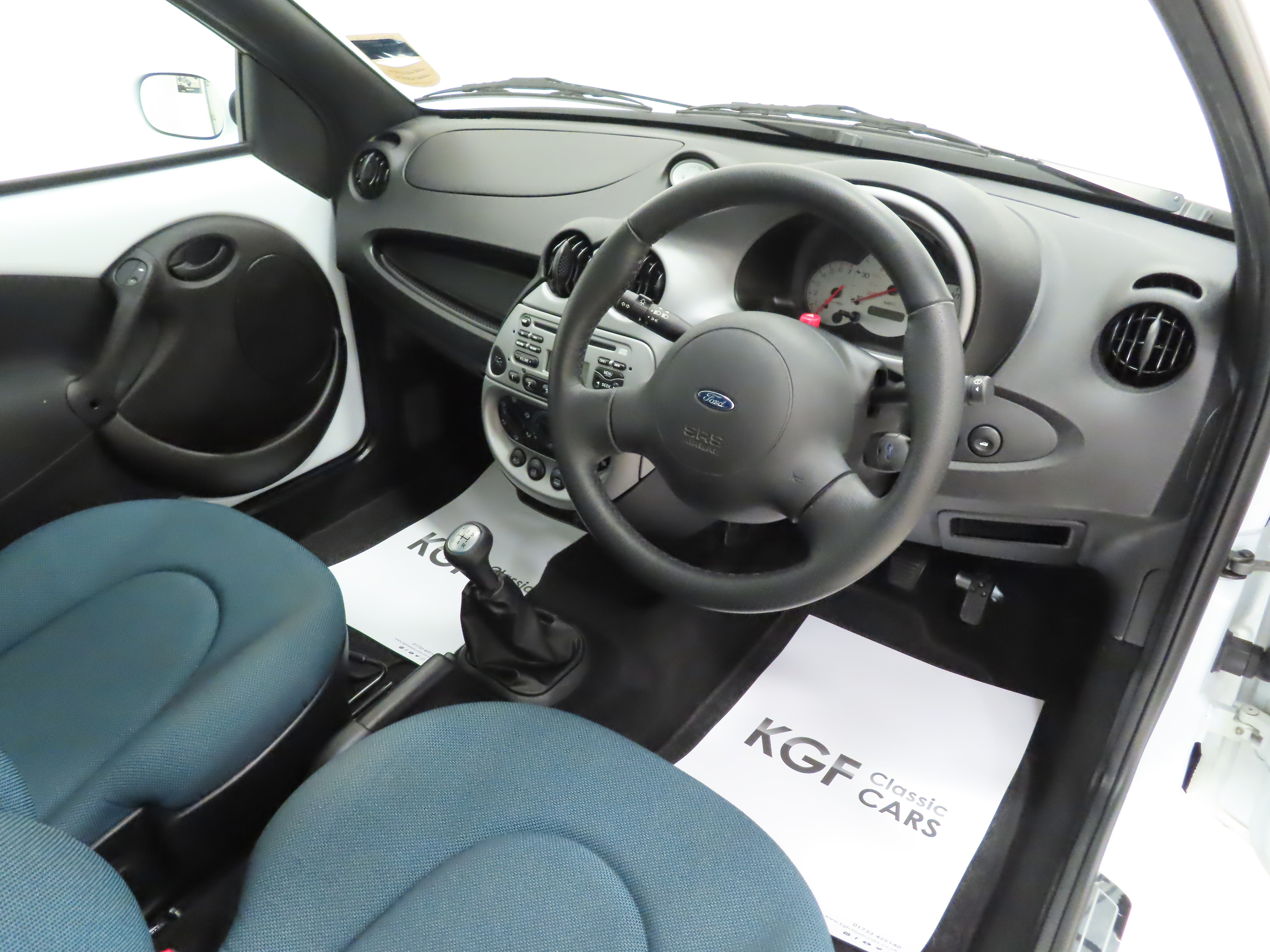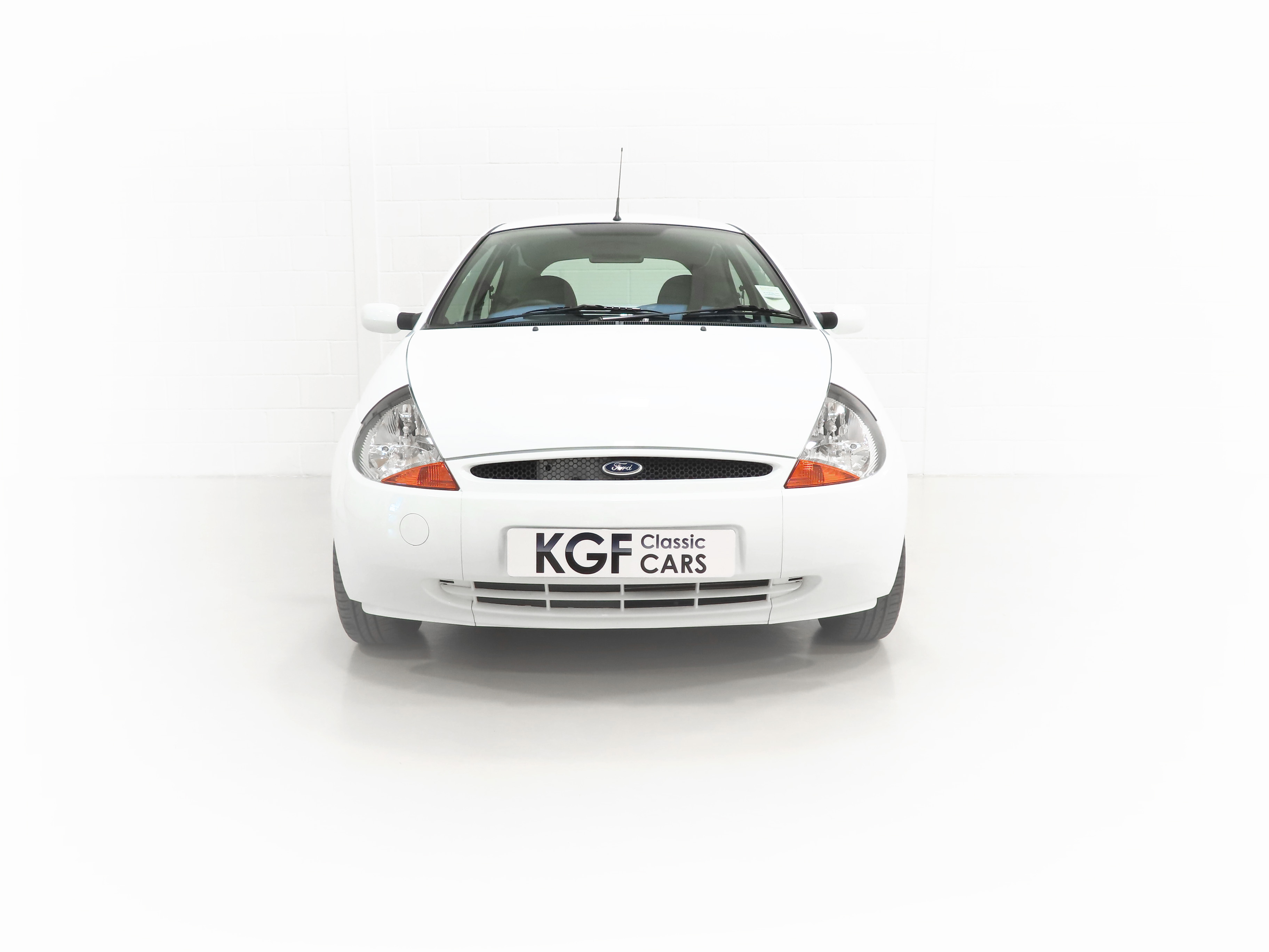 Ford Motor Company’s ‘New Edge’ design language began with the original Ka as the first production Ford to adopt the radical exterior styling mostly recognised with its use of intersecting arcs and crisp lines. This exceptional Ka has covered just 9,854 miles from new with only one owner. Finished in factory original Frozen White, (Code F7), the bodywork and paint finish are simply outstanding with a bright pure shine to the pin-straight panels. A small touched in scuff to the nearside door mirror is the only imperfection worthy of mention. This garaged Ka has none of the common bodywork issues often found and the amazing underside still displays factory labels, long lost on most examples. Ford Supplying dealer number plates, rear screen sticker and tax disc holder remain fitted. Hugely superior to the usual offerings and without question, one of the finest low mileage cars in existence.