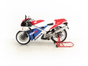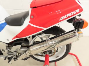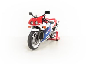 A scaled down version of the larger VFR race models, the UK VFR400R NC30 was horrendously expensive and was similarly priced to 1000cc bikes of the time! Sharing many desirable features of the legendary RC30 homologation model created for World Superbike Championship such as Pro-Arm rear end, endurance style clocks, gear-driven camshafts, close-ratio style gearbox, and 360° firing order (and therefore exhaust note) as its 750cc inspiration. Rare UK bikes differ from their Japanese domestic market examples and are unrestricted with an oil cooler, larger hinged mirrors, separate numberplate lamp and different carbs amongst many more features. With the Honda Racing Corporation (HRC) build quality and rarity, it is no wonder these exotic miniatures are so collectable.