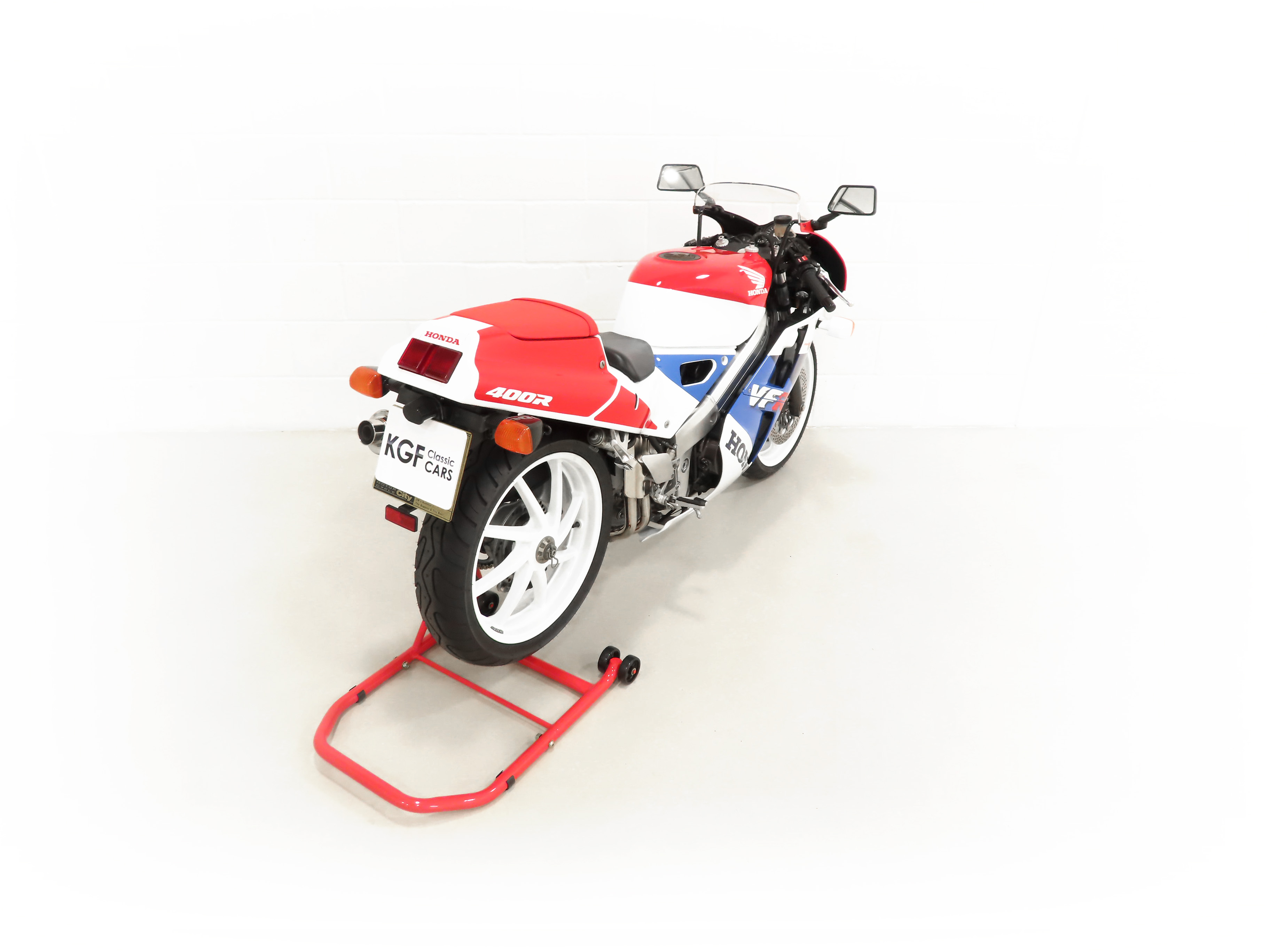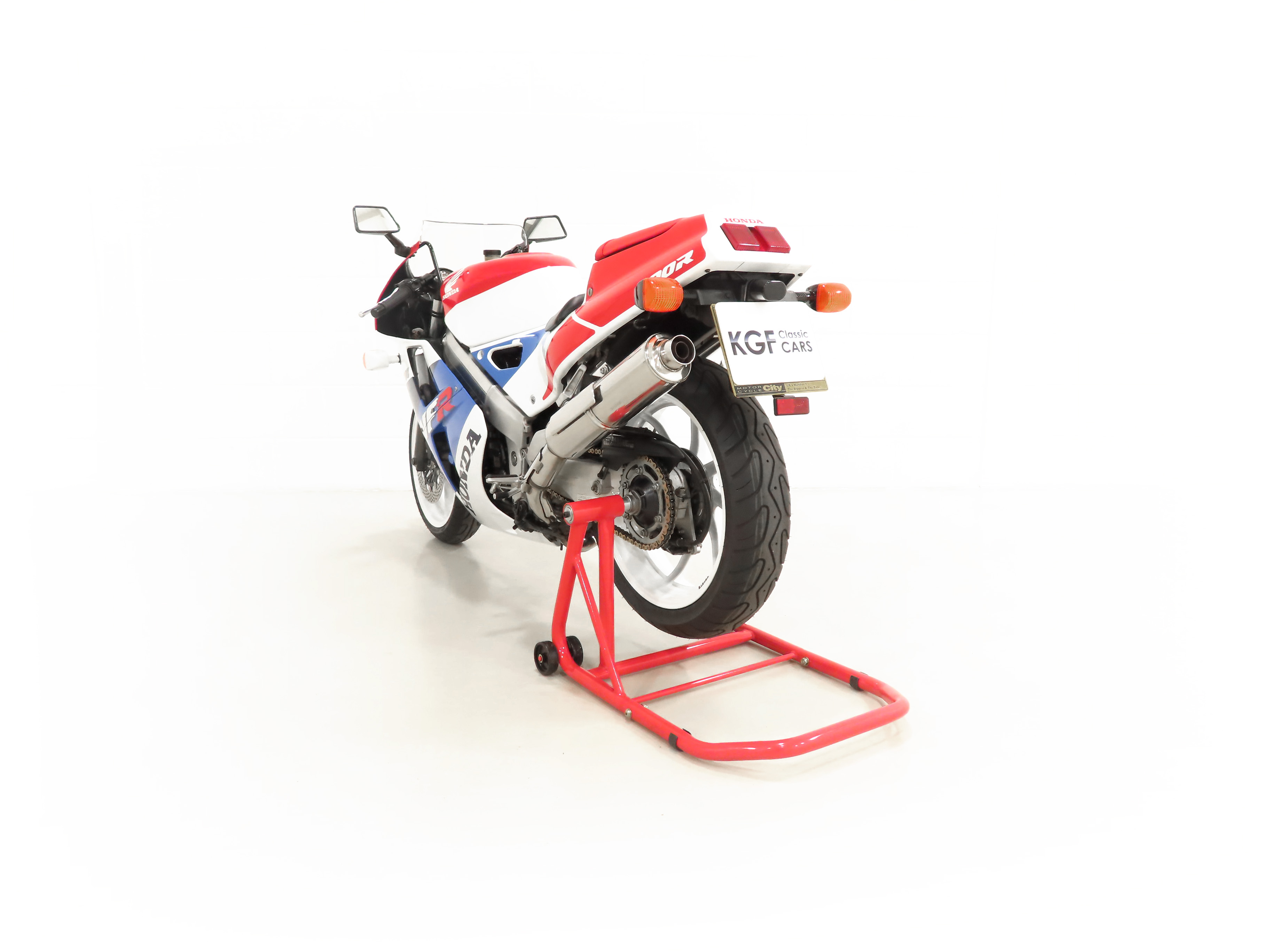 A scaled down version of the larger VFR race models, the UK VFR400R NC30 was horrendously expensive and was similarly priced to 1000cc bikes of the time! Sharing many desirable features of the legendary RC30 homologation model created for World Superbike Championship such as Pro-Arm rear end, endurance style clocks, gear-driven camshafts, close-ratio style gearbox, and 360° firing order (and therefore exhaust note) as its 750cc inspiration. Rare UK bikes differ from their Japanese domestic market examples and are unrestricted with an oil cooler, larger hinged mirrors, separate numberplate lamp and different carbs amongst many more features. With the Honda Racing Corporation (HRC) build quality and rarity, it is no wonder these exotic miniatures are so collectable.