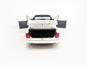 This deliciously retro XR3i Cabriolet represents an original and unspoilt example of Fords iconic soft-top. Finished in striking Diamond White, (Code BK3), the paintwork boasts a fabulous uniform finish that clearly shows just how much the car has been cherished. All body panels are factory fitment with clearly defined inner wings stamps and the bodywork and shut lines are beautifully straight. Light touched in marks are visible upon close inspection but are entirely forgiven on such an original example as are the slightly faded XR3i decals. The Ford RS bodykit was fitted from new with RS logos clearly visible and the underside is remarkably well preserved. The white soft-top roof is beautifully clean, remains perfect in condition, fit and operation. The matching colour keyed hood cover for use when the hood is lowered is present and spotless. Factory Sigla glass and Ford light clusters remain fitted. A very well cared for example ready to enjoy as Ford intended.