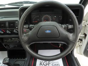 Date of registration of this late 90 Spec example was the 4th July 1991 by Ford Main Dealer, Central Motor Company (Leicester) Ltd. Ownership of the car has been traced right back and the previous owner bought the car in 2016, the lady keeper prior to him having owned the car for around 20 years. The history file is humongous and dates back to when the car was new with masses of paperwork including MOT records dating back to the first in 1994. There are also service book records since the first service carried out in late 1991. Part of the impressive vehicle history is that the car was featured with the previous owner in the April 2018 issue of ClassicFord magazine whereby a prime example was required for a four-page ‘Buying Tips’ article. This very car was used in the feature and several copies of the magazine are in the folder. All handbooks are included as well as both seats of keys with alarm fobs and a Ford range brochure from 1990.