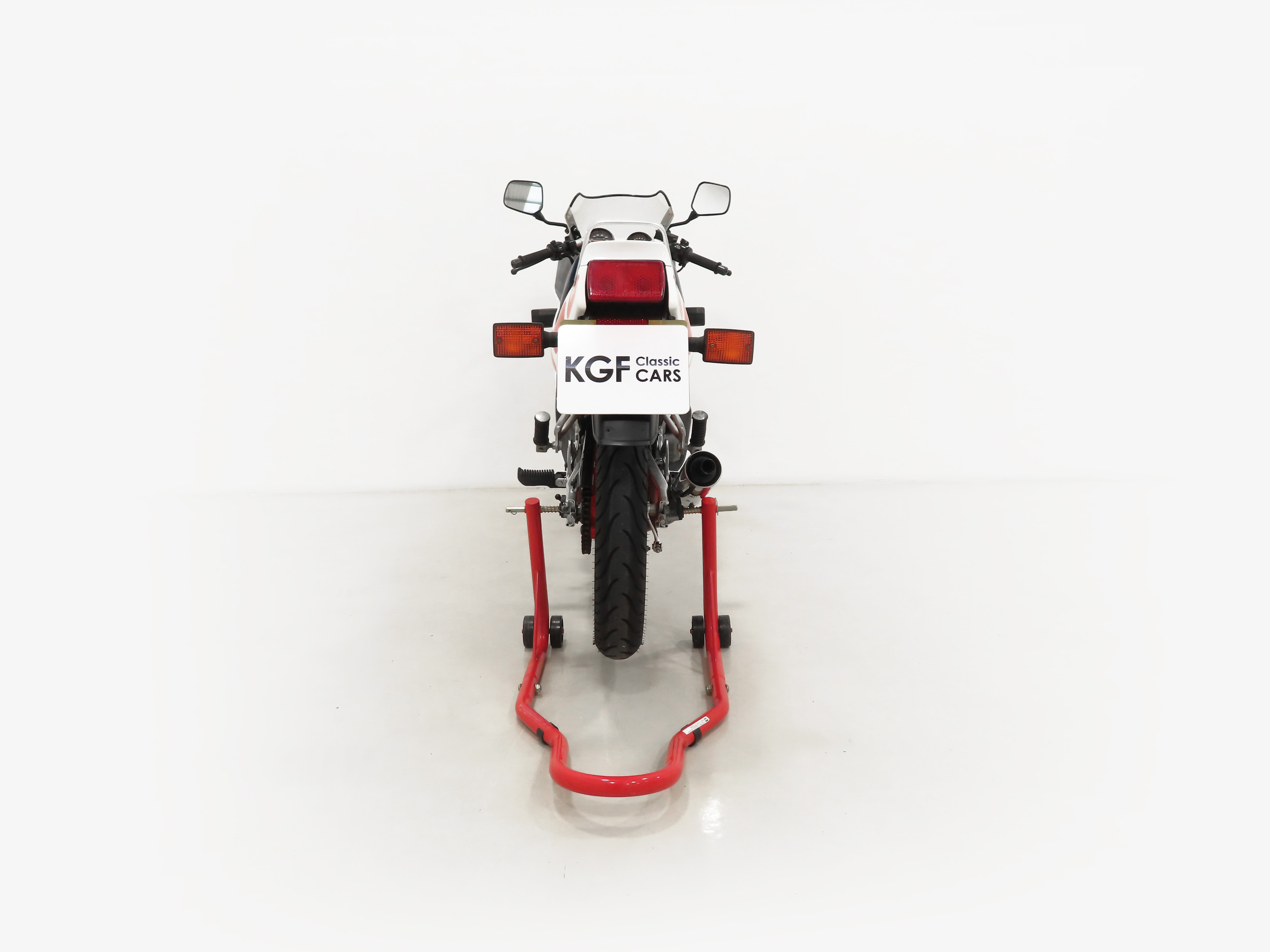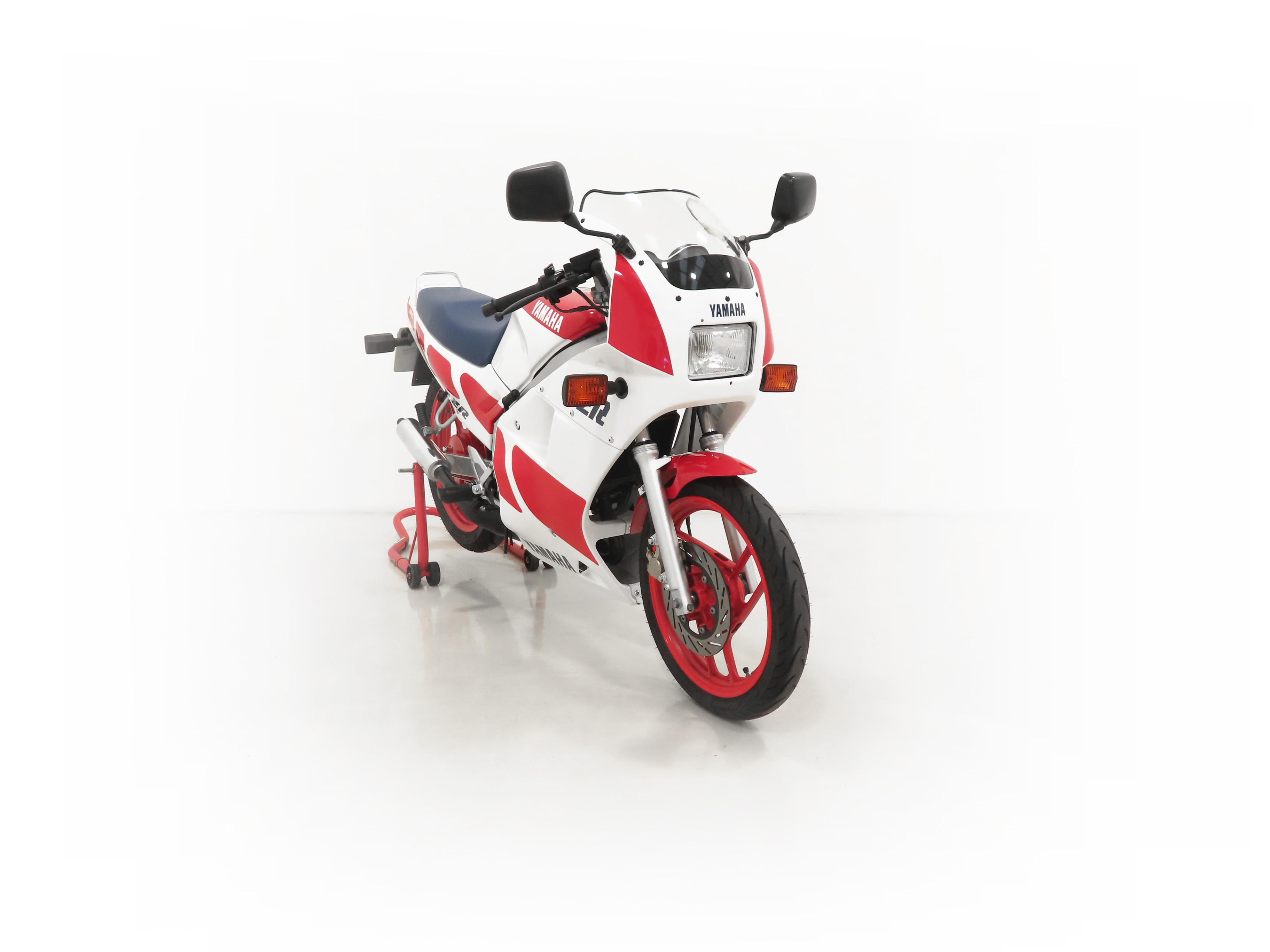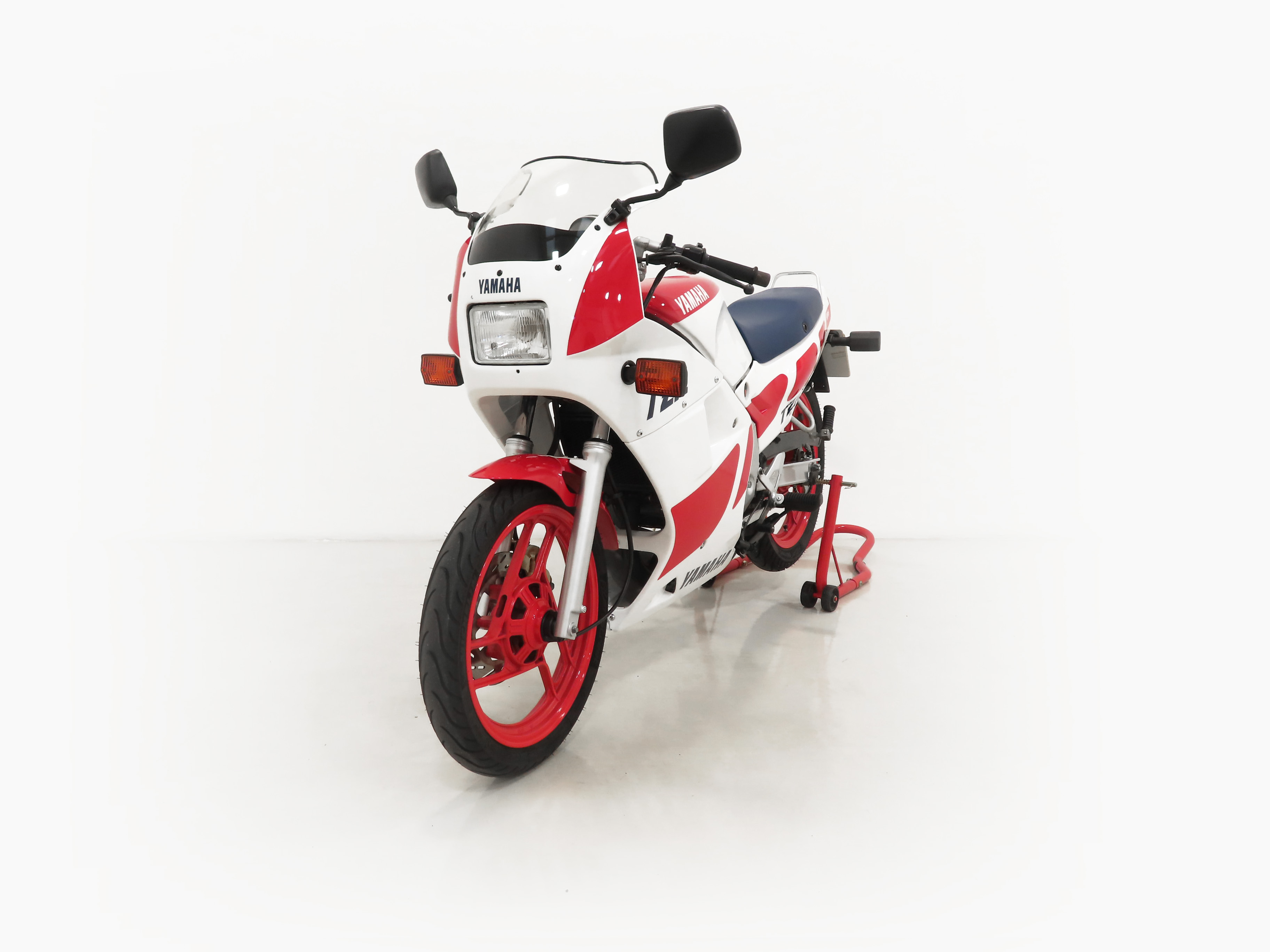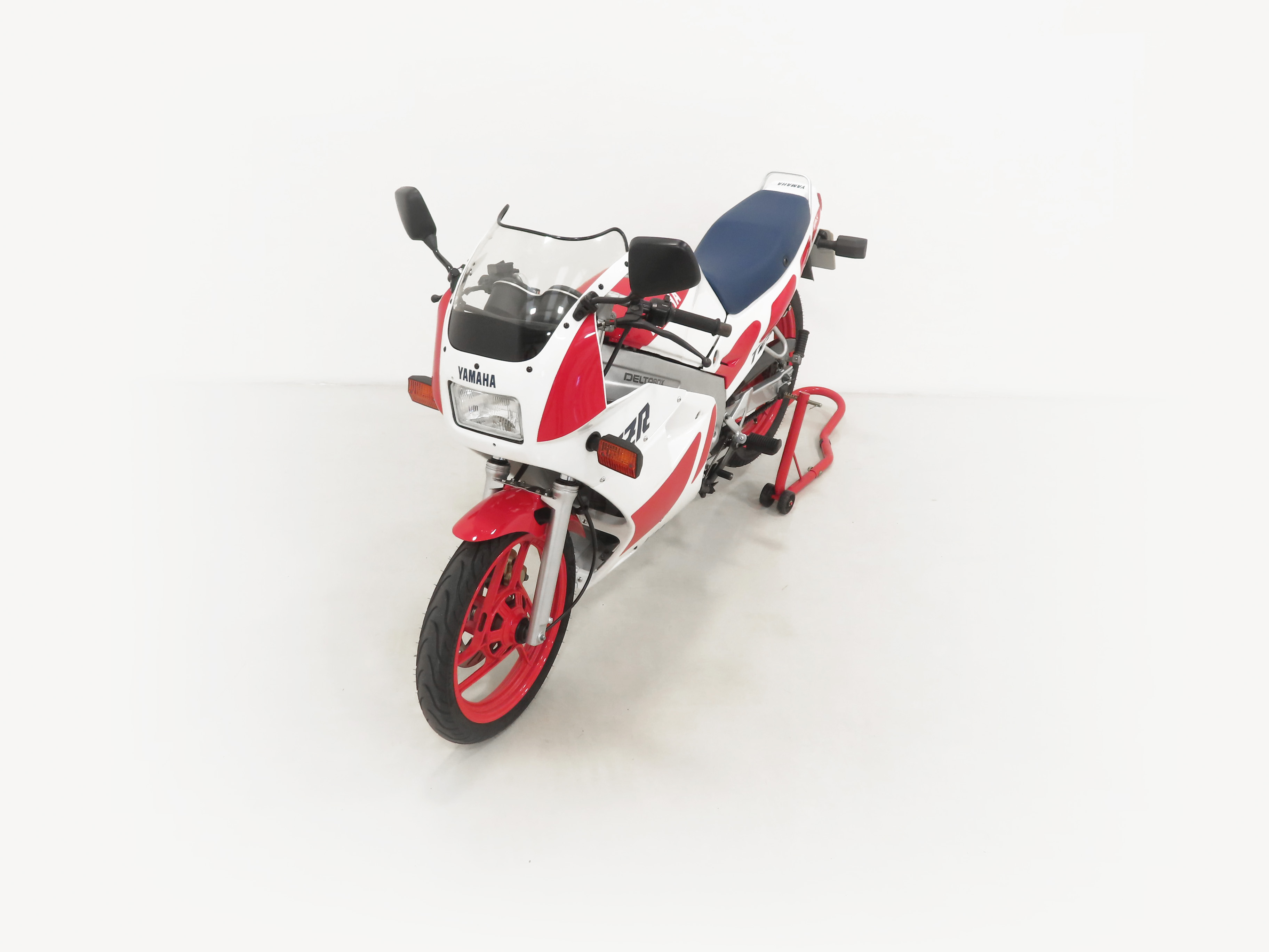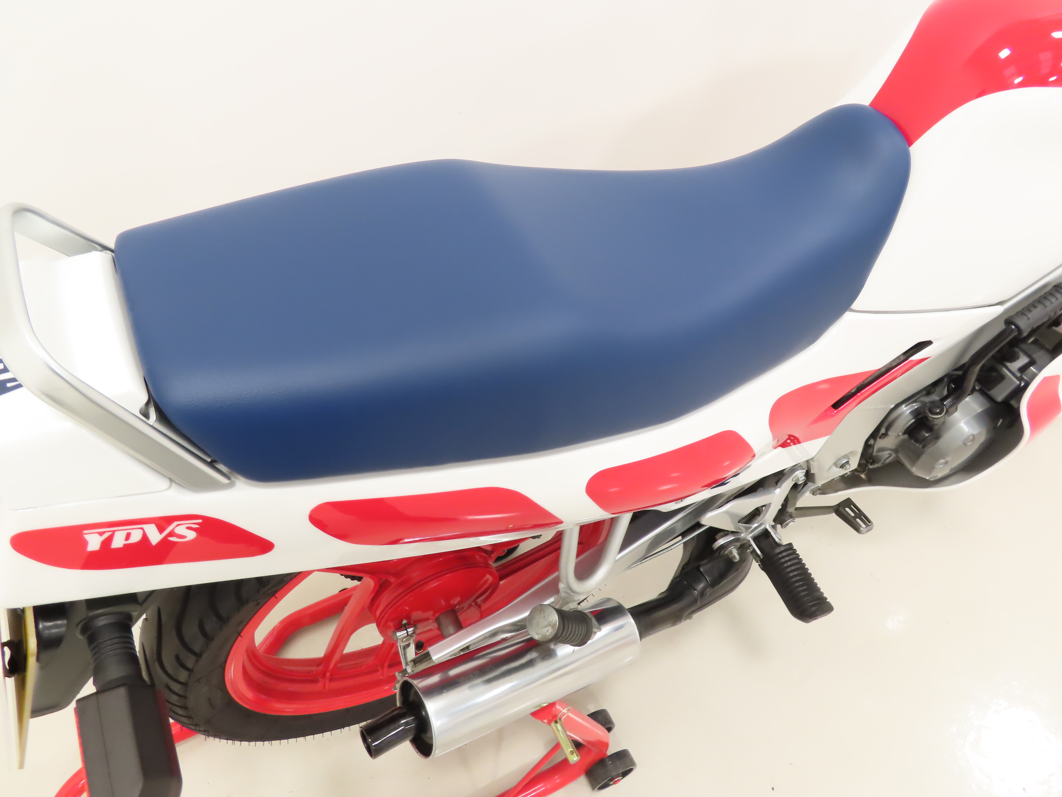 Following on from the traditions of Yamaha’s famous RD models but taking on groundbreaking technology, the TZR125 was yet another world-beating supersports lightweight machine. This exceptional specimen is finished in the red and white colour scheme that the bike and the optional full fairing was made with. Many components of this example are unrestored with the exception of the stunning paintwork to the tank and fairings that was entrusted to renowned Pauls Custom Paintwork of West Kingsdown who specialises in ‘all paint no stickers’ finishing. The white is done in Pearl finish so, at a glance, it appears standard but in sunlight it looks amazing with a pearl fleck. Originality is seen extensively with the original olive drab green finish to fittings as well as factory switchgear, hand grips and foot peg rubbers. The windscreen shows some faint stress crazing to the top section. Light patina to the unrestored components is fully acceptable and the bike showcases the perfect mix of pleasing originality and flawless paintwork. The seat is professionally retrimmed in the correct blue covering, underneath which is the original Yamaha toolkit. This is a very special bike.