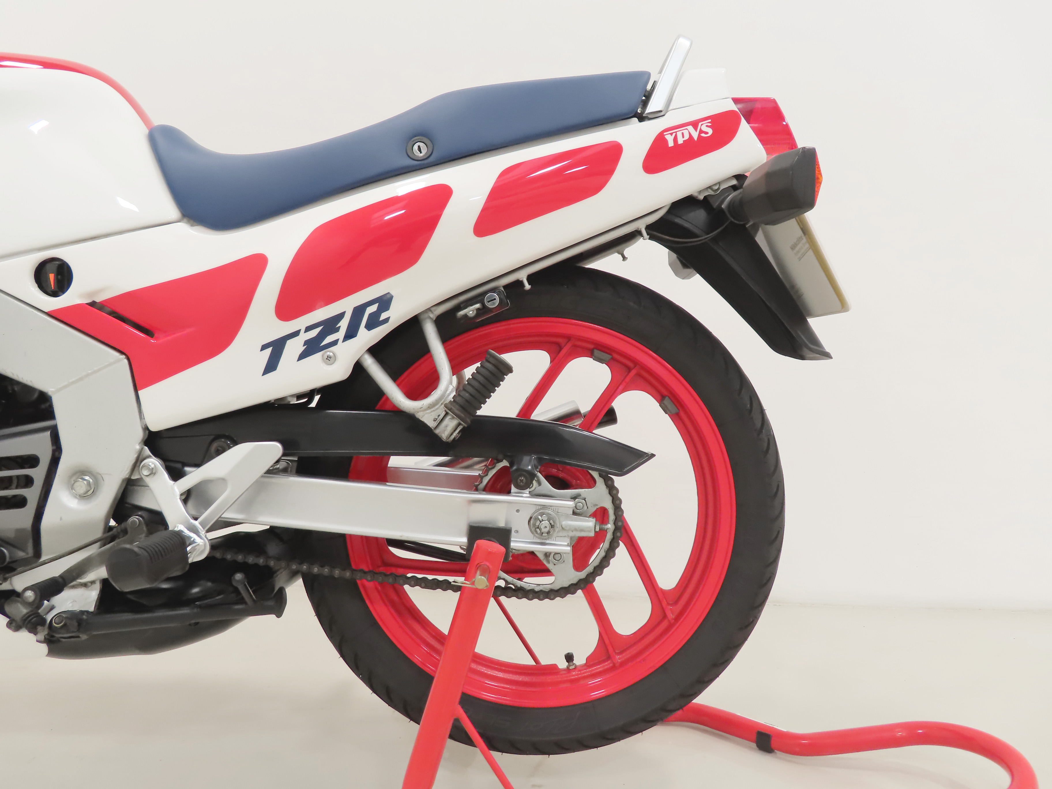 The cast alloy triple-spoke wheels retain the original unrestored red finish with prominent cast stampings and are shod in premium Michelin PilotStreet 80/90-16 front and 100/90-18 rear tyres. The TZR features a hydraulic disc front brake with slotted rotor to aid cooling and a correct gold finish opposed-piston caliper. The rear brake incorporates a weatherproof drum integral with the wheel. A great combination to generate maximum braking force.