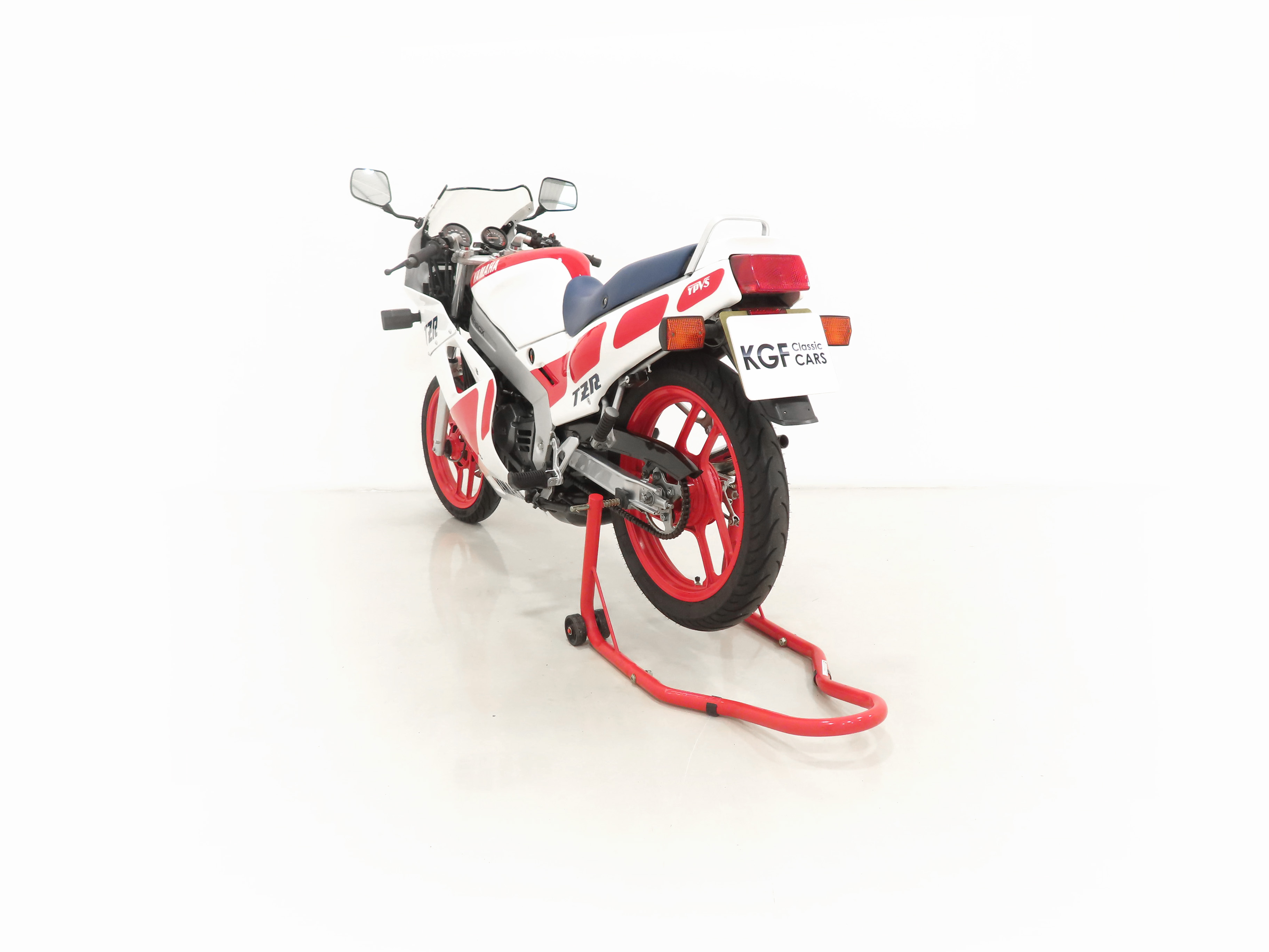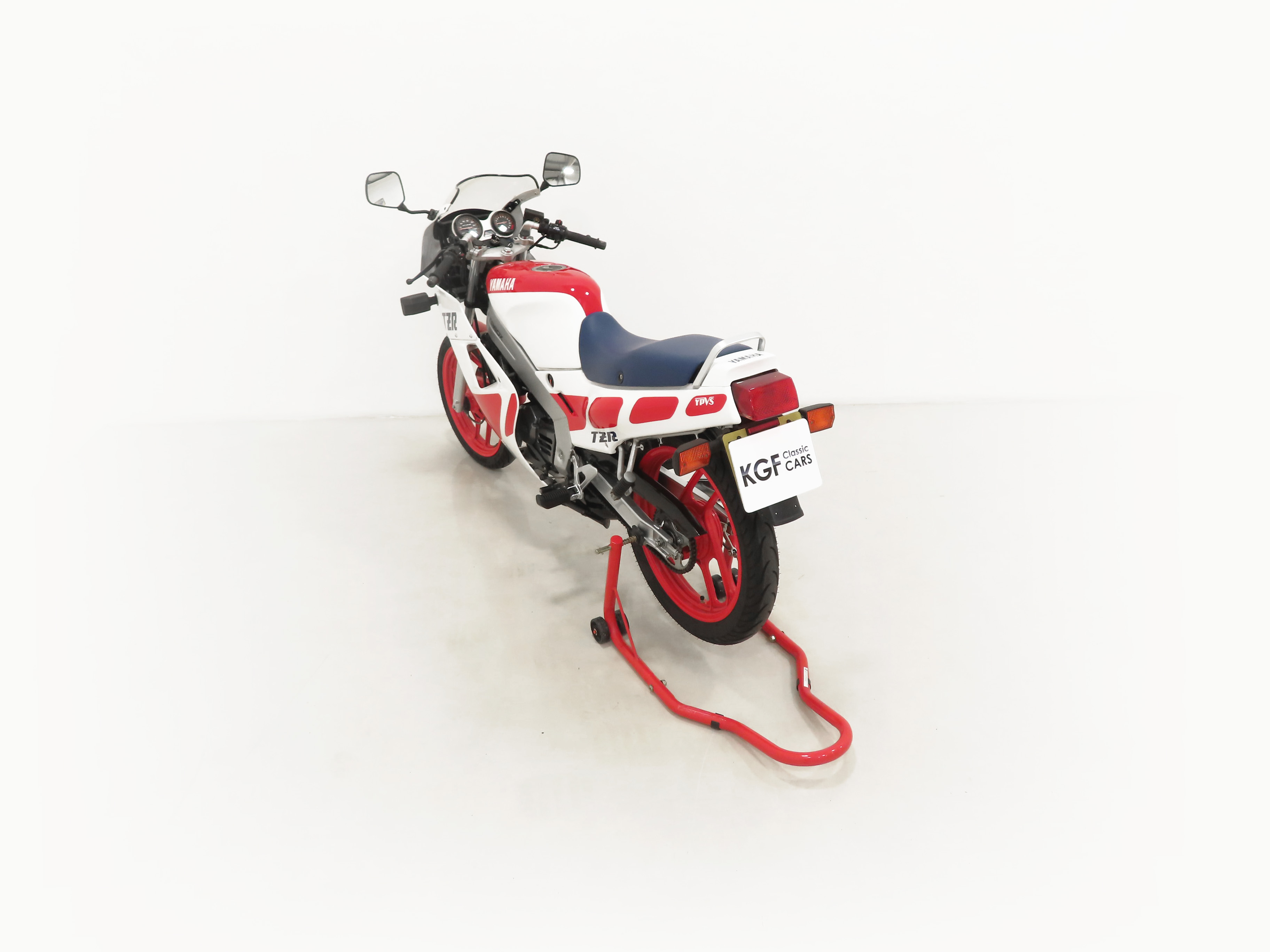This amazing Yamaha TZR125 is a French European example that was brought into the UK in 2018 believed to be a one owner bike. The bike is UK registered on an age-related D prefix and fully roadworthy with valid MOT until May 2026. A Dating Certificate from Paul Dawkins, Motorcycle Historian and Dating Officer at the UK based Aircooled RD Club, confirms the bike was manufactured in June 1987 and that the colour and component specification is correct for the model year. Purchased and UK registered in 2019 and owned by the same collector ever since, the bike has been on display in his home showroom alongside many other 1980’s motorcycles, cars and retro memorabilia including an unused Sinclair C5! It has been well maintained with light regular use and performs fabulously, especially being an unrestricted full power YPVS model! The owner’s testimonial is also included with the history file. Supplied with its handbook, UK registration documents, previous MOT certificates and brochure, it is ready for the next appreciative enthusiast.
