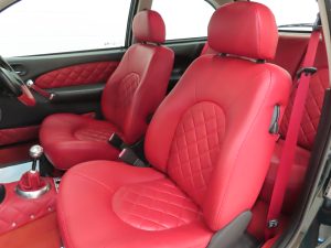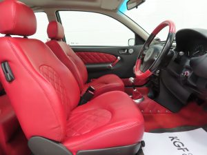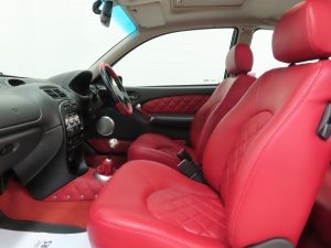 A stunning interior developed by interior designer, Tony Hunter, (who also went on to develop the interior of the R50 Mini), is finished in quilted Red leather, (Code CEN). Styling cues from the 60’s racing era and traditional craftmanship is echoed throughout with twin-needle top stitching, machined aluminium components and spotless Red cut pile carpets. Engine turned aluminium is used for the facia insert finish and all controls, switches and gauges work seamlessly with a quality feel, perhaps thanks to the SDV’s revisions compared to regular production cars? The boot area is clean with a unused factory fitted spare and full tool kit. Standard, immaculate and bespoke.