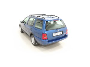 Galvanised steel body, colour coded door mirrors and side rubbing strips, insulating green tinted glass, roof rails, side impact protection, rear wash/wipe, anti-theft central locking, immobiliser, driver airbag, seat belt tensioners, driver’s seat height adjustment, height adjustable steering column, front and rear electric windows, electric sunroof, electric heated door mirrors, digital clock, variable dashboard illumination, intermittent wipers, split folding rear seat, removable luggage cover, lockable illuminated glove box. Factory Options: Pacific Blue Pearl Effect paint, front fog lights, front passenger airbag. Volkswagen Accessories: Wheel arch protectors, contoured mudflaps, rear roof spoiler with integral high level brake light, genuine VW lockable roof bars, VW rubber floor mats, rubber boot mat, luggage partition guard, Sony XRC450RDS radio cassette.