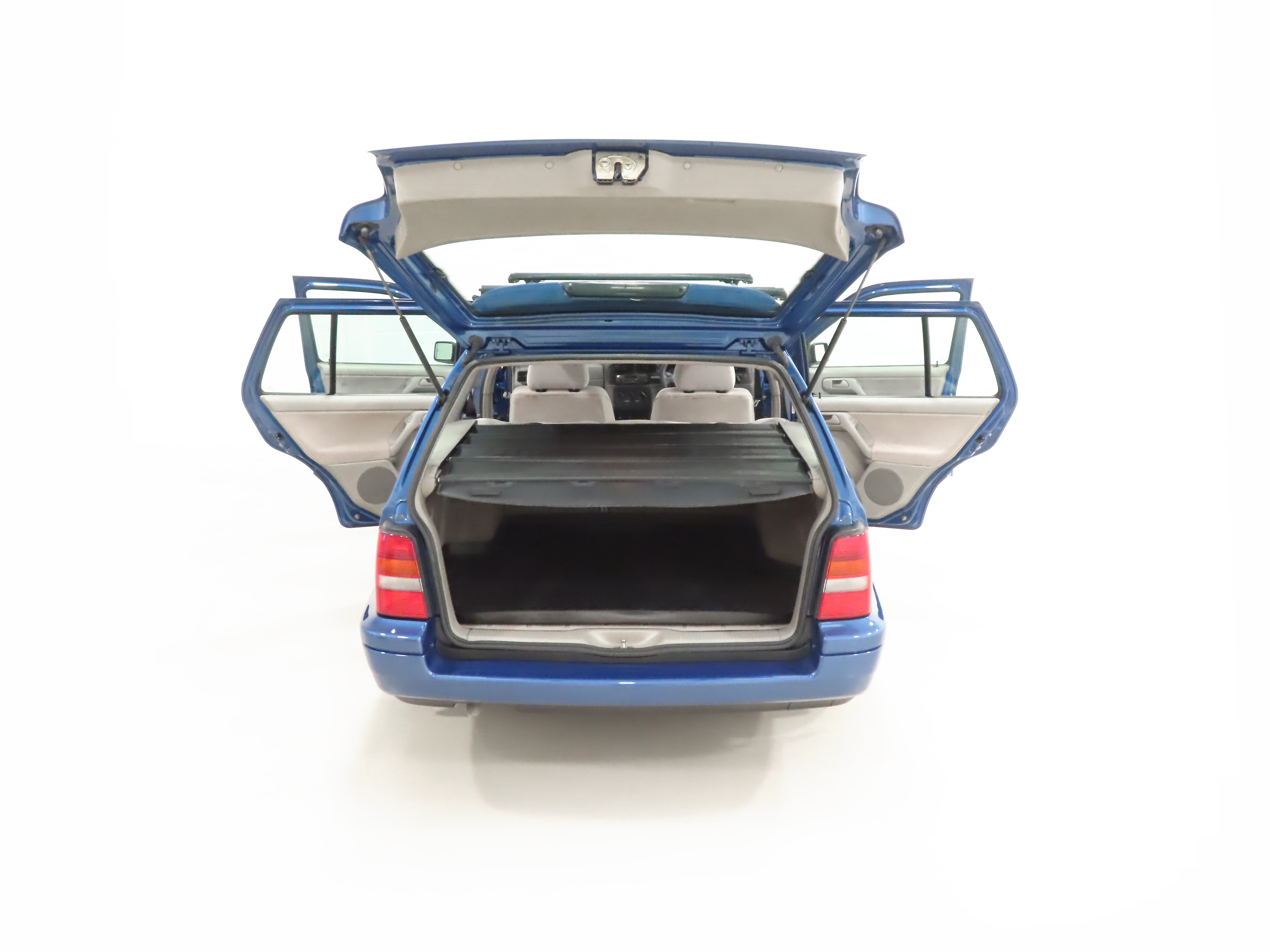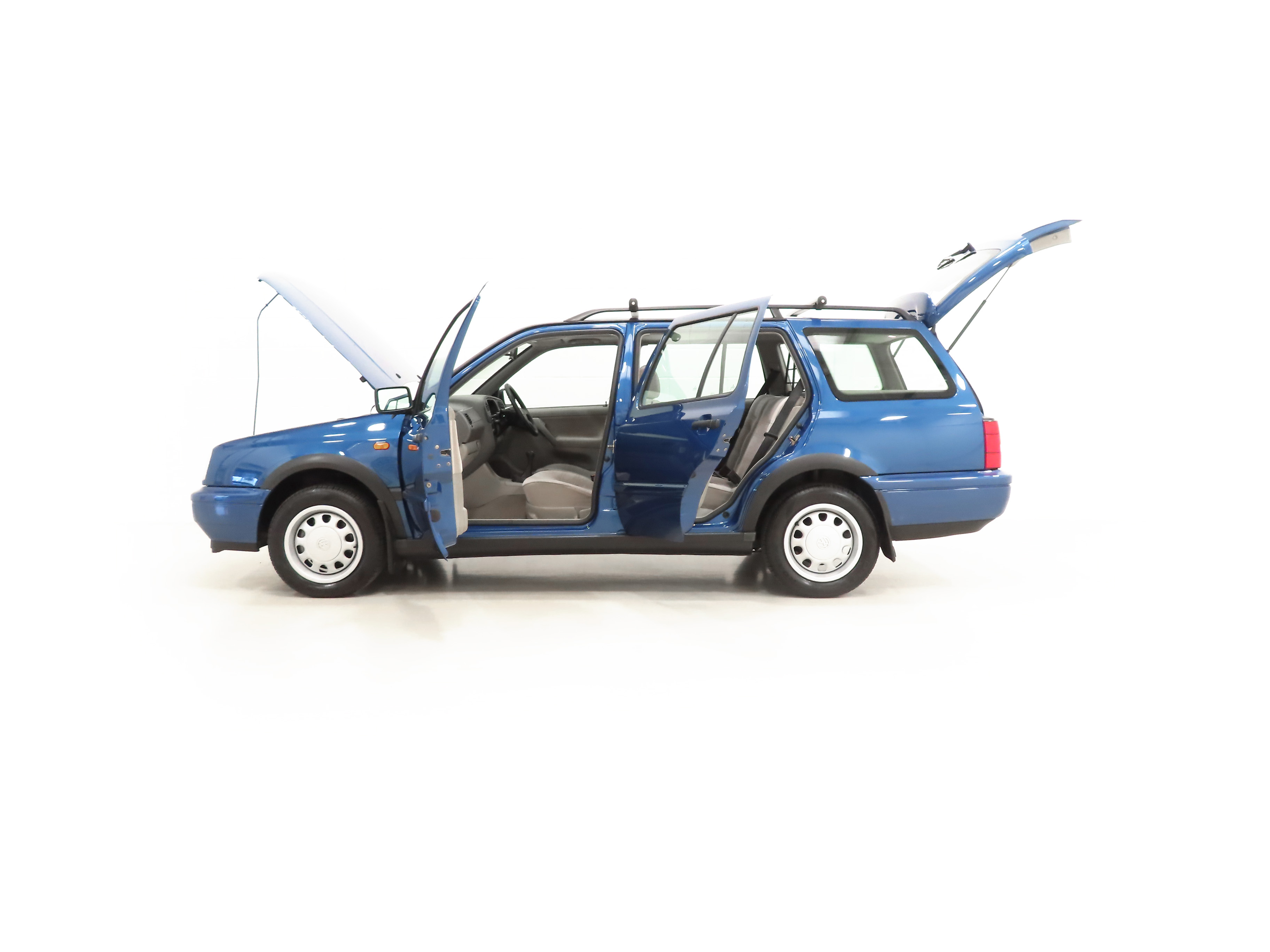 Galvanised steel body, colour coded door mirrors and side rubbing strips, insulating green tinted glass, roof rails, side impact protection, rear wash/wipe, anti-theft central locking, immobiliser, driver airbag, seat belt tensioners, driver’s seat height adjustment, height adjustable steering column, front and rear electric windows, electric sunroof, electric heated door mirrors, digital clock, variable dashboard illumination, intermittent wipers, split folding rear seat, removable luggage cover, lockable illuminated glove box. Factory Options: Pacific Blue Pearl Effect paint, front fog lights, front passenger airbag. Volkswagen Accessories: Wheel arch protectors, contoured mudflaps, rear roof spoiler with integral high level brake light, genuine VW lockable roof bars, VW rubber floor mats, rubber boot mat, luggage partition guard, Sony XRC450RDS radio cassette.