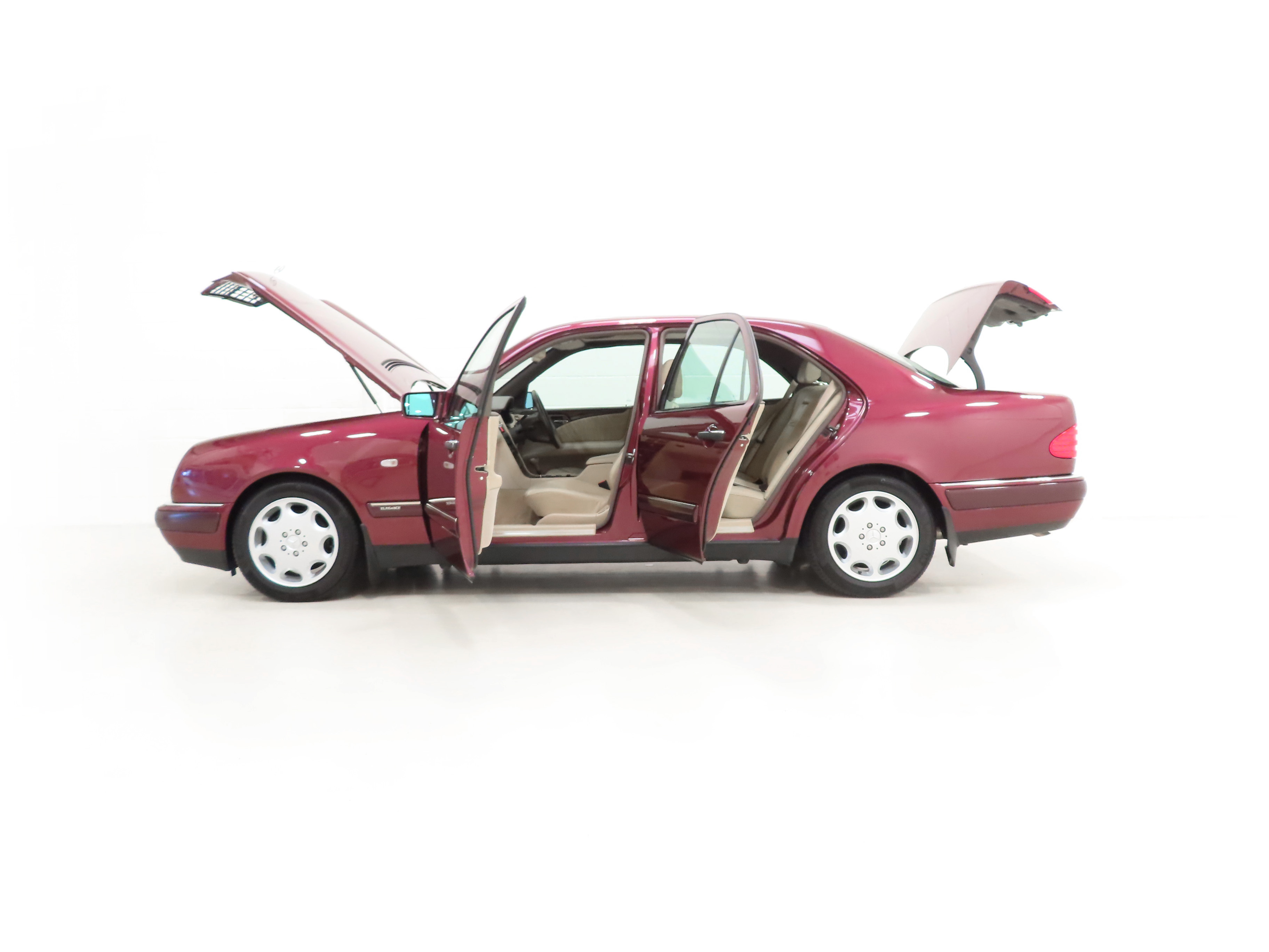 Elegance Package, front occupant airbags, passenger safety cell, heat insulating glass, comfort seat belts, automatic air conditioning, heated screen wash system, electric adjust rear headrests, Speedtronic cruise control, multi-function steering wheel, electric heated and folding mirrors, outside temperature gauge, service interval display, illuminated vanity mirrors, warning triangle, tool roll. Factory Options: Parameter steering, five-speed automatic transmission, high pressure headlamp cleaning, electric driver’s seat and steering column with memory, side airbags, auto dimming mirrors, electric tilt/slide sunroof, heated electric folding mirrors, automatic climate control with armrest cool box, exit lights for drivers doors, sports chassis with 8-hole light alloy rims, Mercedes Special Becker radio cassette.
