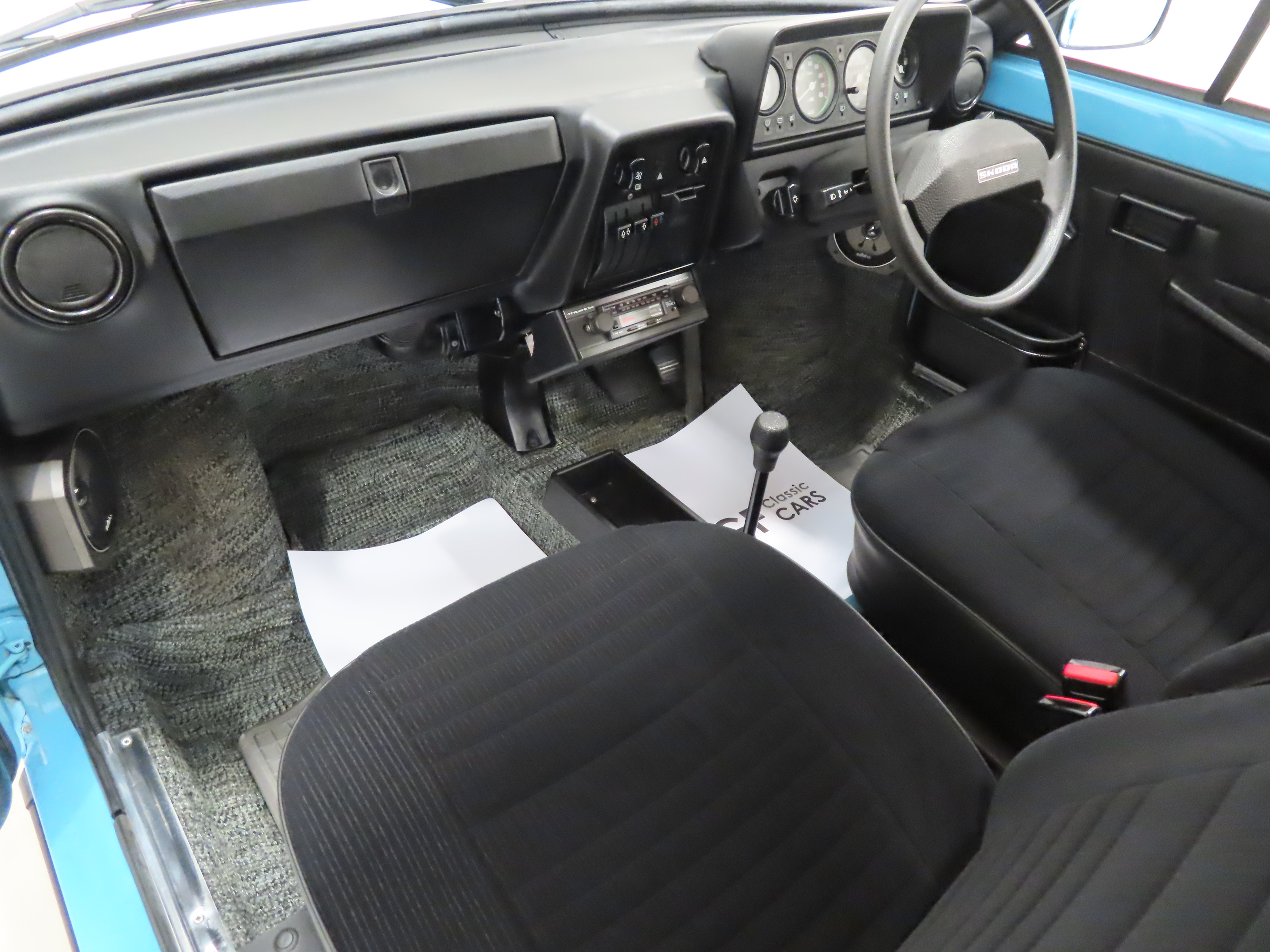 The rear mounted 1289cc four-cylinder OHV engine is factory fitment and famed for its toughness and ability to cope with the harshness of its Eastern Bloc origins. The most powerful Estelle model available and matching that of the sporting Rapid and Cabriolet, power output quotes 58bhp at 5000rpm and 97Nm of torque at 2850rpm. The sales brochure quotes peak speed at 93mph. The engine compartment is pristine and complete with the original bagged jack and even the fragile Data card sticker remains on the blue air filter housing. More astonishing are the delicate paper stickers to the boot lid soundproofing still being attached! Skoda proudly boasted the introduction of a 1300cc engine and 5-speed gearbox to their top saloons, and this example performs impeccably.