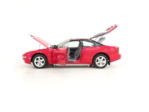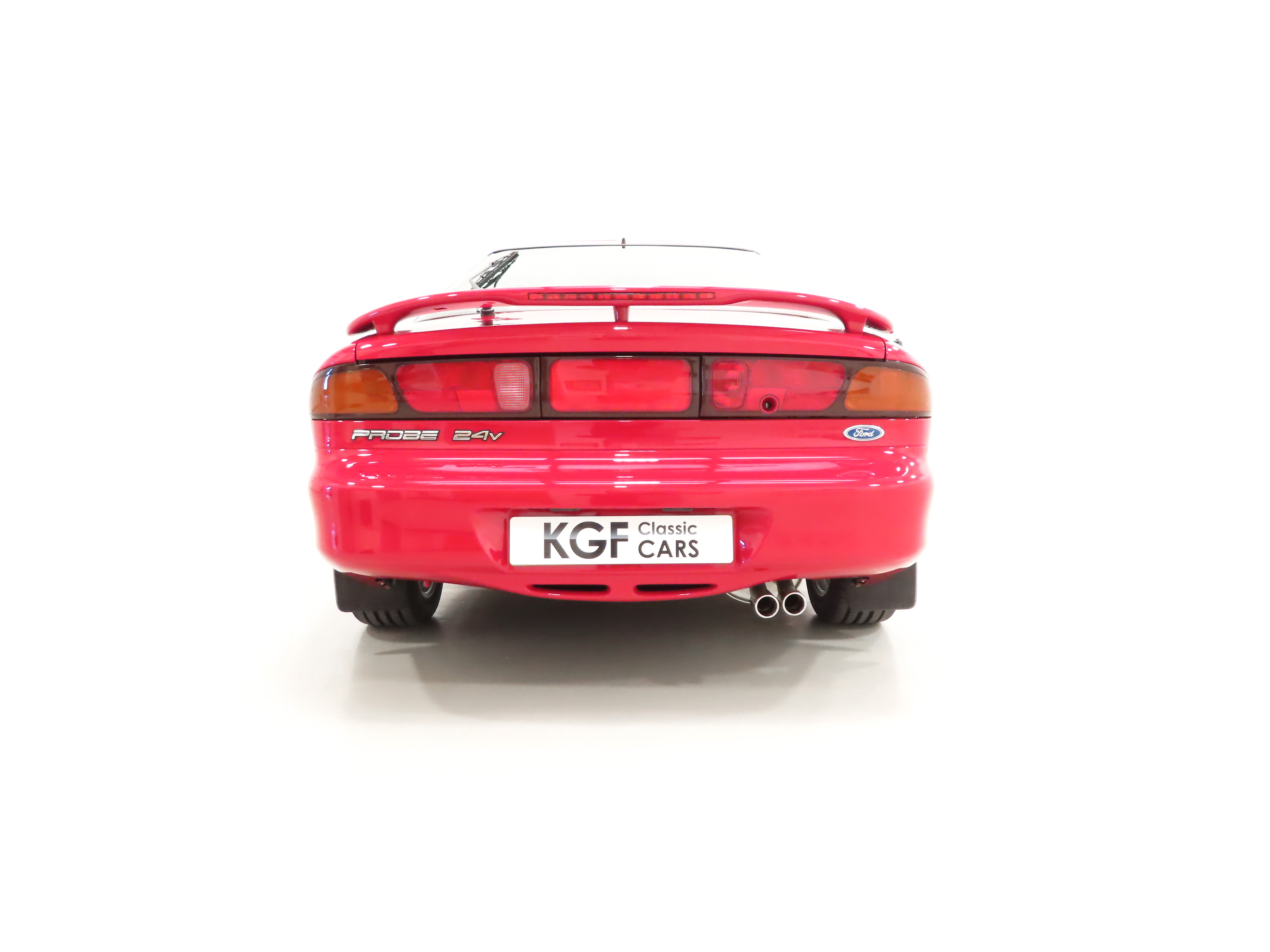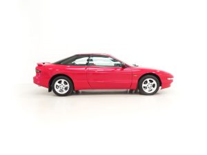 Finished in stunning factory Ford Rio Red, (Code E Z), this top of the range Probe boasts unrepeatable credentials of a miniscule 5,666 miles from new. Always garaged, it is hard to believe this ultra rare car is nearly three decades old with the paintwork preserved impeccably and a brilliant deep gloss shine. Meticulous scrutiny struggles to reveal anything other than a few carefully touched-in tiny scratches and a small bleb to the spoiler, utterly insignificant. Supplying Ford main dealer number plates and rear screen sticker remain attached. All trim sections, rubbers, light clusters and badges are perfectly preserved away from harsh weather and sunlight damage. The underside is a miracle and spotlessly clean! The pinnacle collector’s example of Fords (of Europe) first coupe since the iconic Capri.
