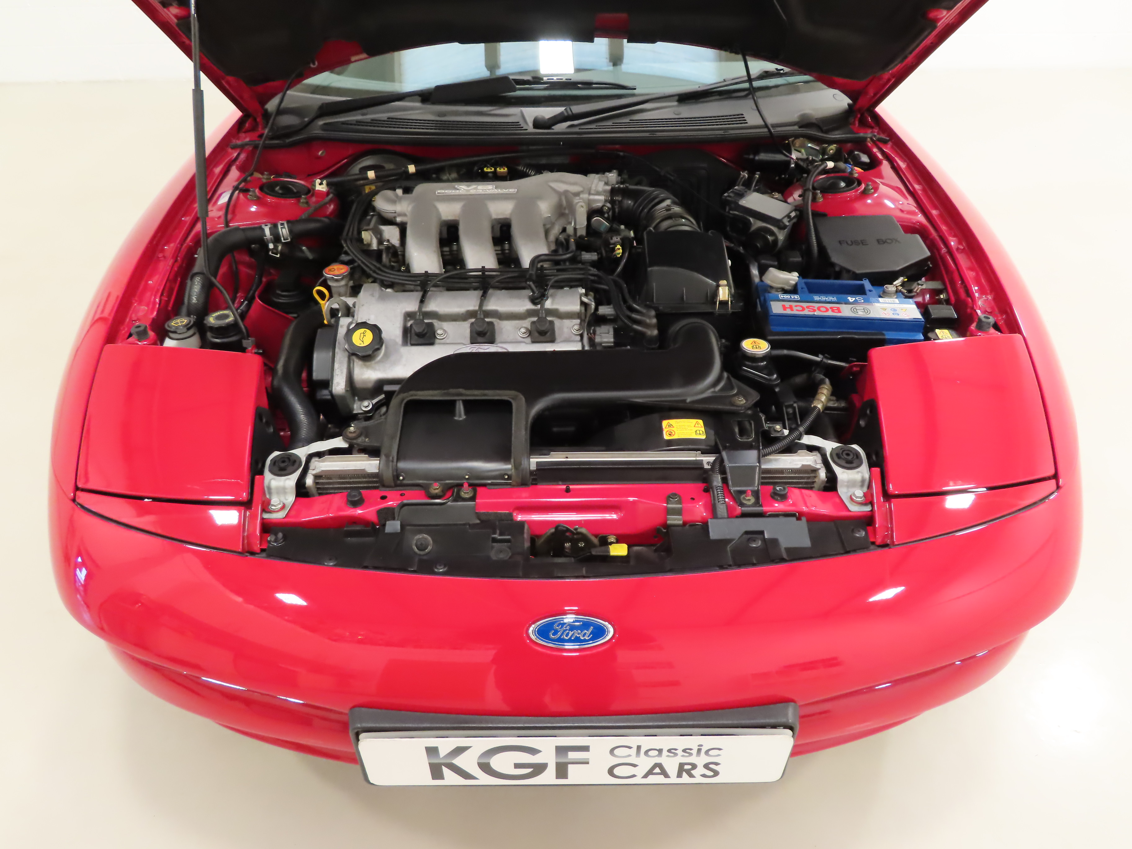 Truly worthy of the accolade, time warp. The Opal Grey Cloth upholstery, (Code KB), is absolutely free from wear or damage with firm and shapely bolsters, all commensurate with 5,666 miles covered and very retro! The electrically operated driver’s lumbar and side bolsters adjustment both inflate and deflate seamlessly. All interior trim presents as new and the headlining is perfect. Tailored Ford Probe floor mats have protected the carpets from new. All controls and functions are fully operational including the cruise control and ‘Plus Pack’ Ford 2007 stereo. The leather trimmed steering wheel, gear knob and soft finish fascia are factory perfect with no visible wear to the touch points. Even the large load area remains spotlessly clean and free from damage complete with jack and brace in the original bag. Truly exceptional and unquestionably an enthusiast’s car.