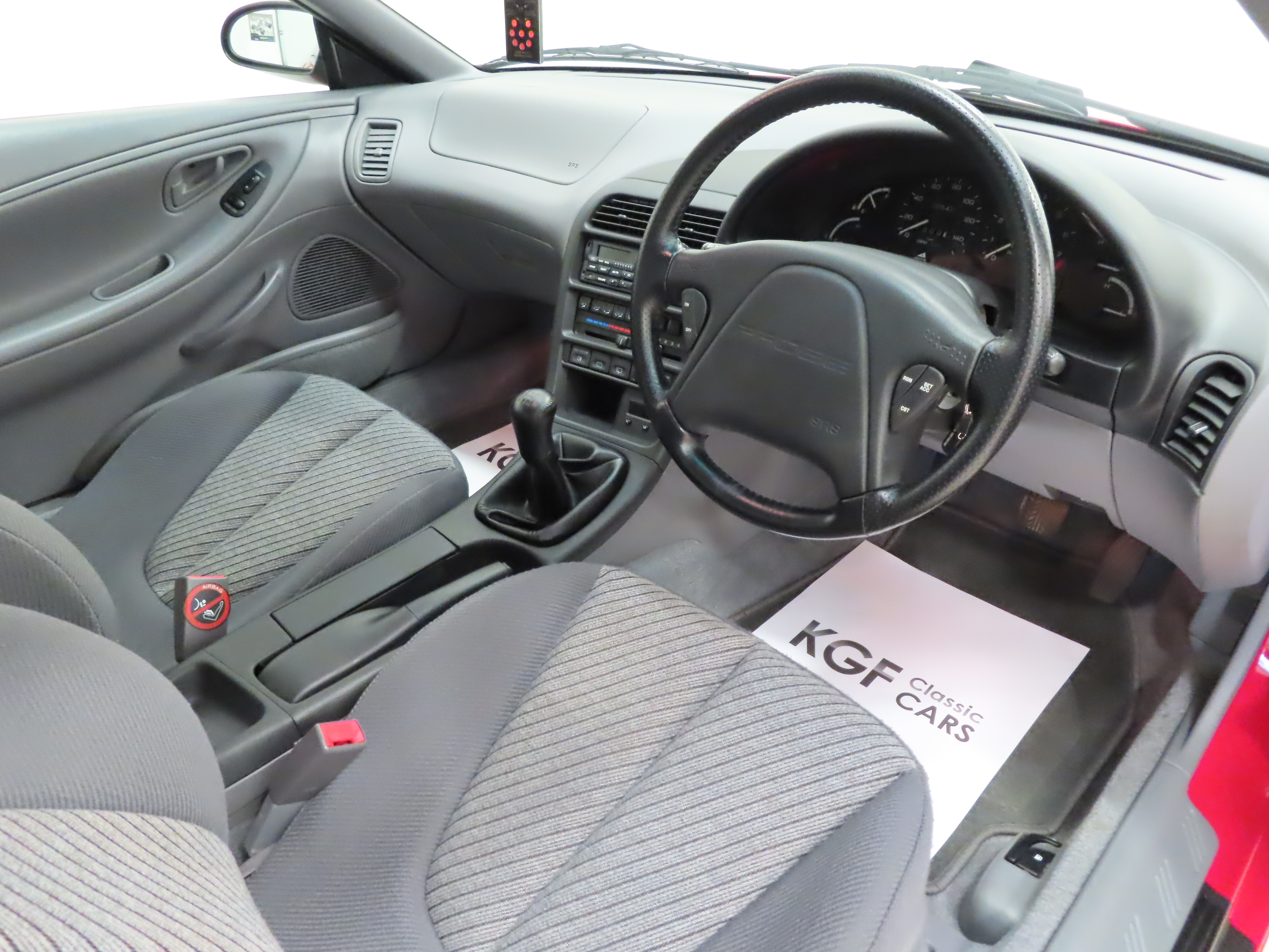 Supplied new on 3rd August 1995 by Ford Main Dealer, Quicks of Chester, the first registered owner was a Mr Goodier. The following year, Mr Goodier returned to the supplying dealer for them to supply and fit a rear spoiler costing £250 as confirmed by the invoice in the history file. Always garaged and used for the first two years, the car was taken off the road due to the first owners ill health where it remained dry stored. In 2007 the car had its first MOT and in 2013 the car was sold to a garage proprietor who underwent full recommissioning. The service book shows nine stamped entries, the most recent in February 2026. The cambelt was changed at 4,230 miles with supporting invoice and service book entry. The Ford document wallet holds all handbooks, guides and point of sale literature, and a huge folder of MOT records and invoices is beautifully organized. Collectable paraphernalia includes original sales brochures, price lists, a period Ford Phones brochure, original Ford Probe Portfolio postcards, The London Motor Show 1993 Press Information Pack, Top Gear Magazine Test Report pack, and a copy of Autocar Magazine from February 1994 covering the launch of the new Ford Probe. Both original keys with Ford immobiliser fobs plus two additional spare keys are included. Sold in March 2025 by KGF Classic Cars, our customer offered the car back to us and we jumped at the chance! A featured car at the Festival of the Unexceptional, does a better example exist?
