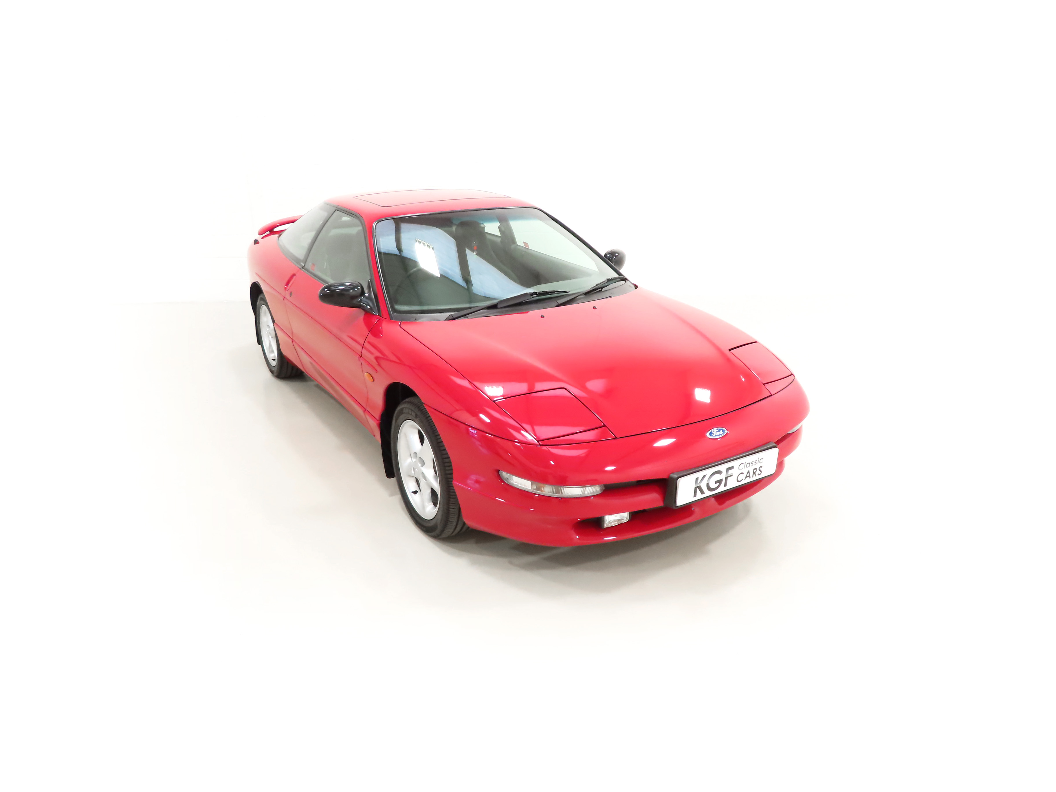 Sports Coupe body with 2+2 seating, steel safety cage, frameless doors, tinted glass, glazed over invisible B and C pillars, colour toned bodyside mouldings, colour bodyside cladding, retractable halogen headlamps with motorised levelling, long range driving lamps, electrically operated and heated door mirrors with black housing, central door locking, driver and front passenger airbags, electrically controlled anti-lock 4-wheel disc brakes, Ford 951 immobiliser. Plus Pack Equipment (standard on 24v model). Electric sunroof, cruise control, 2007 RDS Radio/Cassette, leather rim steering wheel, leather gearlever knob, map light and entry light. Dealer Accessories: Genuine Ford boot lid spoiler, Ford mudflaps, Ford tailored front carpet mats.