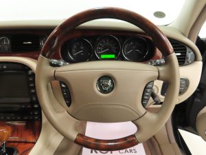 This Jaguar XJ6 3.0SE (X350 model) was supplied by Main Dealers PJ Evans in Birmingham and registered new on the 5th June 2003. A warranted 30,165 miles has been covered documented by service entries and MOT records, both paper and online. KGF Classic Cars previously sold the car in 2018 to Mr Dorling at which point the car had covered just 14,258 miles. Mr Dorling kept the car garaged and has used the car for leisure purposes in retirement whilst ensuring maintenance was upheld. Having owned the car for nearly six years and covered around 15,000 miles, we were delighted to be offered the car back safe in the knowledge that it remains a prime example.
