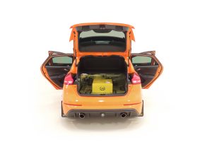 All-Wheel Drive with Dynamic Torque Vectoring, four selectable drive modes, SYNC3 8” touchscreen DAB audio nav system, Bi-Xenon HID headlamps, Ford Power Starter button, Tyre-Pressure Monitoring System, Performance gear-shift light. RS Heritage Special Equipment: Tief Orange paintwork, black forged alloy wheels, grey-finish brake callipers, contrasting black door mirrors and rear spoiler, privacy glass, sunroof, rear parking sensors, partial leather Recaro Race moulded seats, carbon fibre trim, power-fold door mirrors, cruise control/speed limiter, heated steering wheel, mechanical Quaife limited-slip differential, FPM375 Mountune power upgrade. Dealer Options: 3M clear film on rear bumper edge, Mountune tailored carpet mats, Mountune mud flaps, 5-year warranty, Gard X Premium (Leather). Accessories: Autowatch Ghost Immobiliser, front seat covers, door bin rubbers.