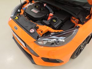 Specially designed for high performance, Ford’s 2.3 litre Ecoboost engine in the heritage Edition gained the dealer fitted FPM375 Mountune upgrade which increased overboost power from 350bhp to 370bhp and torque from 470Nm to 510Nm over the standard RS, good for a 0-62mph in just 4.7 seconds and a 165mph top speed! In addition to this, the Heritage was fitted with a mechanical Quiafe limited-slip front differential to plant all the power to the road. The engine bay is as new and just as it left the dealership with huge Ford Performance badge, Deep Orange Mountune hoses and RS air box casing as well as all stickers, labels and PDI markings present. With the Quiafe ATB fitted to the front axle of the all-wheel-drive system and 6-speed manual gearbox, this sure-footed RS is a formidable performance machine.