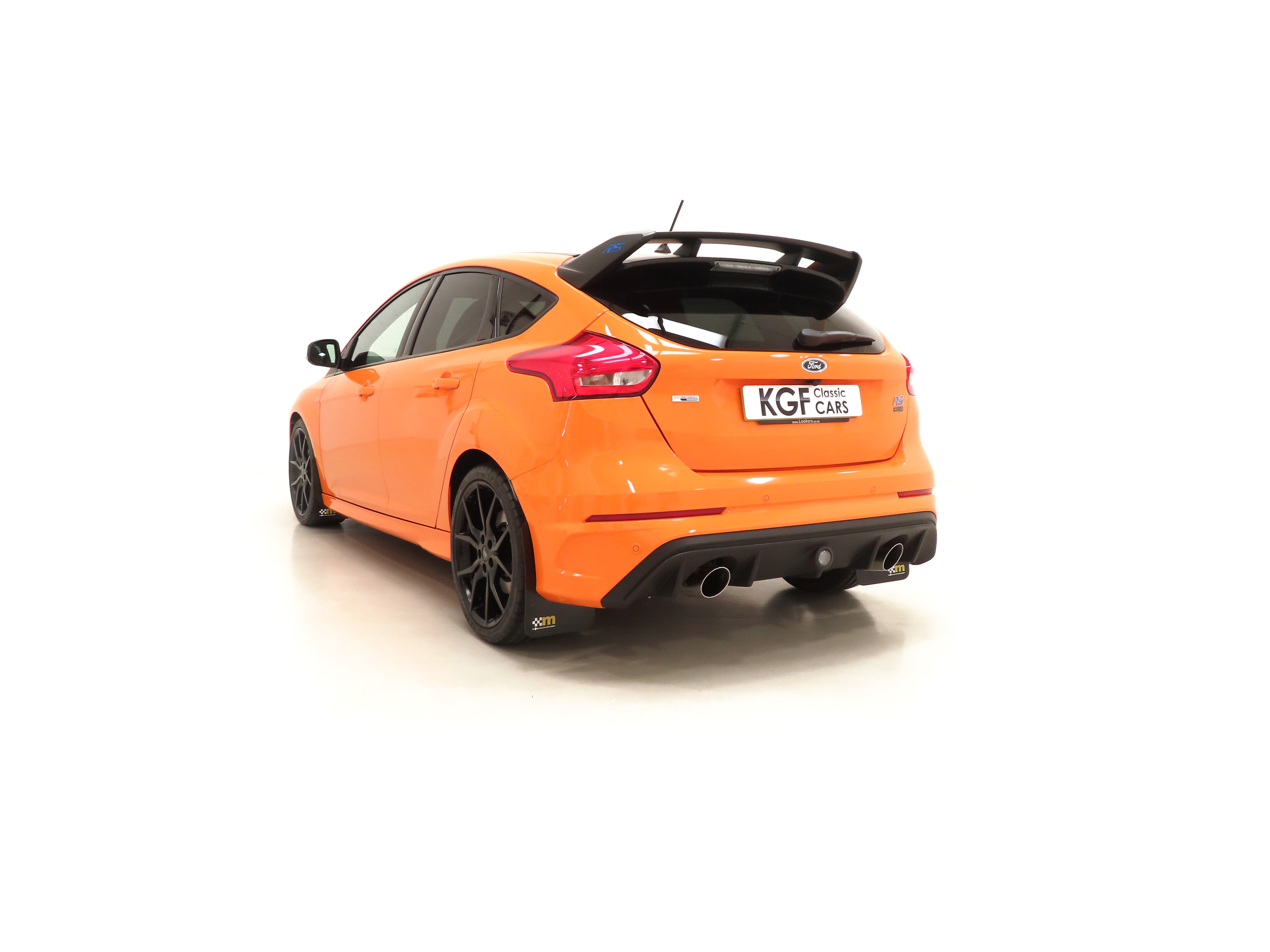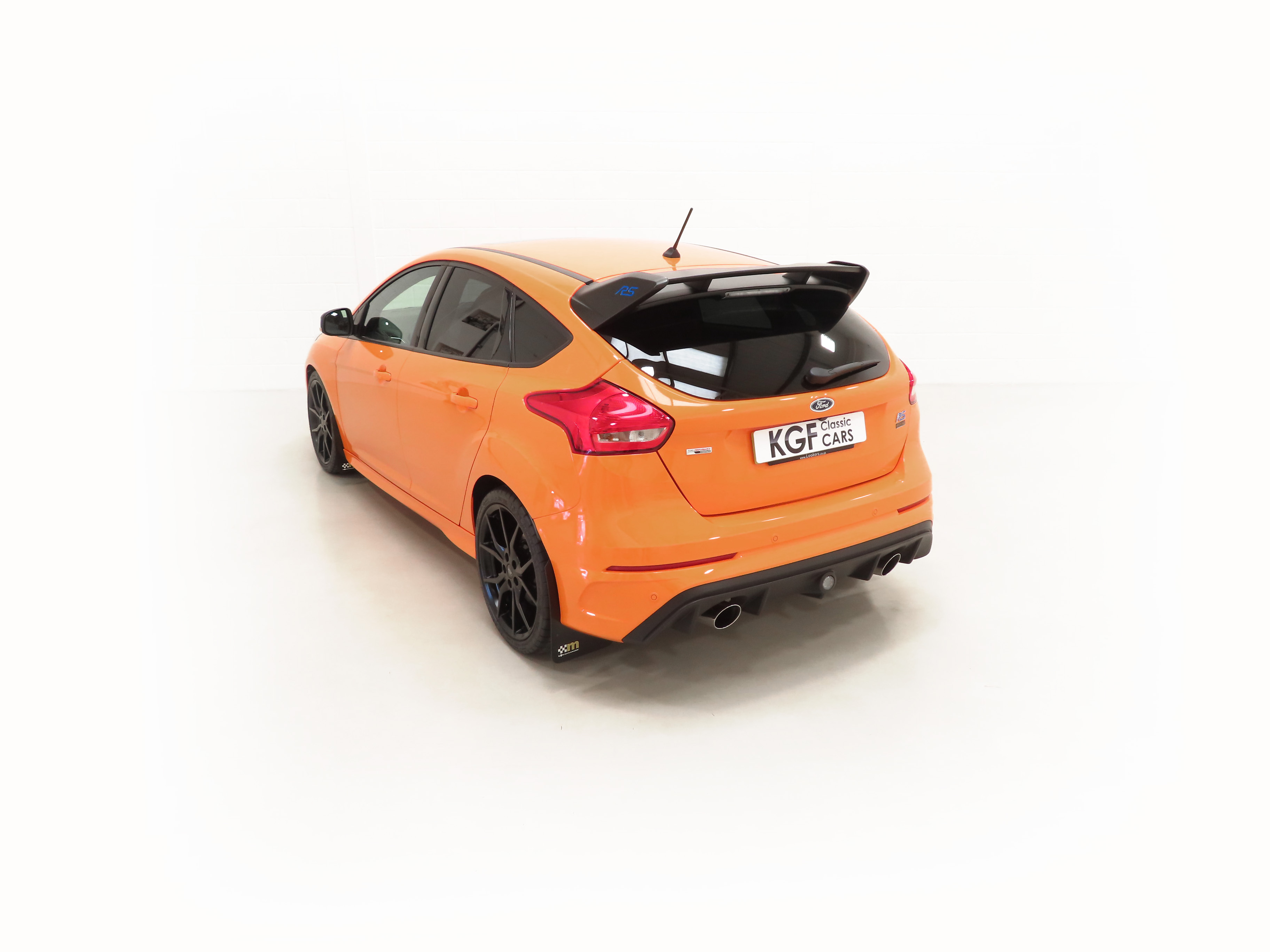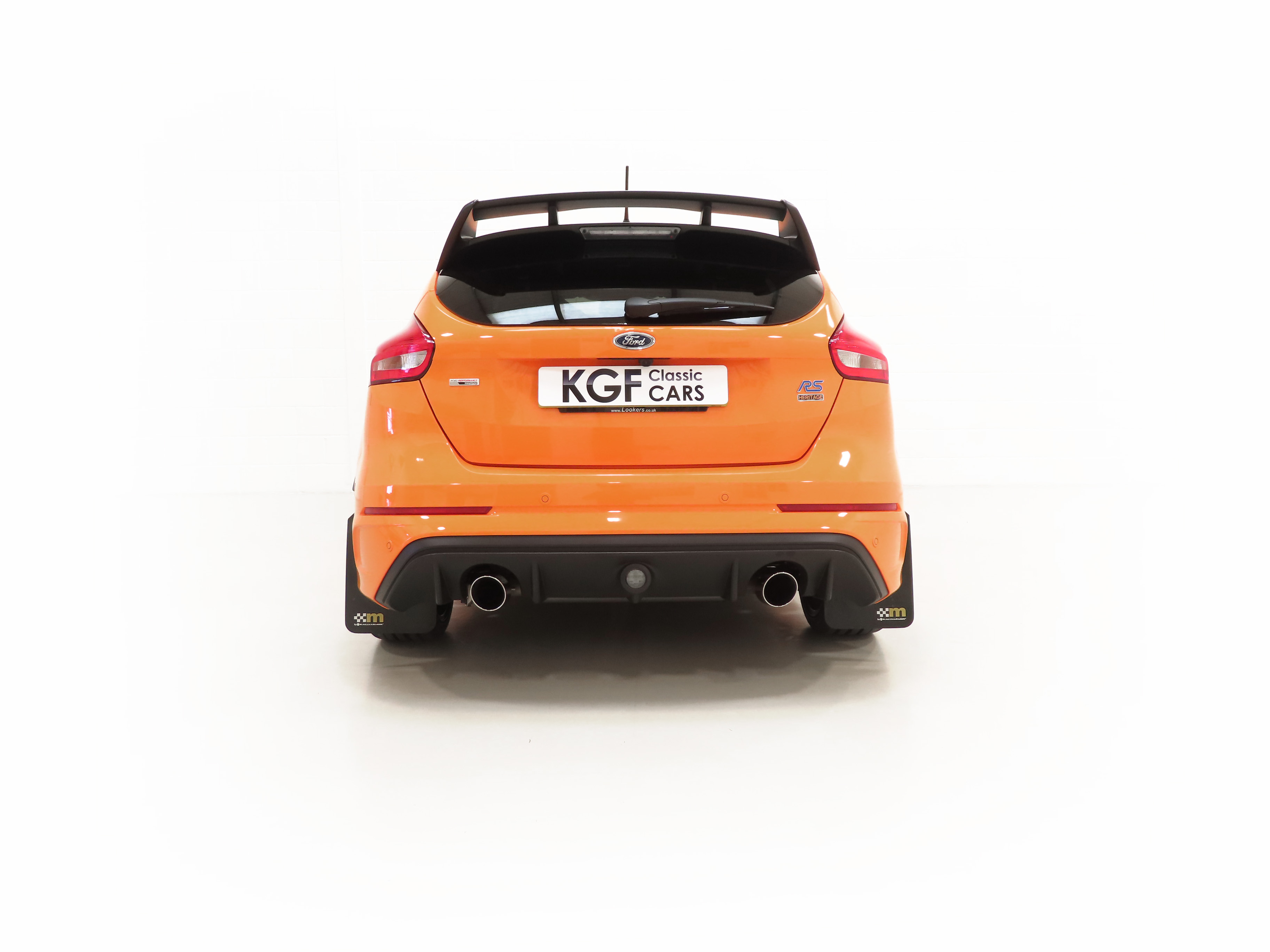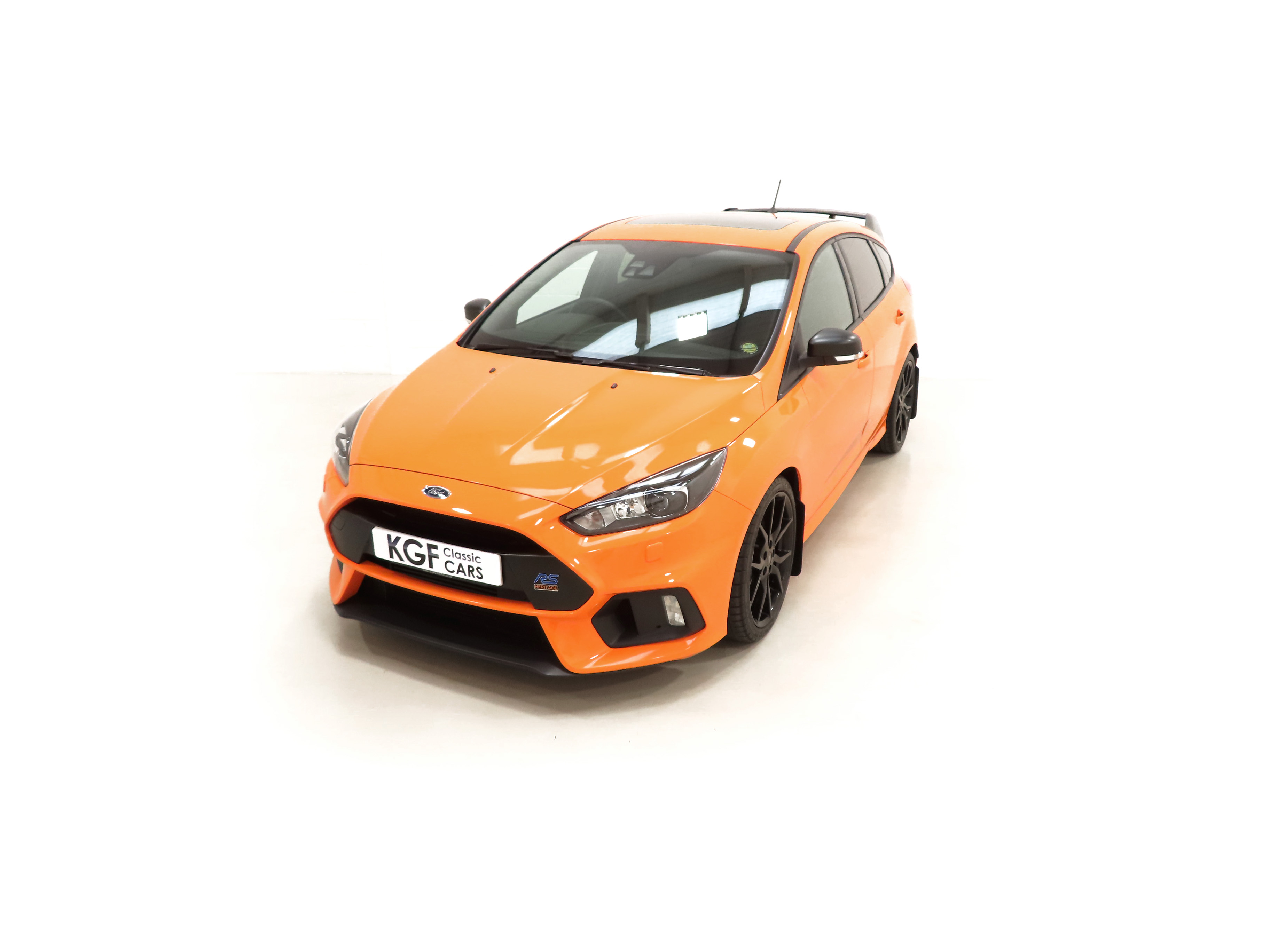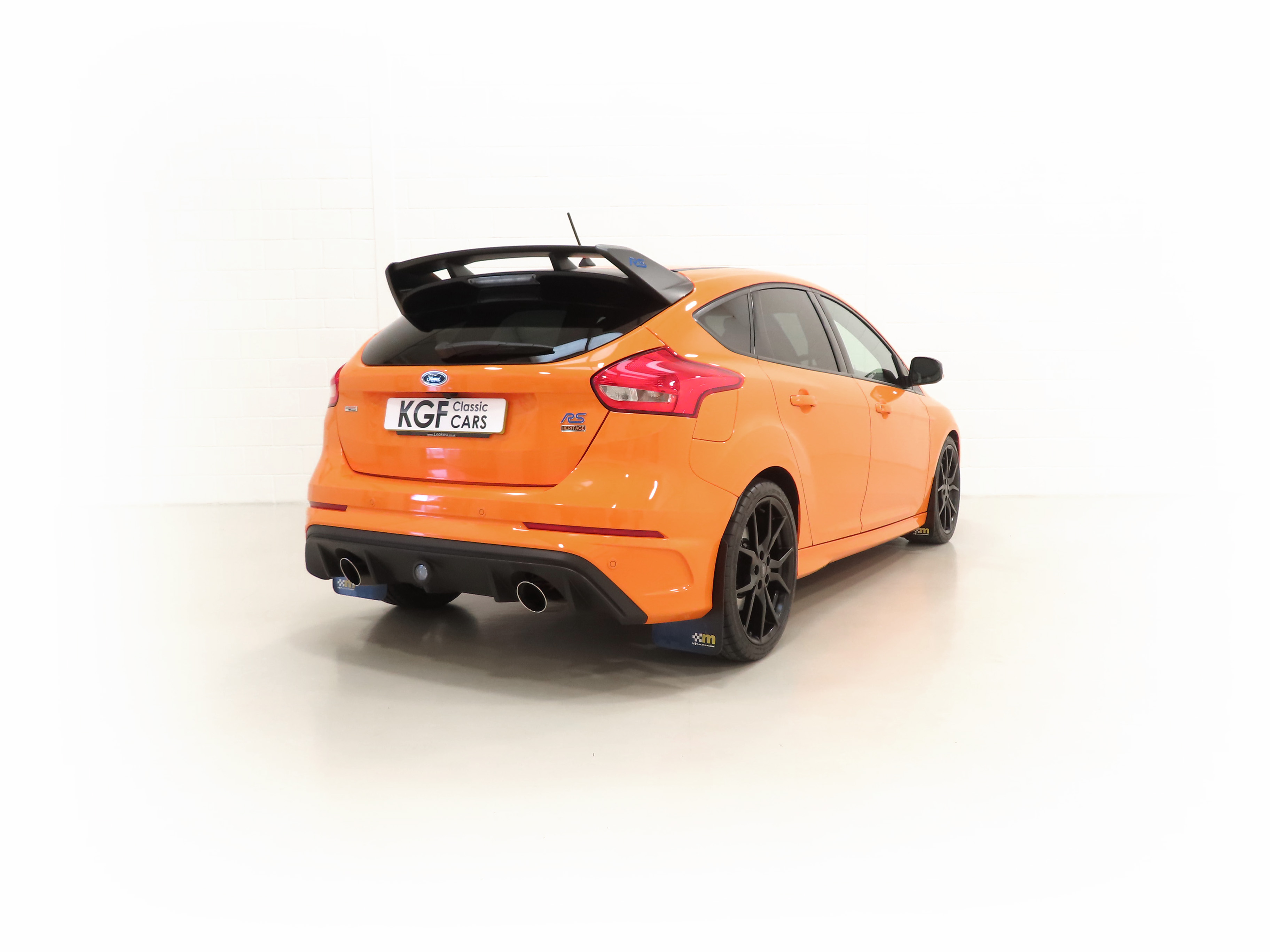 All-Wheel Drive with Dynamic Torque Vectoring, four selectable drive modes, SYNC3 8” touchscreen DAB audio nav system, Bi-Xenon HID headlamps, Ford Power Starter button, Tyre-Pressure Monitoring System, Performance gear-shift light. RS Heritage Special Equipment: Tief Orange paintwork, black forged alloy wheels, grey-finish brake callipers, contrasting black door mirrors and rear spoiler, privacy glass, sunroof, rear parking sensors, partial leather Recaro Race moulded seats, carbon fibre trim, power-fold door mirrors, cruise control/speed limiter, heated steering wheel, mechanical Quaife limited-slip differential, FPM375 Mountune power upgrade. Dealer Options: 3M clear film on rear bumper edge, Mountune tailored carpet mats, Mountune mud flaps, 5-year warranty, Gard X Premium (Leather). Accessories: Autowatch Ghost Immobiliser, front seat covers, door bin rubbers.