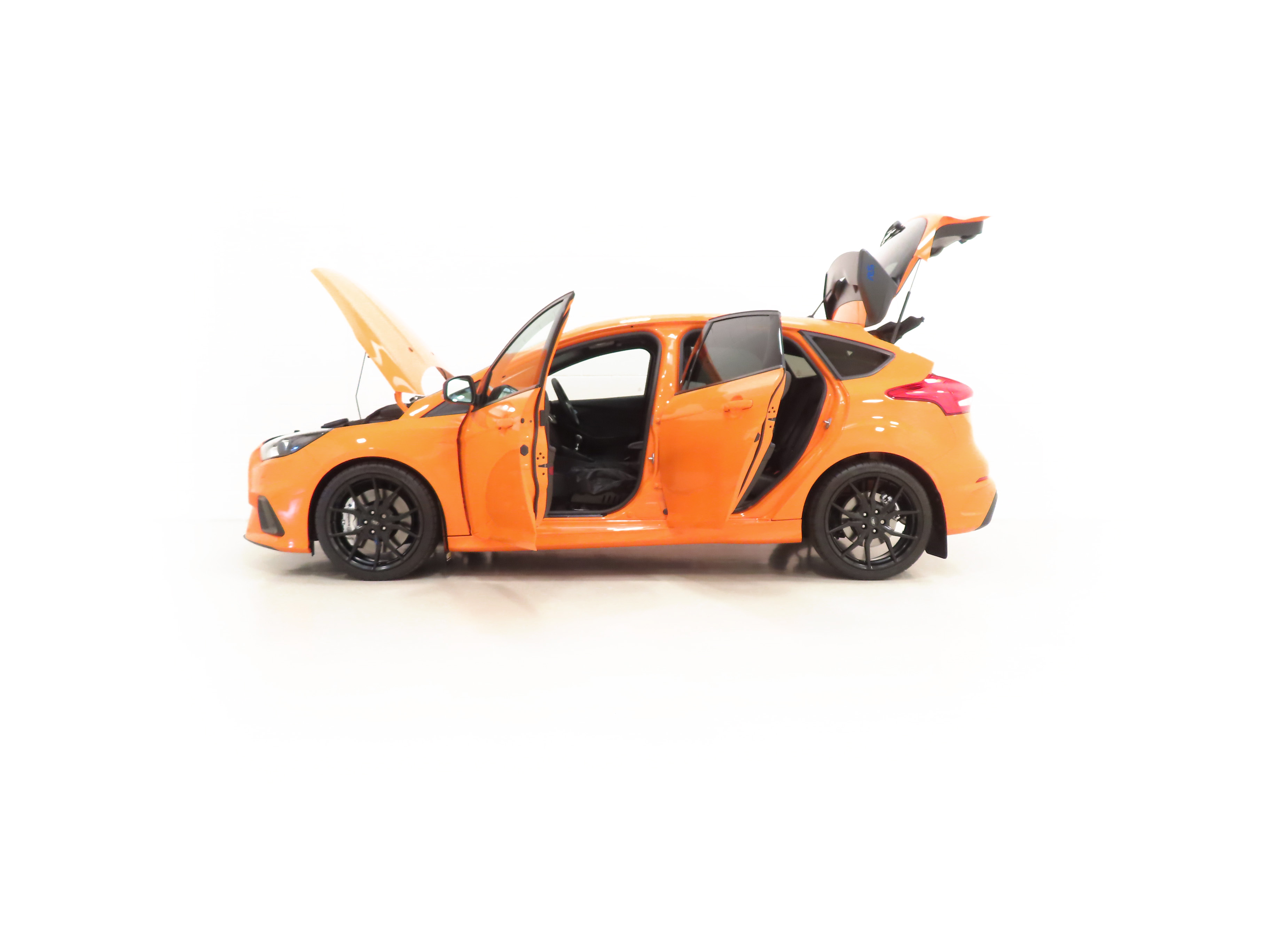 This outstanding Ford Focus RS Heritage Edition was registered new on the 31st March 2018 by Lookers Ford of Leeds to the first and only owner, Mr Bateman. A fanatical enthusiast and RS Owner’s Club member, the car is a credit to Mr Bateman and his custodianship over the last six years. The car has returned to the supplying dealership six times whereby the servicing schedule has been adhered to, as supported by service stamps and the corresponding invoices and service checklists. The order form and sales invoice outline the vehicle specification and purchase price of £40,560. All purchase documentation and the original sales brochure are neatly filed alongside the service records and all MOT certificates. As instructed by Ford, a letter from the dealership Business Manager requests that Mr Bateman maintain ownership for at least 12 months and that they are given first refusal should he wish to sell after this period. Each RS Heritage Edition was presented to the first owner with the Mountune Performance Parts box containing original components removed by the dealer after the FPM375 upgrade kit was fitted. The box is present with this car. The vehicle presentation pack incudes the Ford performance document wallet containing all handbooks including both the Focus RS Owner’s Manual Supplement and the additional orange Mountune Owner’s supplement, issued uniquely with RS Heritage Editions. Both original remote keys have Lookers Ford keyrings and even the glass polishing cloth remains unused in the packet. A very special Otto-Models 1:18 scale Focus RS model car has been specially commissioned by the owner to replicate this exact RS Heritage Edition, making it one of one and even with the registration RS15WOW matching! The model stays with the car and is boxed in mint condition. One of the most coveted of all RS cars and surely the jewel in even the best RS collections.