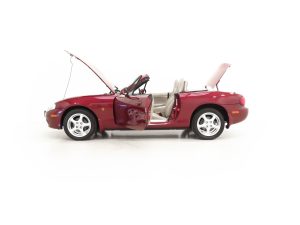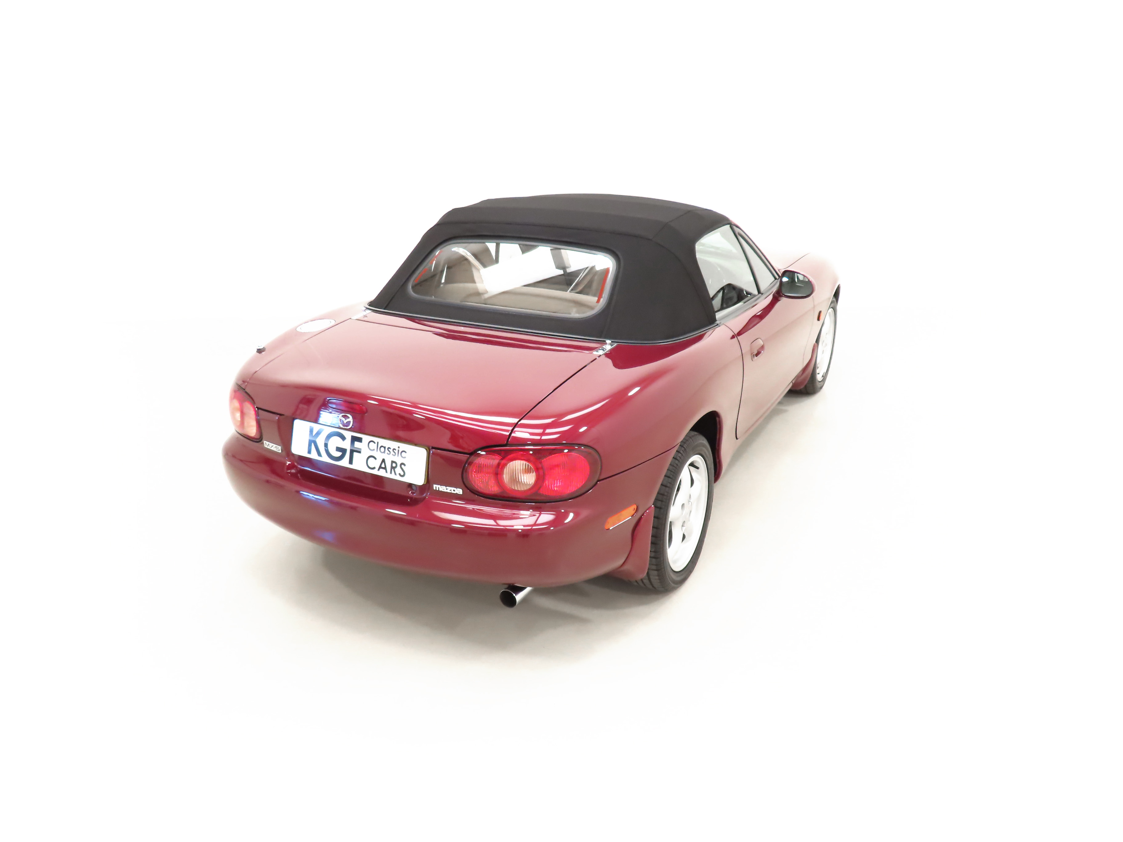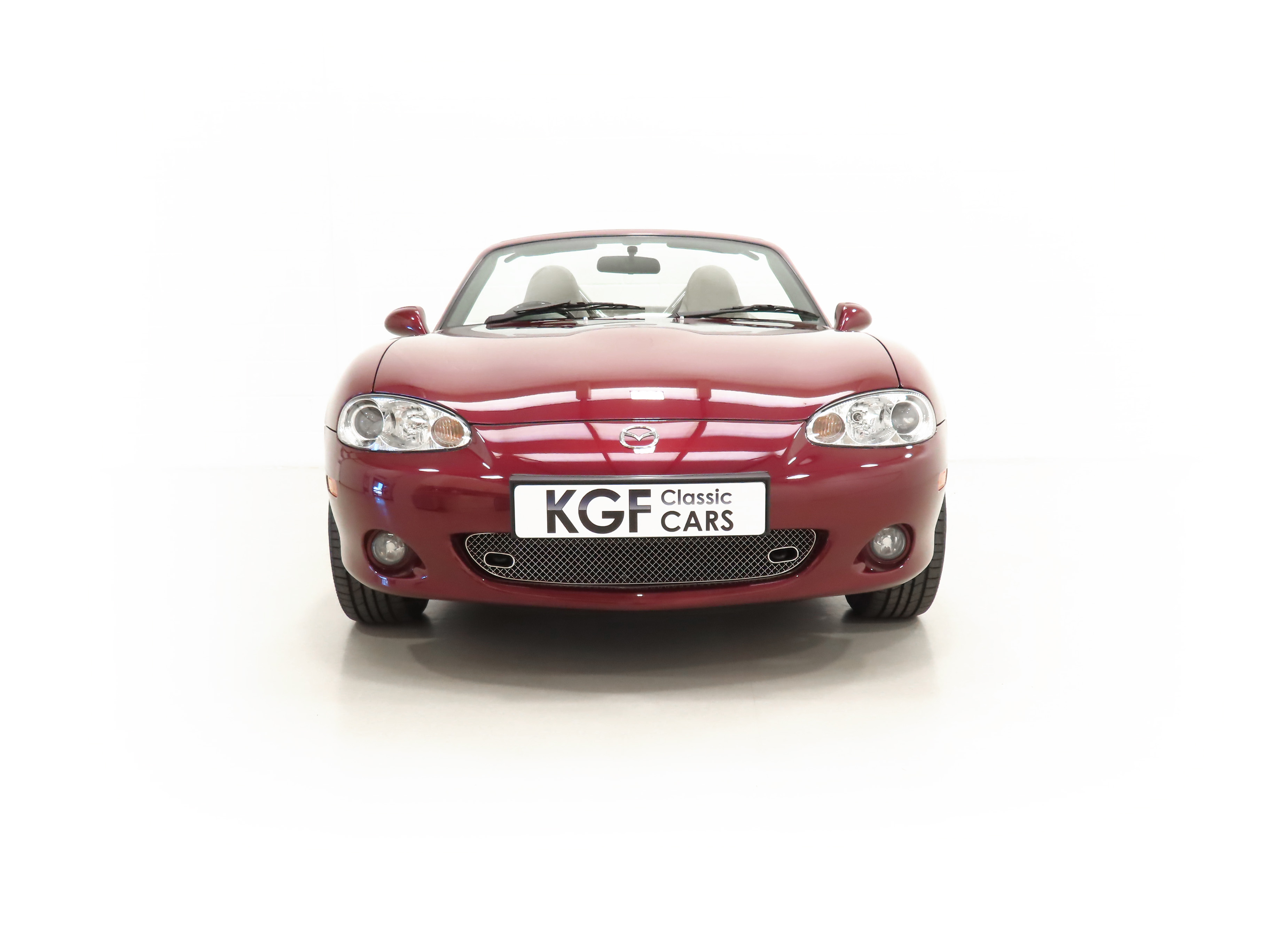 Rarest of the special editions with only 250 examples produced, this exclusive MX-5 Indiana was pre-registered to the supplying dealership with one subsequent private owner and has covered just 4,971 miles from new. Finished in striking Garnet Red Mica metallic, (Code 25F), the beautiful original paintwork reflects the incredible credentials. The factory panels are pin straight and there are no markings or imperfections worthy of mention. All trim sections and bumpers are pristine, and the original Mazda Dealer number plates remain fitted. The black cloth hood is in perfect order with a tight fit and the much-improved original glass rear screen is heated. The exterior chrome pack embellishments look superb and the underside gleams as much as the dazzling Mica metallic topside. The epitome of a modern classic sports car, preserved to the highest order with added special Edition credentials.