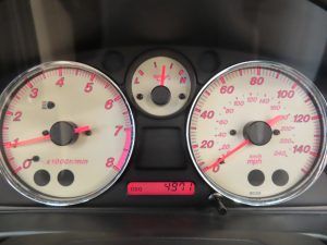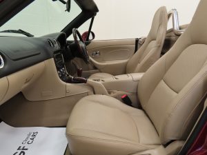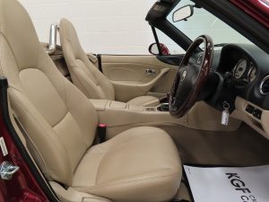 Standard for this Special Edition Indiana was the luxury Beige leather interior with heated sports seats which look fabulous against the Garnet Red exterior. The flawless seats remain in exceptional order and the beautifully crafted Nardi wood steering wheel, gear knob and handbrake lever look and feel superb with no wear whatsoever. The tailored MX5 carpet mats remain in place and protect the immaculate light carpeting. The interior chrome pack further lifts the already classy interior to separate this car from the usual dull specification. All unused, the jack, wheel brace, toolkit and space saver wheel and the matching beige tonneau are all present in the pristine luggage area. An interior justifiably described as good as new!