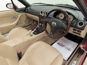 All handbooks, manuals and dealership point of sale literature along with two Mazda keys with code tag and dealer keyring are contained in the leather Mazda wallet. The most recent service using genuine Mazda parts was in March 2026 and a documented cambelt change was carried out at the same time. Also in the history file is a Special Edition Indiana sales booklet. KGF Classic Cars are delighted to be able to present this stunning super-low mileage and one private owner example to the open market ready for a new lucky custodian who will further appreciate the exclusivity of owing one of only 250 Special Edition Indiana’s produced.