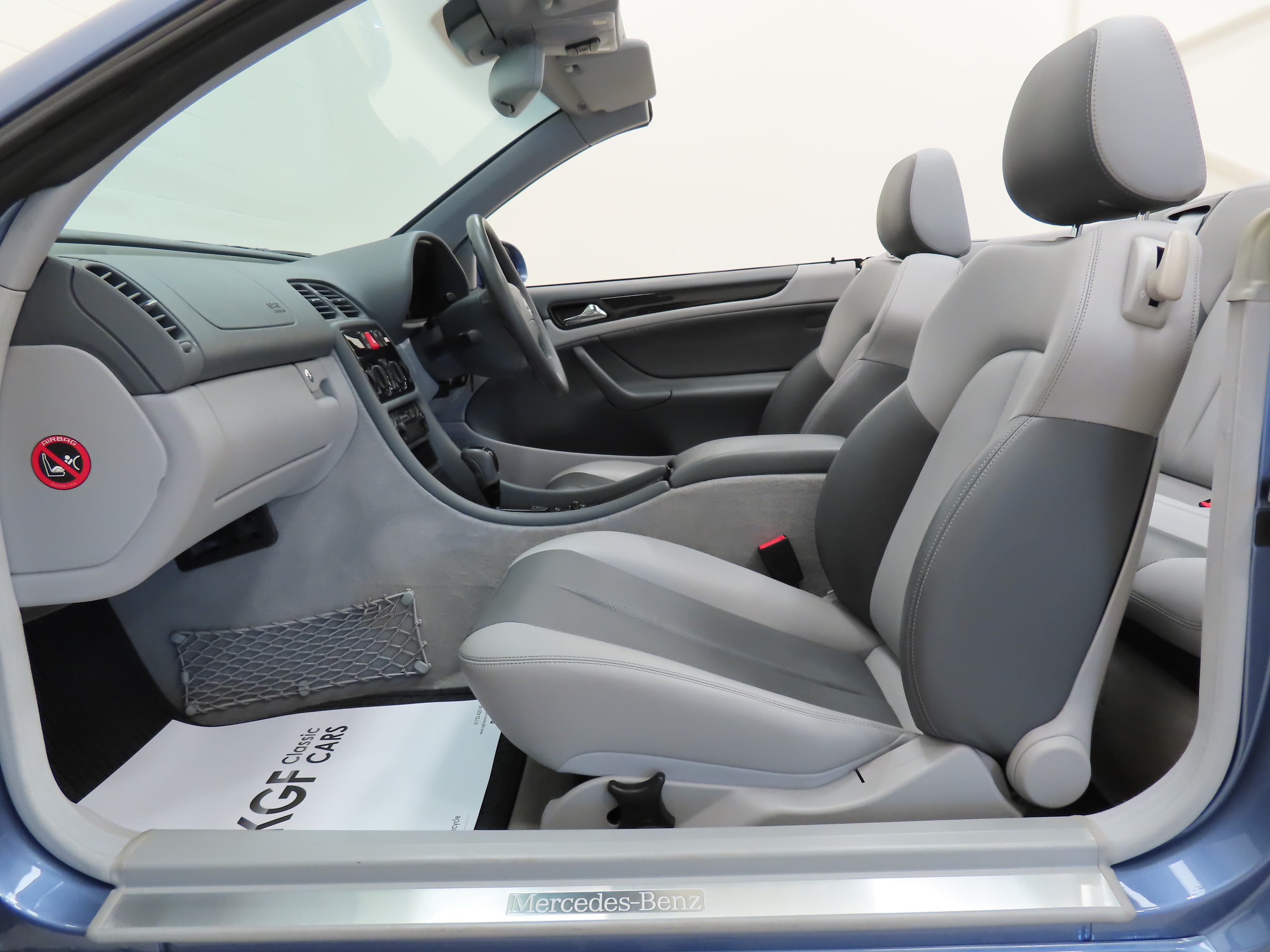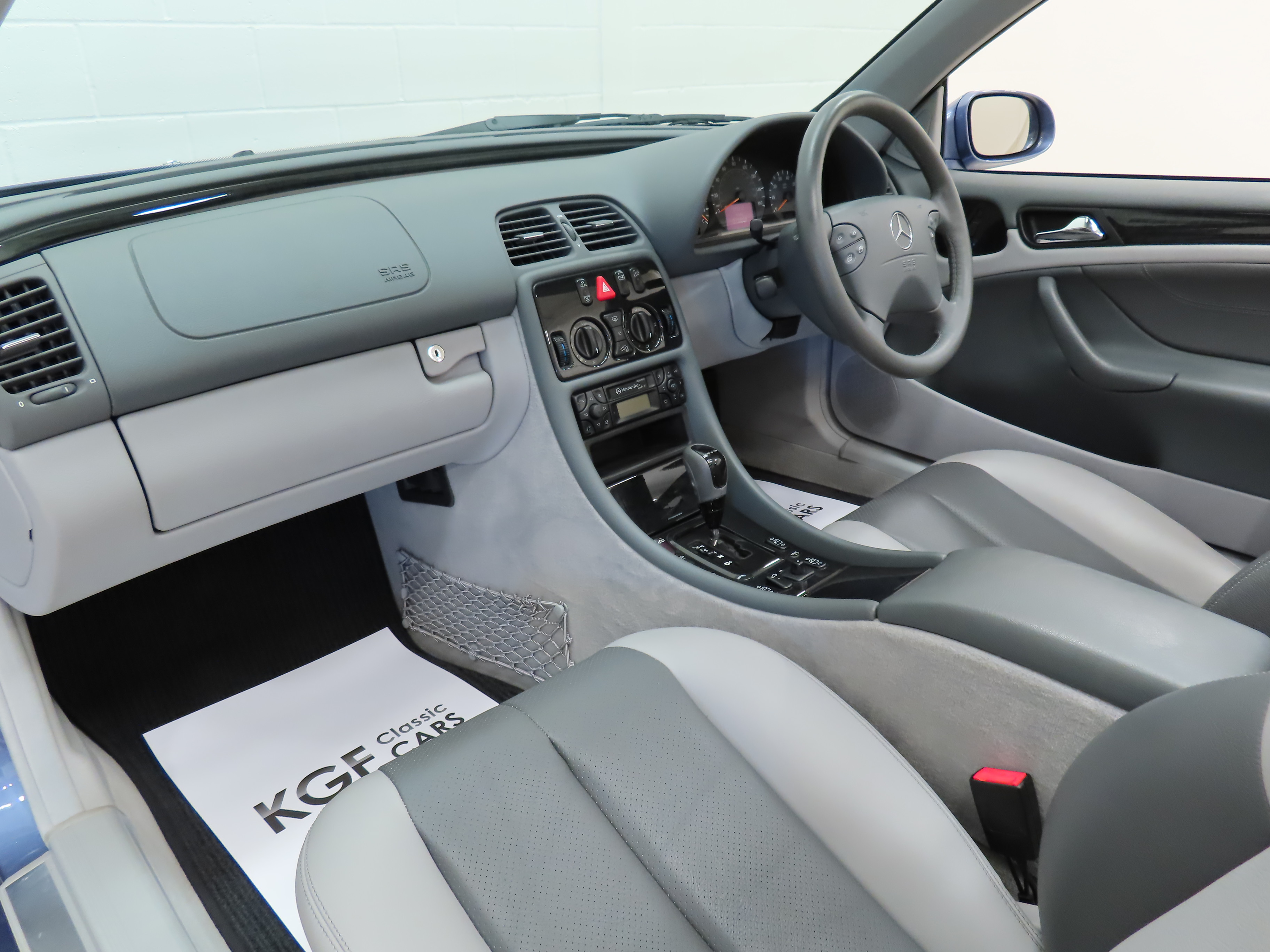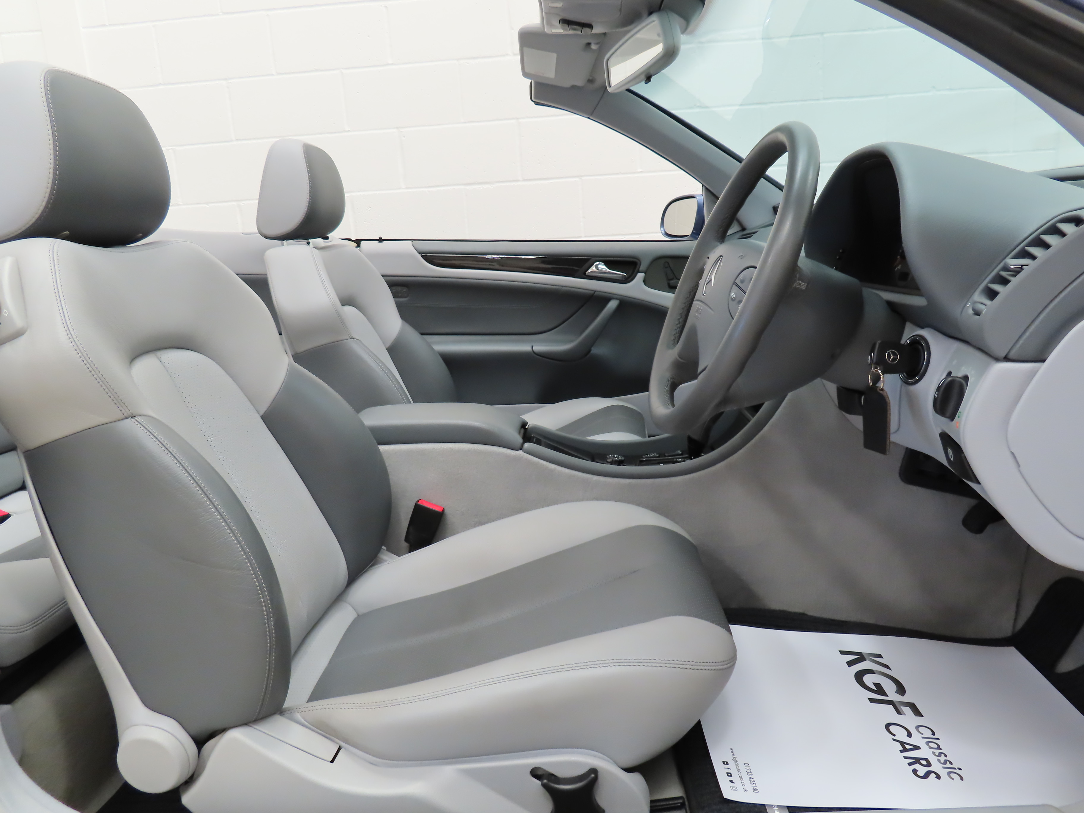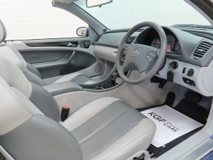 A genuine four-seater convertible spacious enough for four adults. Trimmed in beautiful and expensive factory optional Orion Grey/Dark Grey Leather, (Code 228), the upholstery is pristine and entirely commensurate with the very low mileage. The ergonomically designed Mescalaro seats are supremely comfortable and the leather remains supple and tight. Plush carpets have been protected from new by genuine Mercedes-Benz tailored over mats. The Avantgarde model came with beautiful Birds Eye Maple trim sections with are unmarked and other leather trim sections are pristine, as is the Orion Grey headlining. The functions and controls operate exactly as they should including the air conditioning and LCD display for the trip computer, clock and outside temperature which often fails. Inside the immaculate boot area is the original warning triangle, first aid kit, jack, and tool roll. Opulence and comfort to all occupants with Mercedes-Benz craftsmanship assured.