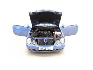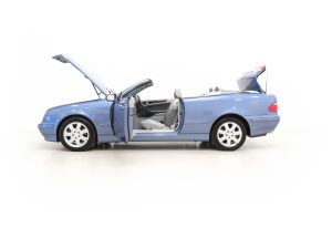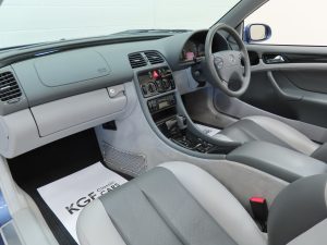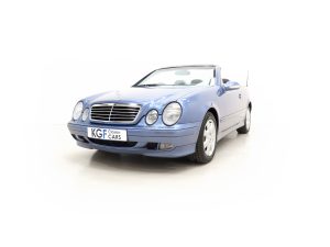This sporting CLK320 Avantgarde is finished in factory optional Quartz Blue metallic, (Code 935), and the paintwork remains 100% original. Having covered just 15,661 miles with one owner from new, the car has always been garaged and used primarily in dry conditions, and as such the paint finish is near flawless. The beautifully made trim sections, lights and badges are as new, and the original quality blue multi-layer hood is near perfect. Inspection of the impeccable underside will further cement this example’s utterly cosseted existence. Supplying dealer branded Riverdale Reading number plates remain fitted. An outstanding example in all respects and collector grade quality.