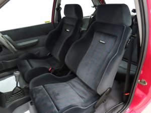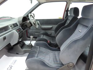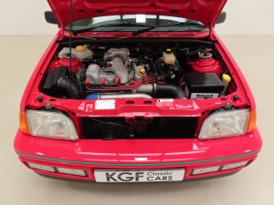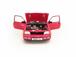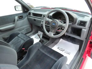 The 1.6 OHC fuel injected engine with Garrett AiResearch T2 turbo charger and intercooler produces 131bhp and 183Nm of torque. Figures are quoted at 7.7 seconds to 60mph and a top speed of 127mph to make this a true ‘hot hatch’. The engine bay is simply incredible with vibrant coloured plastics, clips, hoses and fasteners all standard. Delicate Ford labels, warning stickers and even the Ford red ignition leads remain fitted. The often misplaced plastic battery cover remains attached. The 5-speed transmission works seamlessly with a progressive clutch action and short shift.