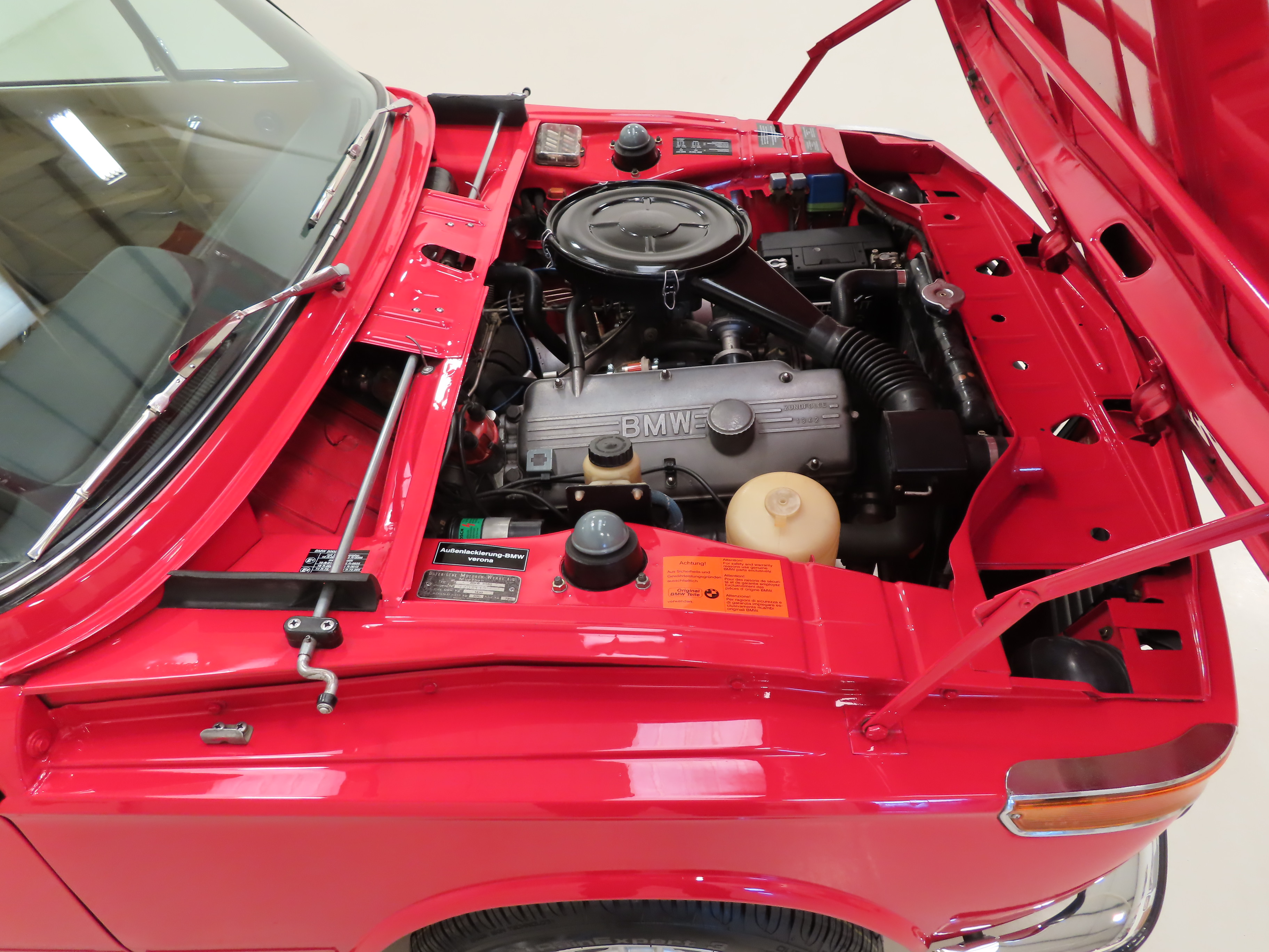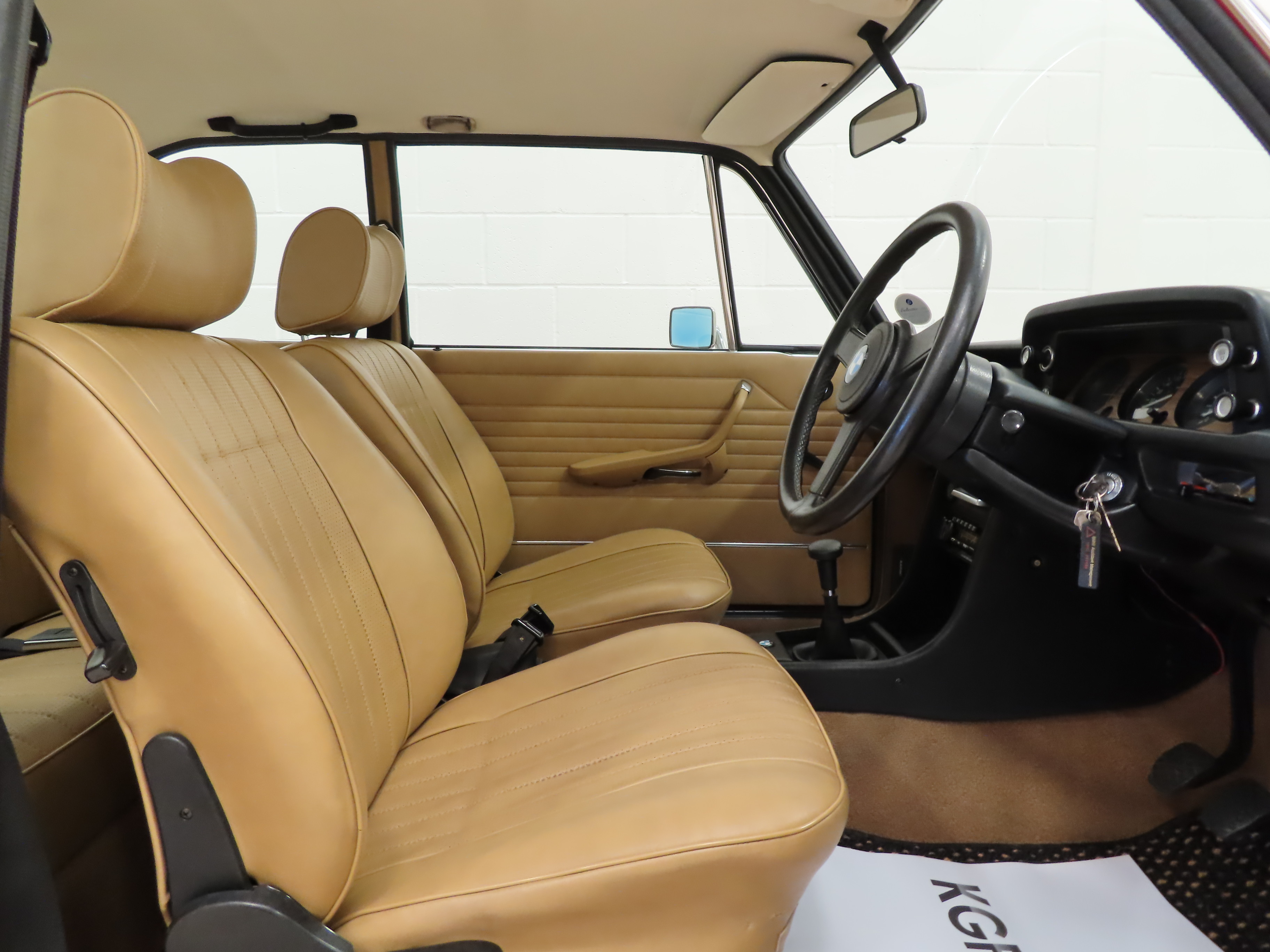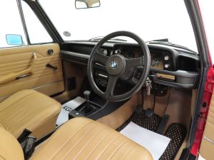 All-steel torsionally stiffened shell, rubber-padded bumpers, side rails, front fully retracting windows, front quarter lights, front hinged windows to rear, trip recorder, clock, cooling water thermometer, instrument lighting intensity control, fresh air heater, cigar lighter, battery and oil pressure warning lights. Factory Options: Rev counter in place of clock, sports steering wheel, laminated windscreen, heated rear window, 3-point inertia reel front safety belts, 2-point inertia reel rear safety belts, second exterior overtaking mirror, leatherette upholstery, front overriders, velour carpets, boot mats, lockable petrol filler cap, Becker Europa radio cassette. Accessories: BMW Sport Paket alloy wheels, Coco Mats – Black and Neutral 2-piece front, ambient temperature thermometer.