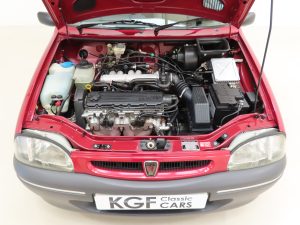 The lively 1120cc transverse mounted OHC engine produces 60bhp enabling a top speed of 96mph and a respectable 0-60mph time of 13.7 seconds. The engine jumps into life at the first flick of the key and offers a remarkably eager driving experience and more fun than you might expect! The engine bay is immaculate with factory plates, stickers and labels intact. The five-speed manual transmission offers light and precise changes and a civilised motorway driving manner. These baby Rover’s really do drive well!
