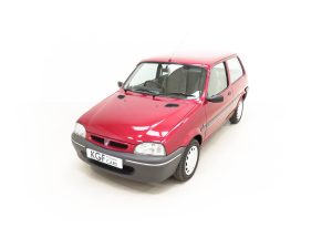 This charming special edition Rover 100 Ascot has covered just 15,902 miles from new and is preserved in fabulous unrestored condition. Finished in factory optional Nightfire Red Pearlescent, (Code CAQ), the original paintwork has deep luscious shine and all factory panels are straight with uniform gaps. There is none whatsoever of the common bodywork issues and corrosion found on most examples and even the pristine wheel arches still have factory spot weld dimples. The underside is structurally perfect with the light factory wax still visible. Close scrutiny reveals nothing other than dry window rubbers barely worthy of mention. The unmolested appeal of this splendid baby Rover is further emphasised with standard trim sections and Ascot badges all present and correct. All glass and even the headlights are etched with the registration number. Supplying dealer number plates, rear screen sticker and tax disc holder remain fitted. Hugely superior in condition to the usual offerings and one for continued preservation, enjoyment and fun retro outing!