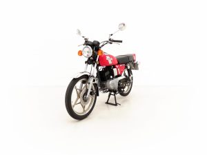 With modern technical advances such as Crankshaft Cylinder Injection, (CCI) and Pointless Electronic Ignition, (PEI), this little 100cc disc-valve two-stroke motor is a screamer! Delivering a claimed 12bhp at 8500rpm, this machine will reach 71mph with similar mpg! (Source: The Biker February 1981). Presenting beautifully with the untampered engine number clearly visible, it kicks into life effortlessly emitting a wonderful whiff of two-stroke smoke and the familiar ring-ding exhaust note! The 5-speed transmission engages smoothly helping to keep the engine in the powerband from 5000rpm.