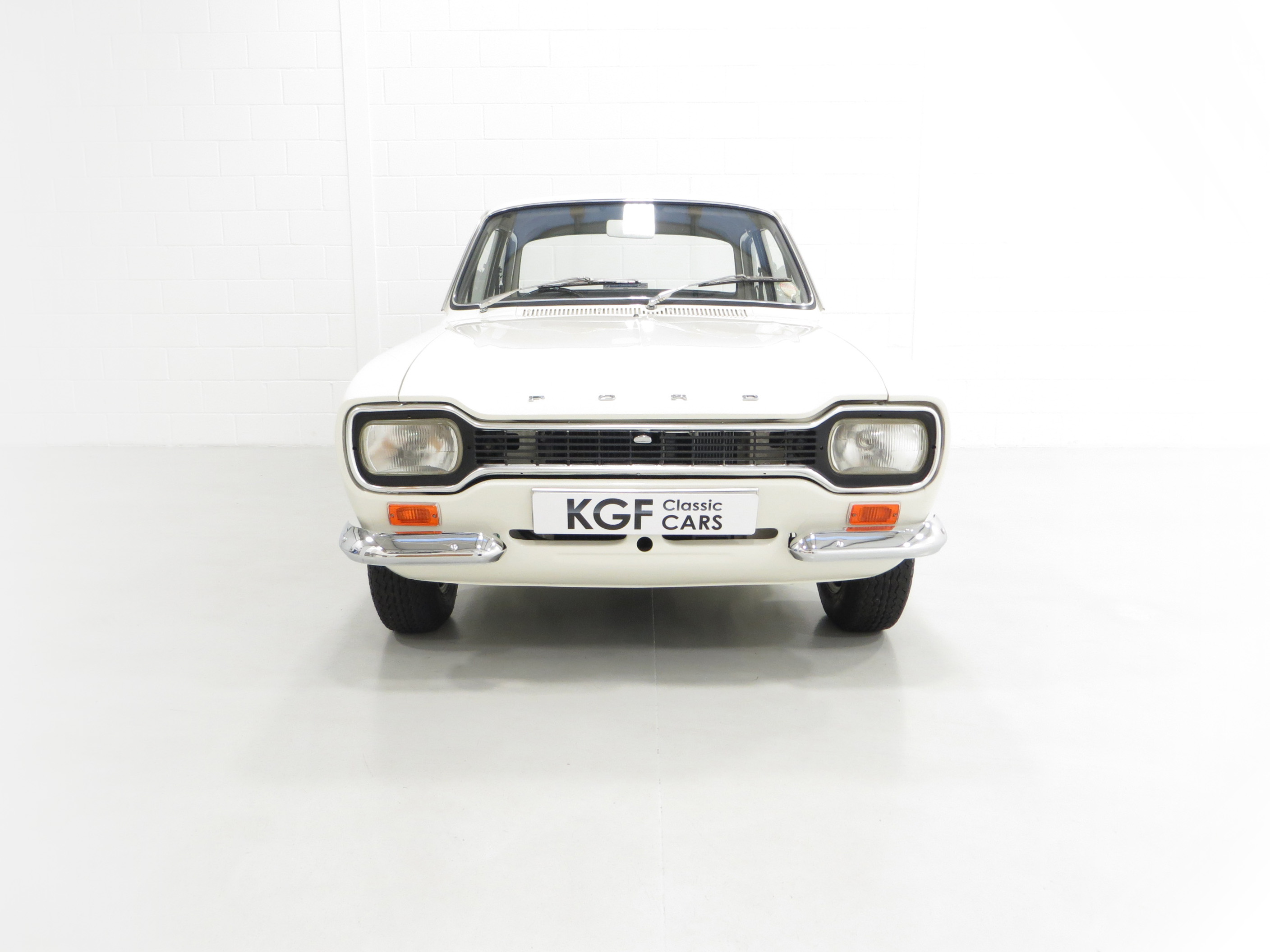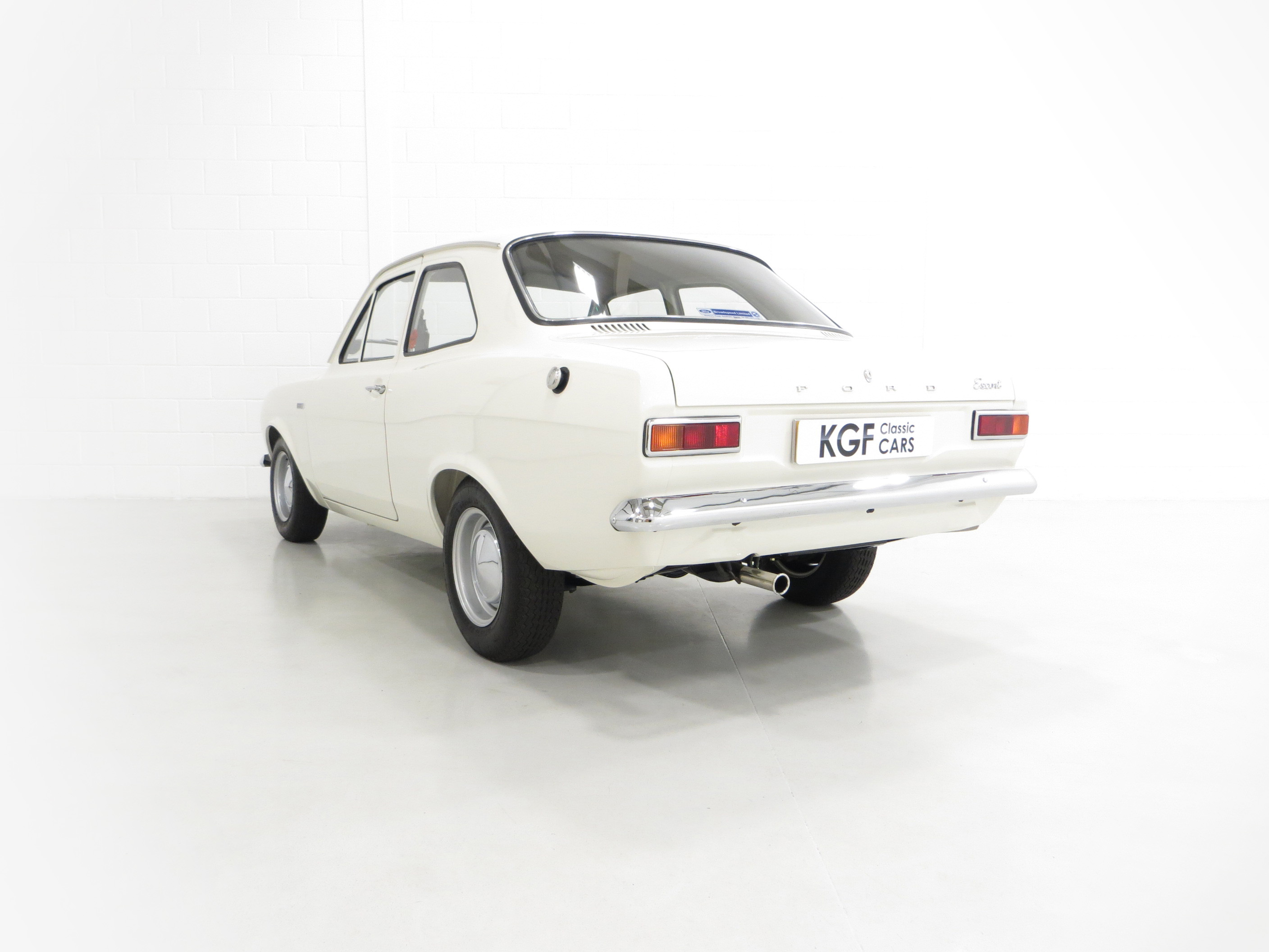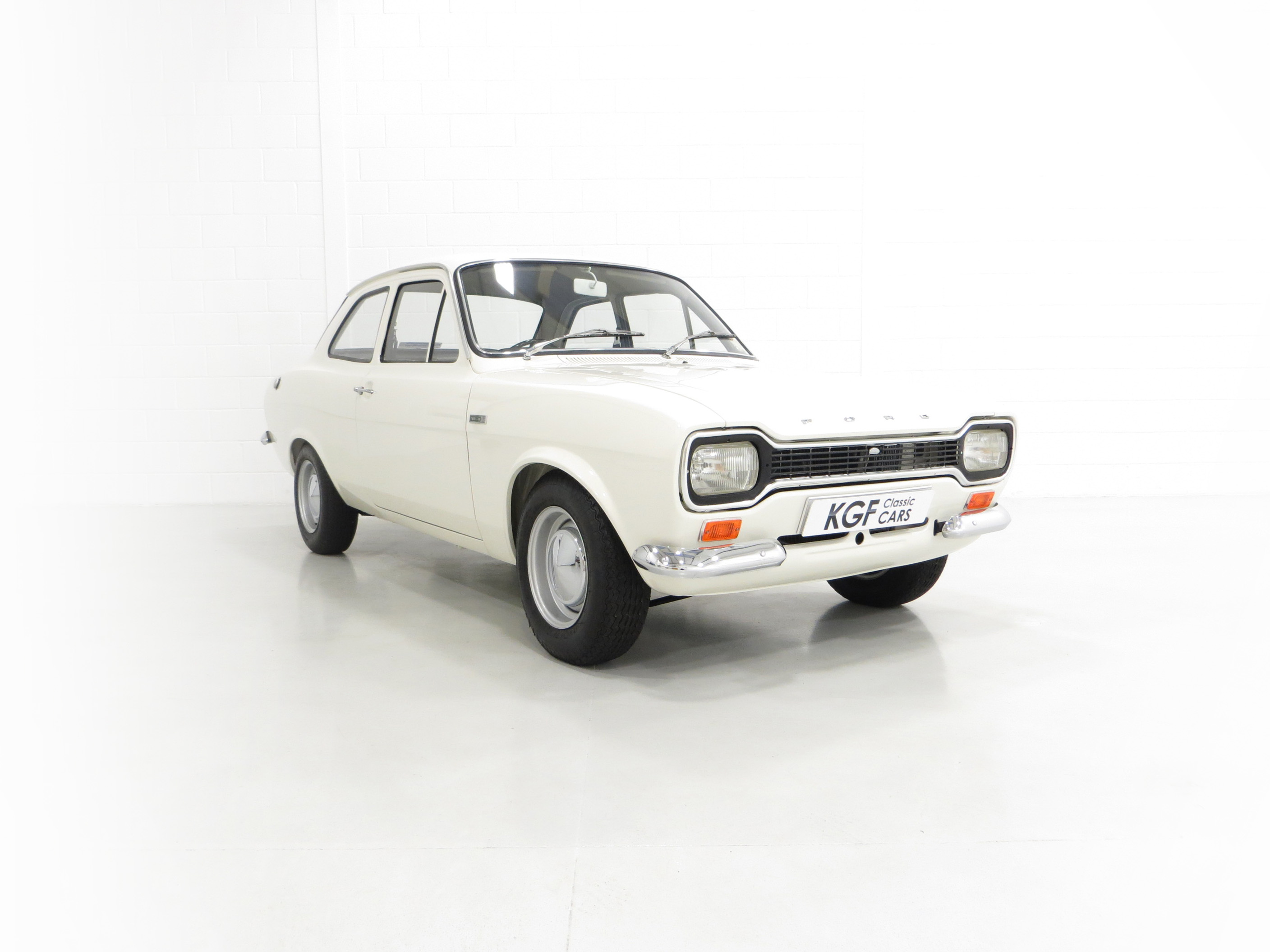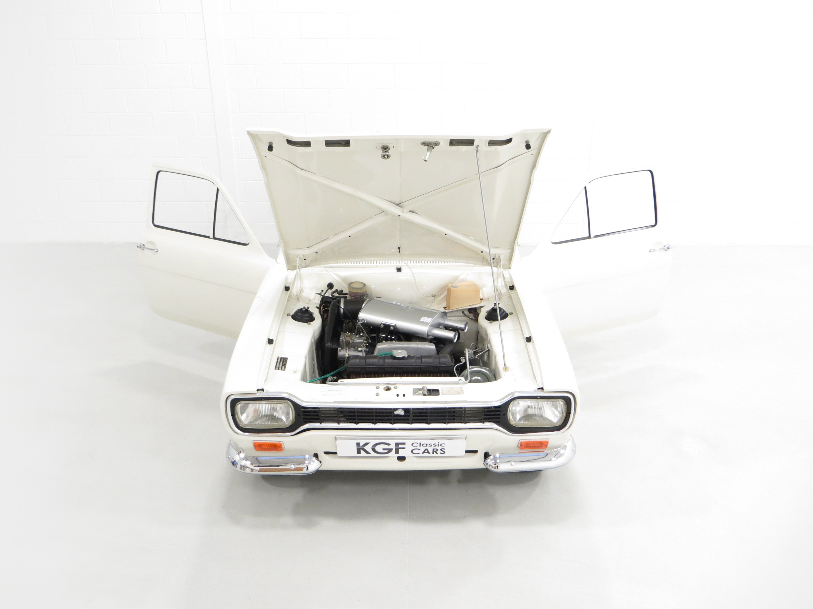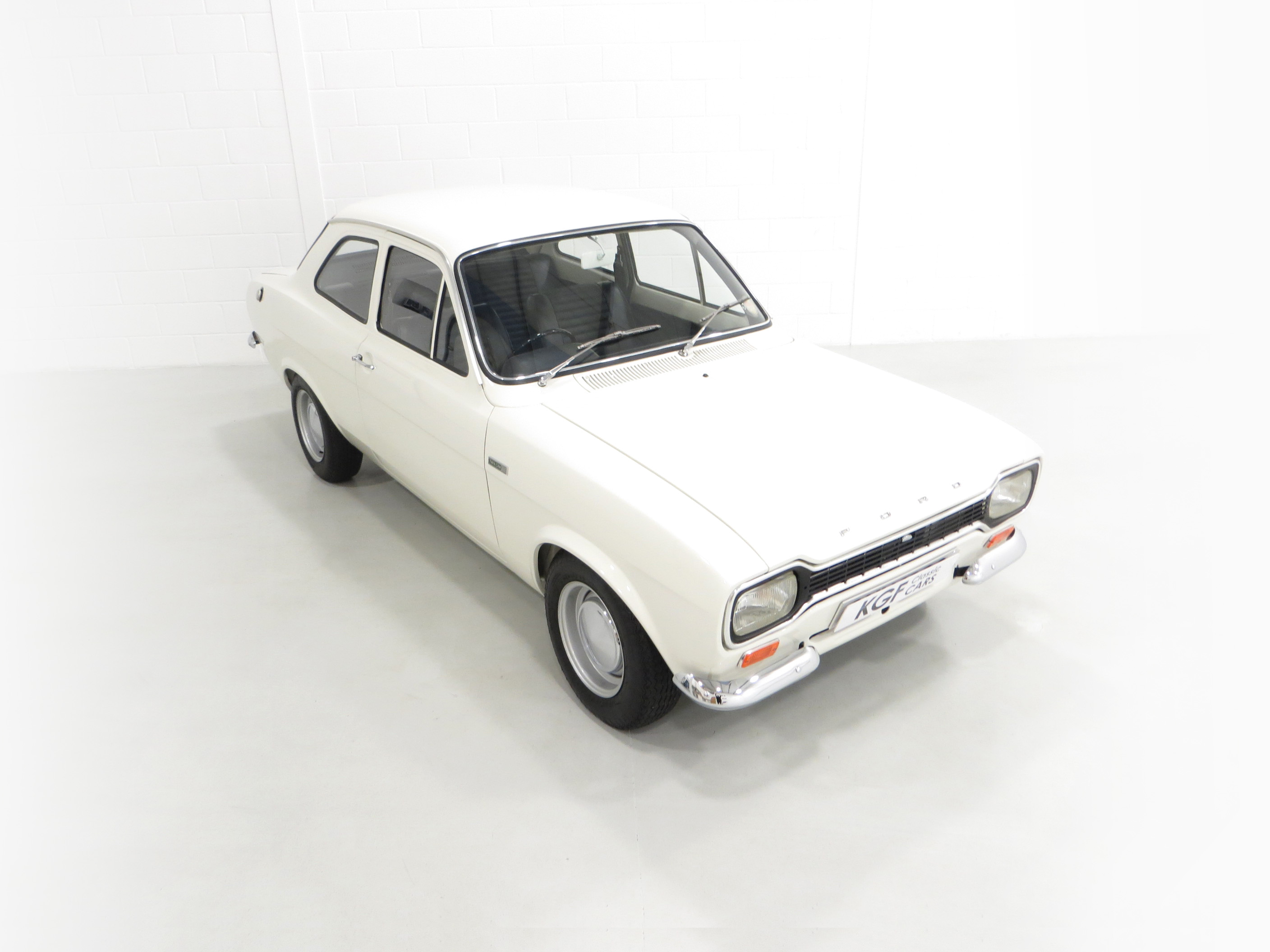 Simplicity and functional in every respect. An interior perfect to factory specification retaining virtually all original, date correct trim, instrumentation and switchgear. The heavy lateral fluting Black Vinyl, (Code D401), seats with push button controlled tipping are unmarked. The door cards are not reproduction and have the early padded block type stitched effect design, even the carpet is the original six-piece set! All gauges operate including the 140mph speedometer and 8,000rpm rev counter, within the satin chrome finished binnacle requiring calibration. The small metal Ford oval is fitted to the inner passenger-side doorstep. The pristine boot area houses the floor mounted spare wheel on top of the Hardura boot mat, car battery, jack and wheel brace in the fawn muslin bag and a very rare Rally Equipment option, an auxiliary touring fuel tank an extra 9 gallons of fuel, doubling the escort fuel capacity. Perfect in every way.