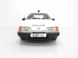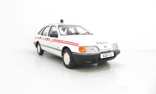 Dare to be different and stand out from the crowd with this Police replica Ford Sierra whilst pretending to be DC Alfred ‘Tosh’ Lines or DCI Frank Burnside from ITV’s The Bill, or indeed whoever you wish, (Police related ideally). This 1990 Ford Sierra Laser is finished in Ford Diamond White, (Code B3), and has undergone the professional fitting of Police replica decals and Cambridgeshire Constabulary Police crest, along with detachable roof mounted blue light. A car that was a regular daily driver until 2019, this Sierra having provided reliable service to its long-term owner for 26 years is not to the usual KGF Classic Cars standard but looks great and has real presence. Very presentable overall, the car on inspection has age related markings and routine repair work to the sills and underside has been undertaken. The wheel arches, door tops and other common weak areas are sound but historical work is evident. All trim sections, lights, glass and badges are present and fully intact. A perfect prop car or simply for the classic Ford and Police memorabilia enthusiast with a big sense of humour!