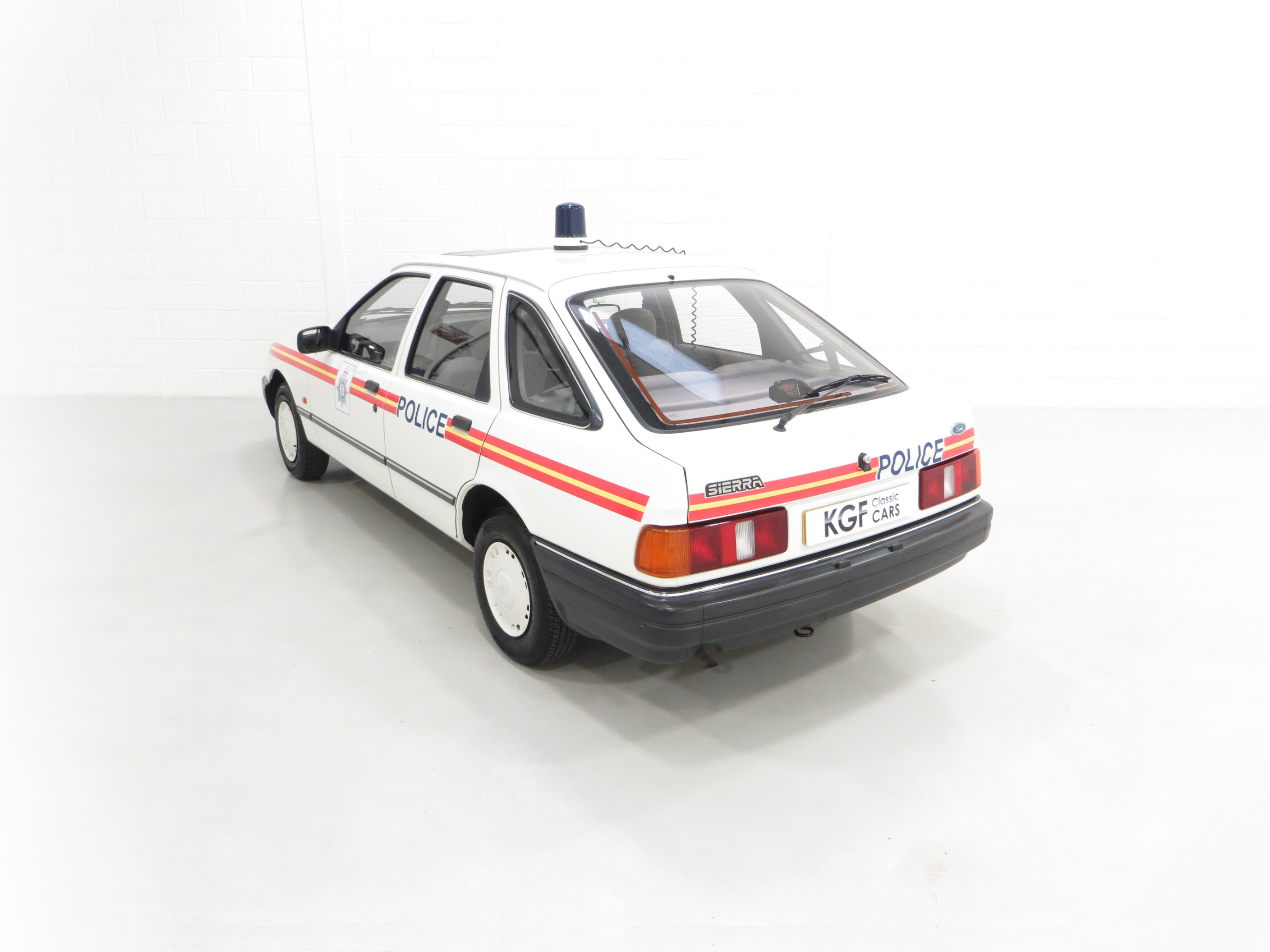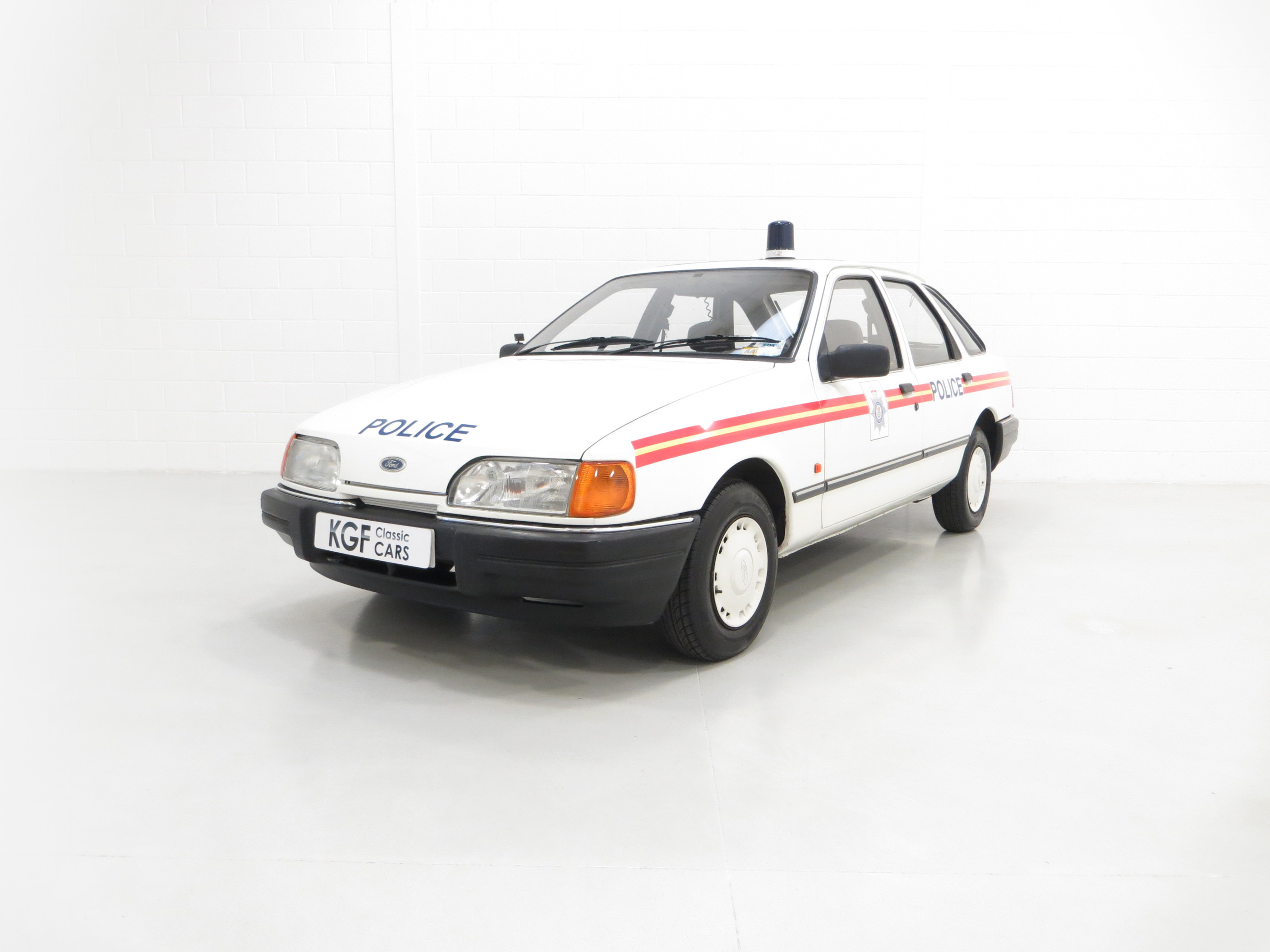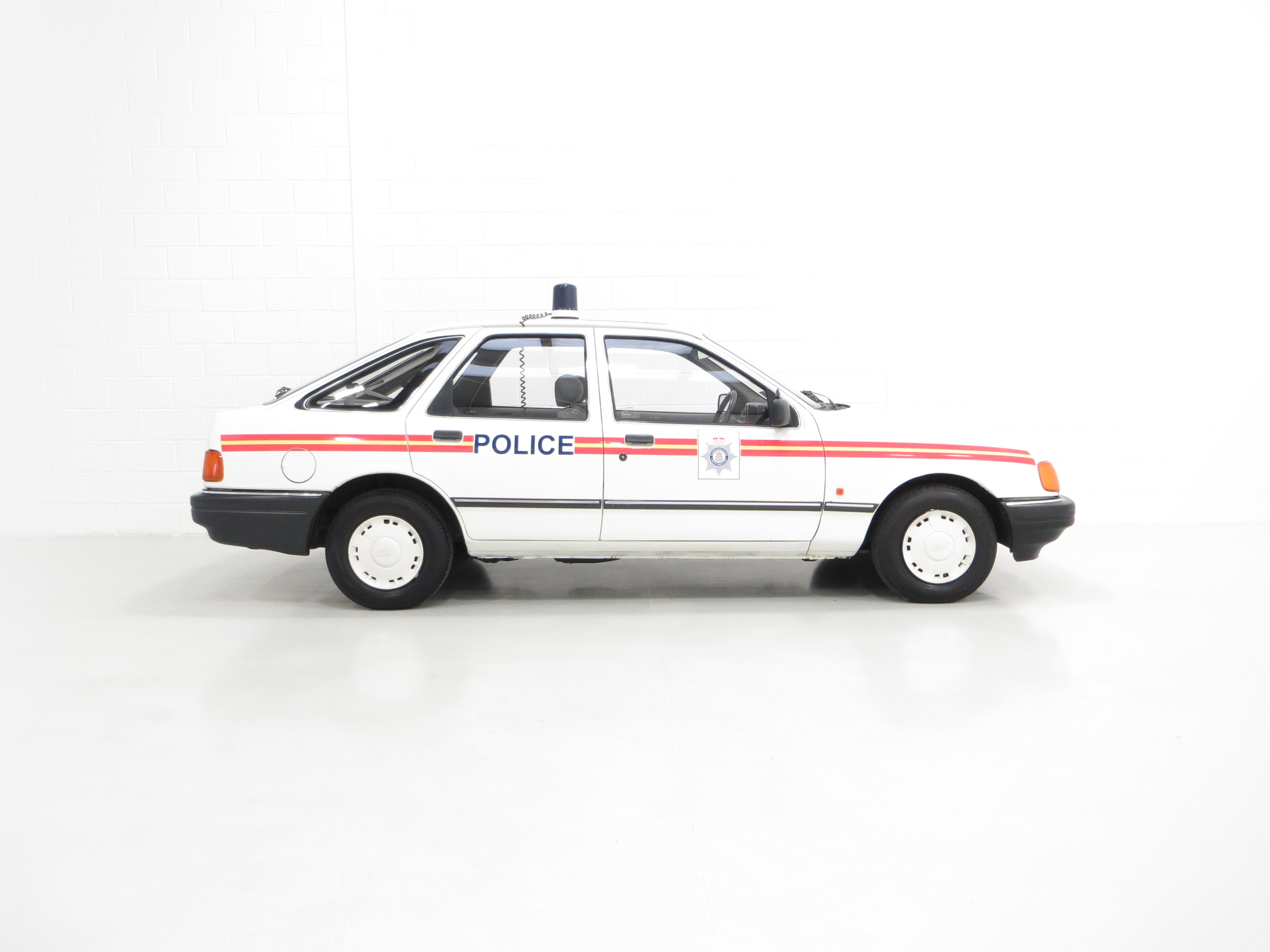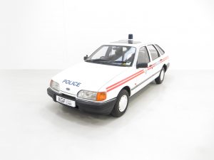 Calling all cars, a road legal Ford Sierra 1.6 Laser Police car recreation.
