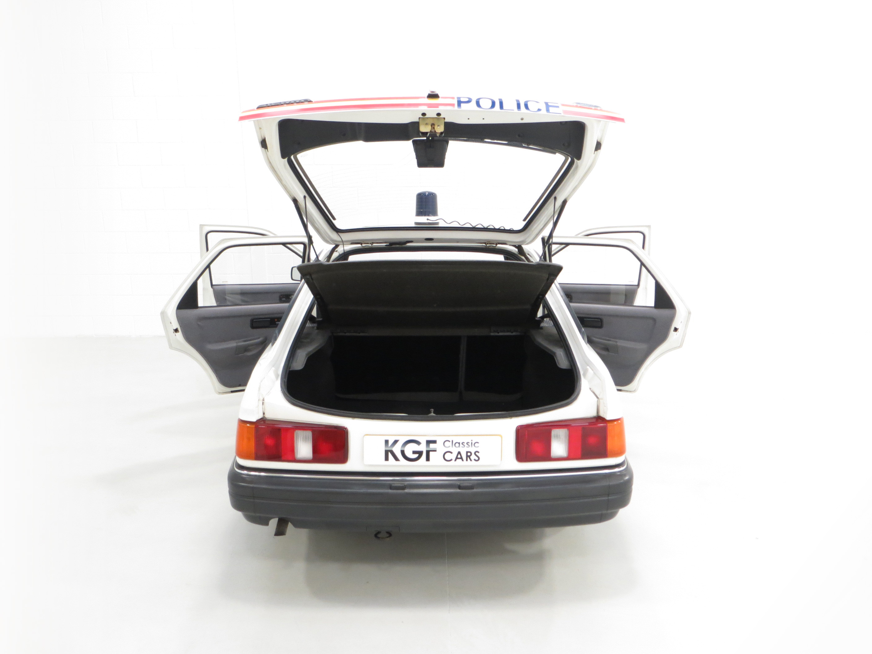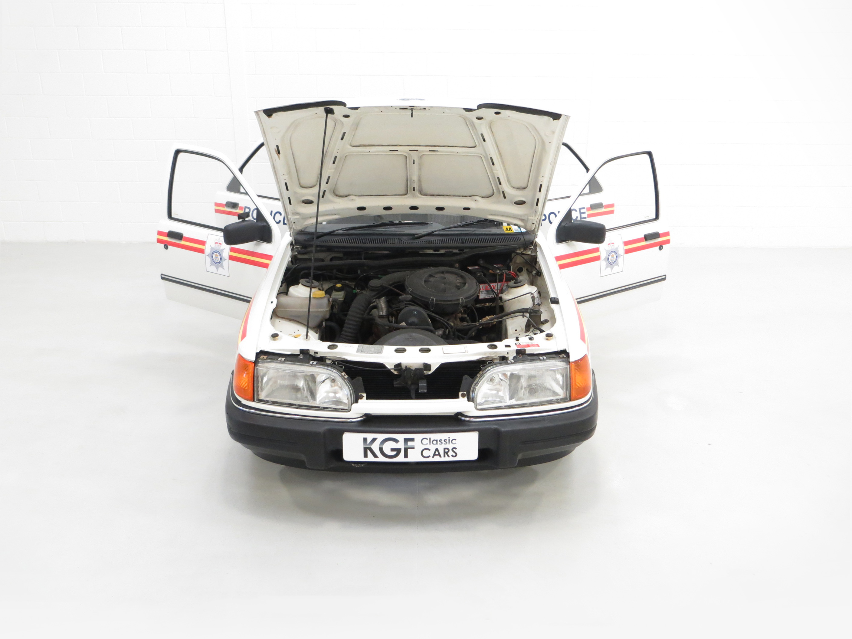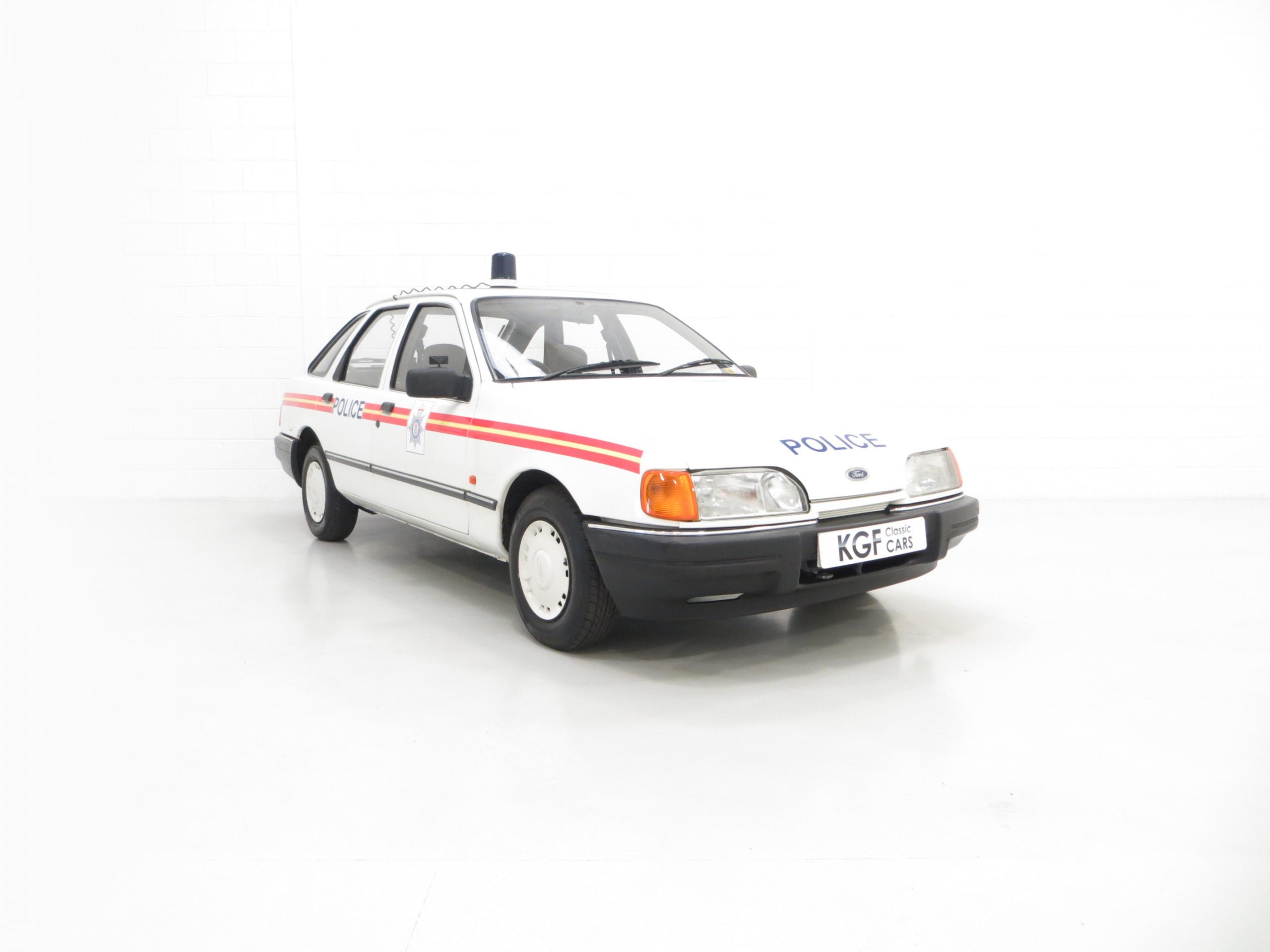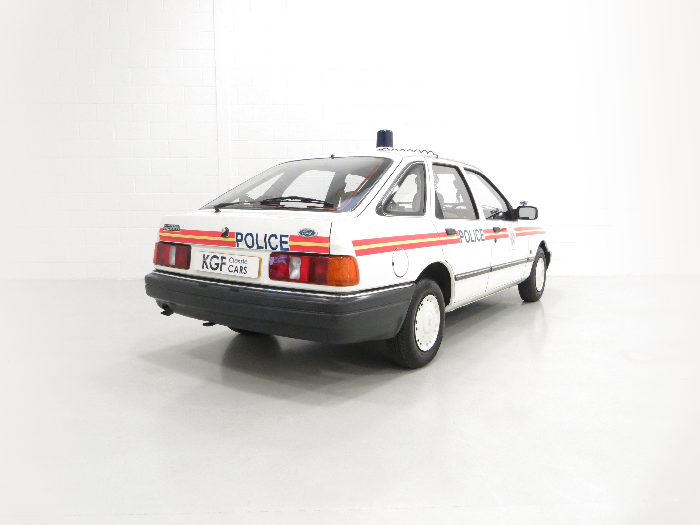 Calling all cars, a road legal Ford Sierra 1.6 Laser Police car recreation.