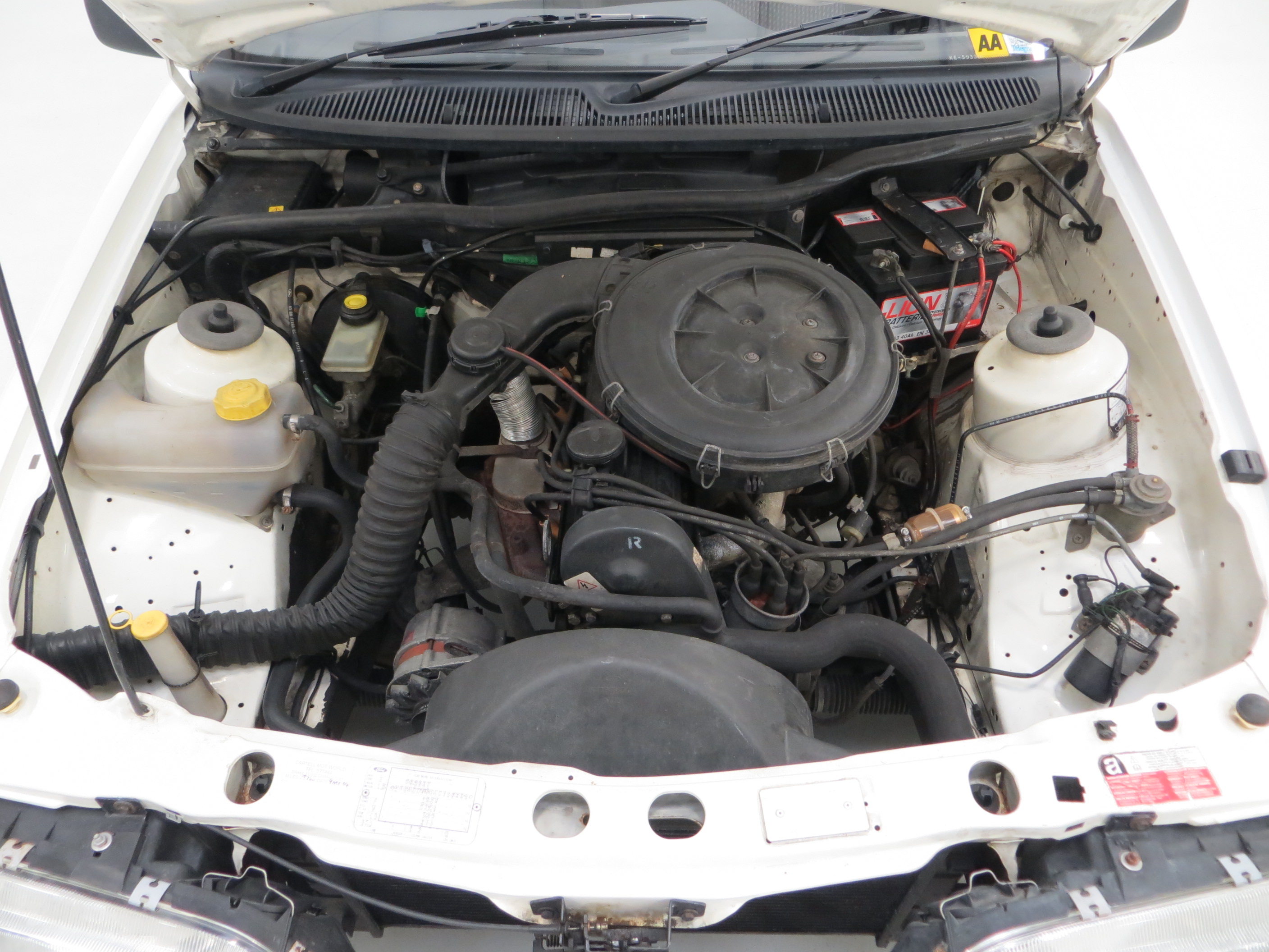 The original 13”steel wheels wear the correct genuine trims which have been amateurishly refurbished and cracks visible. 165/80 R13 tyres have plenty of tread remaining. The very clean boot area houses the spare wheel, Ford jack and wheel disc board whilst the perfectly preserved boot floor still has factory stickers attached. The dual line servo assisted G-Valve brakes with ventilated 10.5” front discs and rear drums bring the car up to a steady, straight and assured halt.