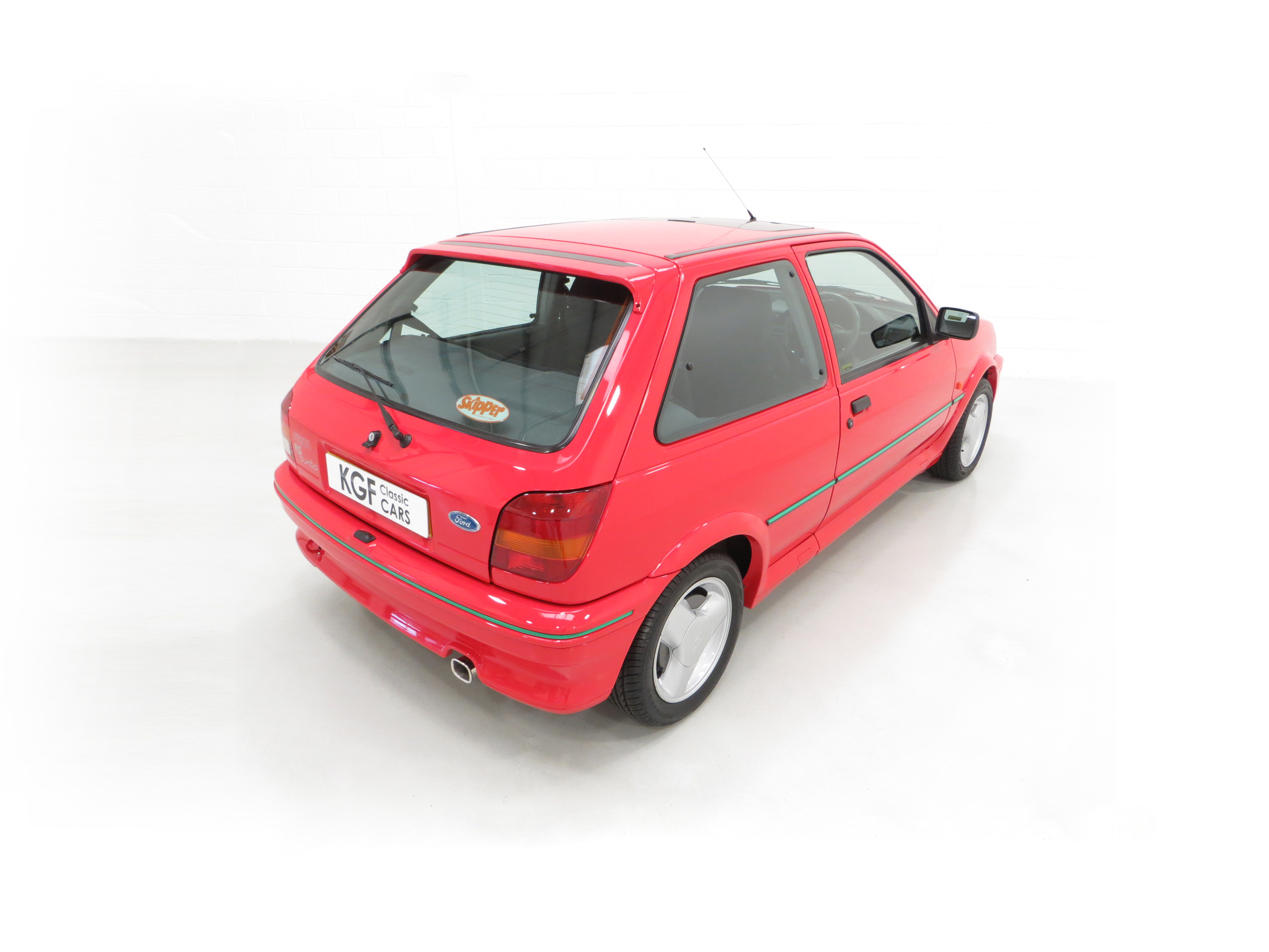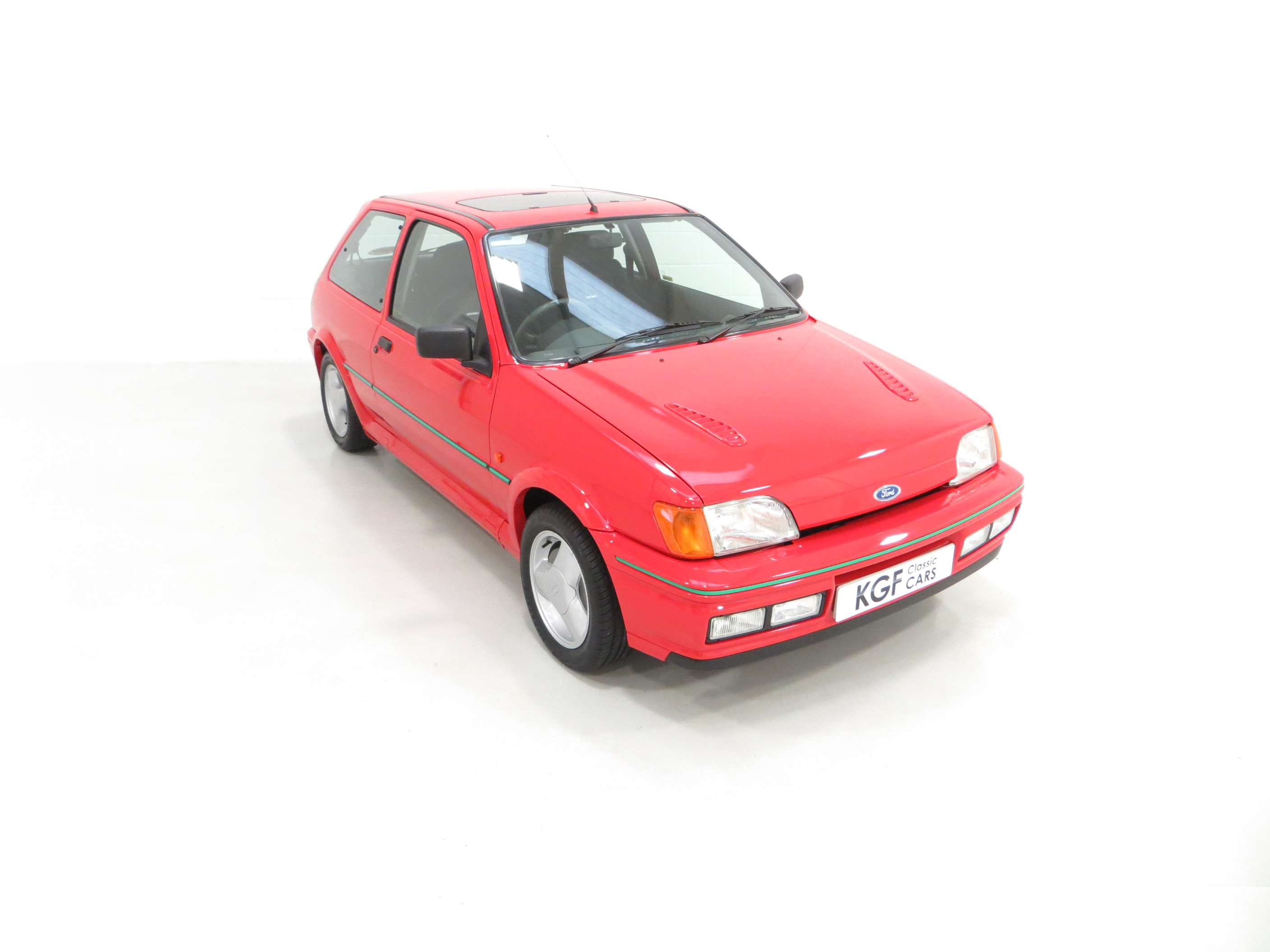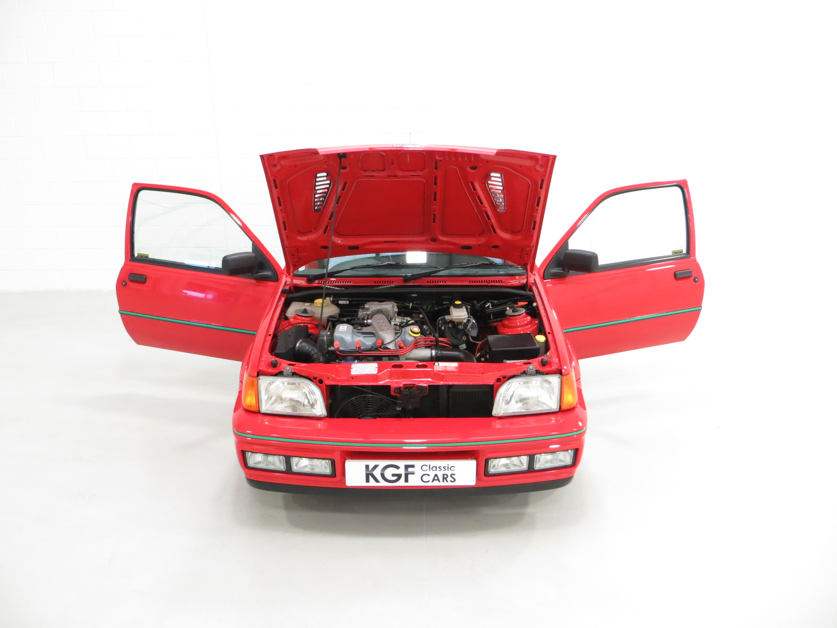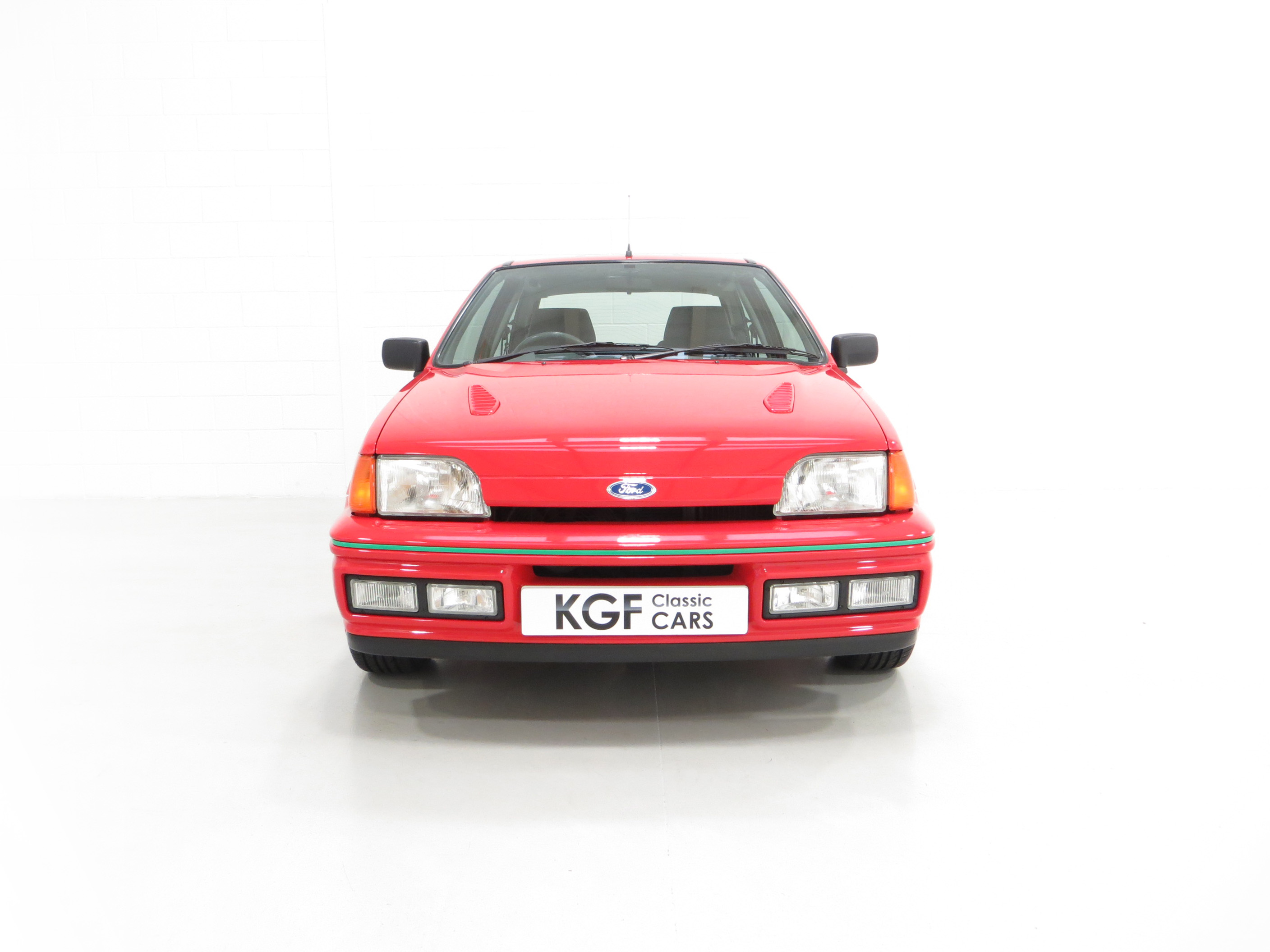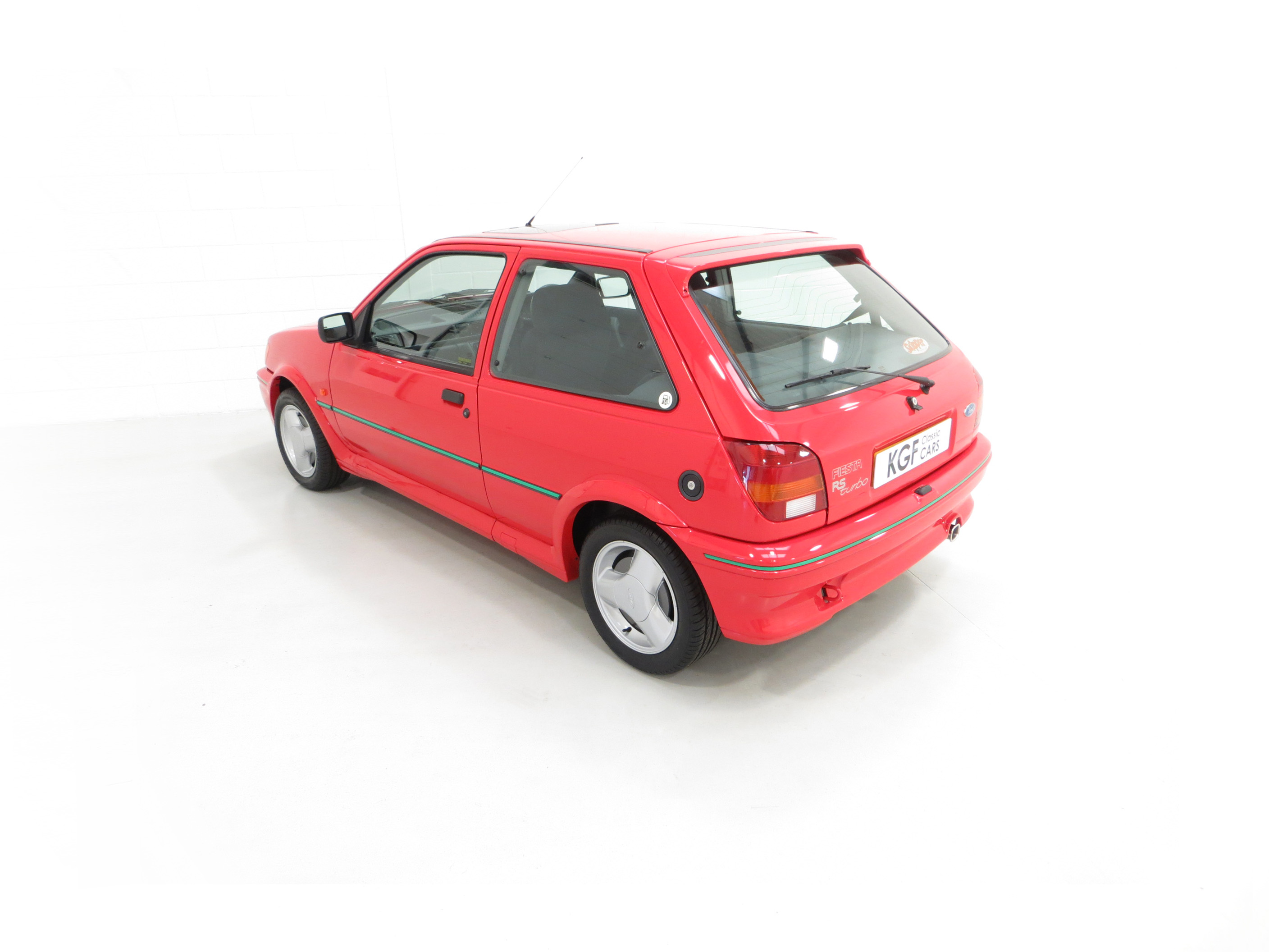 Finished in lustrous Ford Radiant Red, (Code P1), this incredible example has an amazing deep gloss shine created from years of enthusiast ownership and careful storage. All the trim and rubbers are as new and reflect the uber low mileage. All Ford glass is chassis etched and the lights are correct fitment. The factory decals and vibrant green insert remain in pristine condition and supplying Ford main dealer number plates and rear screen sticker remain fitted. A set of Fiesta RS Turbo show plates are also included. The purposeful body shape and sports styling is a delight and those enjoying the show circuit will appreciate the amazingly clean underside and wheel arch apertures. Suitable for the most discerning and fastidious collector seeking a totally unmolested and very rare Fiesta RS Turbo.