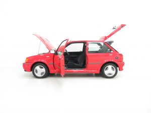 This fantastic example of Ford’s first RS Fiesta was supplied by Ford Main Dealers, Skipper of Burnley on the 1st August 1991 to a Mr John Fle of Oldham. In his care for an incredible 20 years until 2011 the MOT certificates reveal minimal annual use and purely for pleasure weekend fun being his pride and joy. Sold to the only other recorded owner, Mr Fleming, a Ford fanatic who mothballed the car when having covered just over 10,000 miles. The car had an MOT in 2013 at 10,539 miles and in June 2018 with 11,314 miles it was treated to a full service, recommission and cambelt. Supplied with all handbooks, service book and a full complement of keys and even an old ford remote fob. An A4 folder contains old tax discs, MOT certificates and some invoices along with a new car sales brochure and specification rear view mirror hanger. With a short production of just two years from 1990 to 1992, prior to the introduction of the Fiesta RS1800, this represents a truly rare RS Ford with this example undoubtedly being one of the best, unmolested examples in existence.