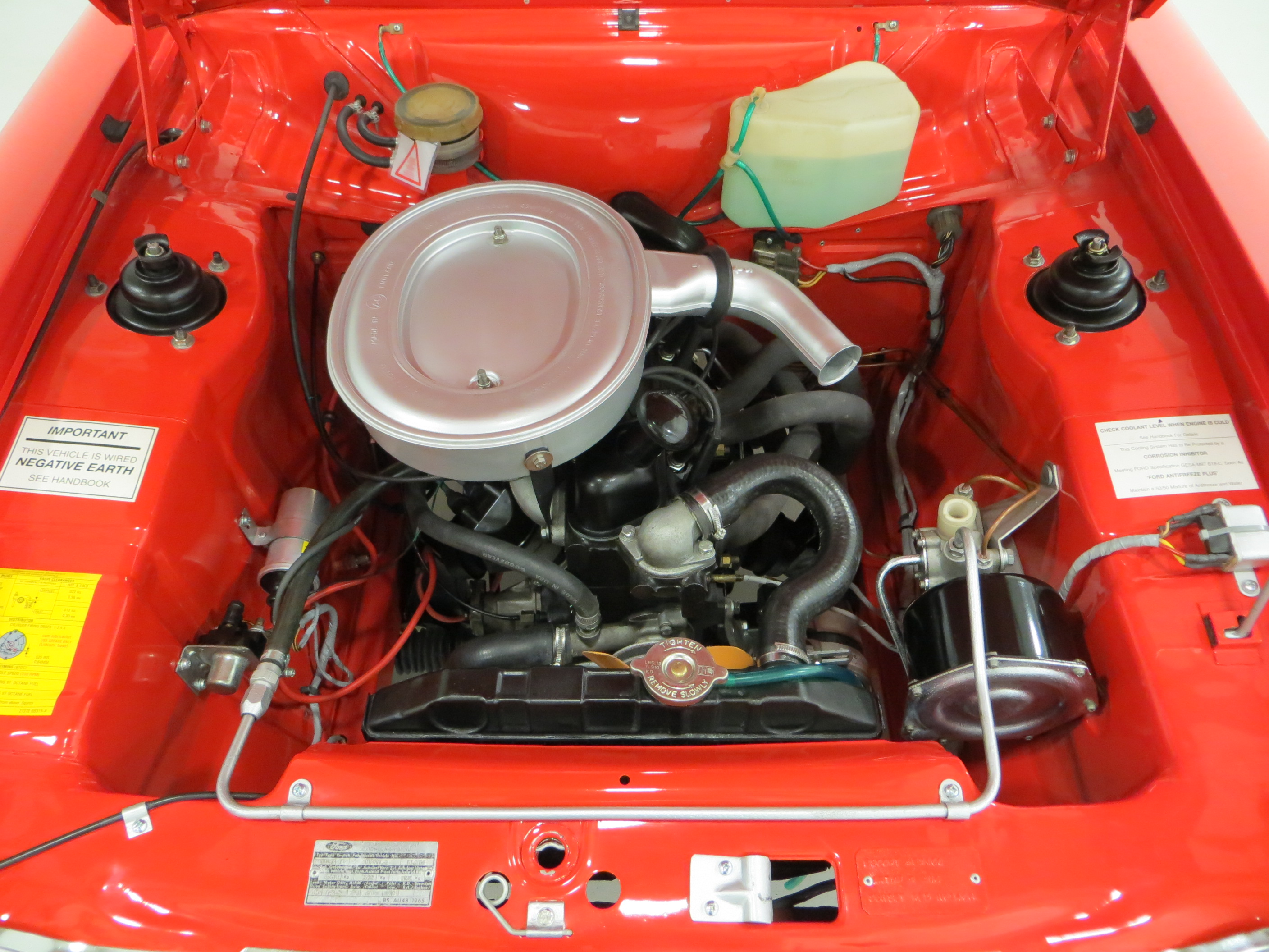 Being an early car this stunning example is fitted with the basic vinyl black PVC L-spec seats with vertical stitching, (Code AA). Expect no luxury with even the one-piece rubber floor mat fitted rather than carpeting of later Mexicos! Fitted with the desirable Springalex dished steering wheel and 140mph speedometer and 8,000rpm rev counter this car has innate driver appeal. The raised Ford badge on the passenger door sill is still fitted and all gauges function along with the interior courtesy light. The headlining, dash top and door cards are unmarked. The boot area is spotlessly clean with the battery in the boot and spare wheel fixed to the floor as per early AVO Mexico examples. A reproduction boot mat and jack are included. Simple and very special.