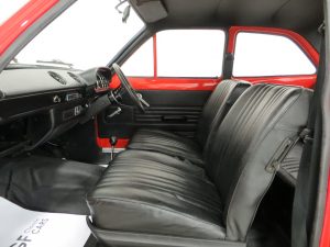 Nestled between the AVO Escorts inner front wings is the 1600cc Crossflow unit as fitted to this car from new. A Mexico with matching numbers is a rare thing as is the factory original AVO plate and chassis plate displaying all the correct identity codes. 0-60mph in 10.7 seconds and a top speed over 100mph is quoted. The engine bay is beautifully clean but not all fixtures are production line correct. The chassis number is just visible on the suspension reinforced plate. The factory 4-speed synchromesh gearbox as fitted to the Twin Cam and RS1600 works perfectly.