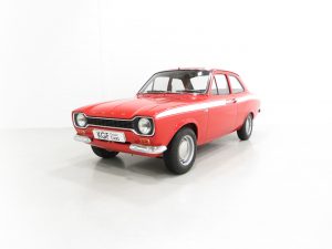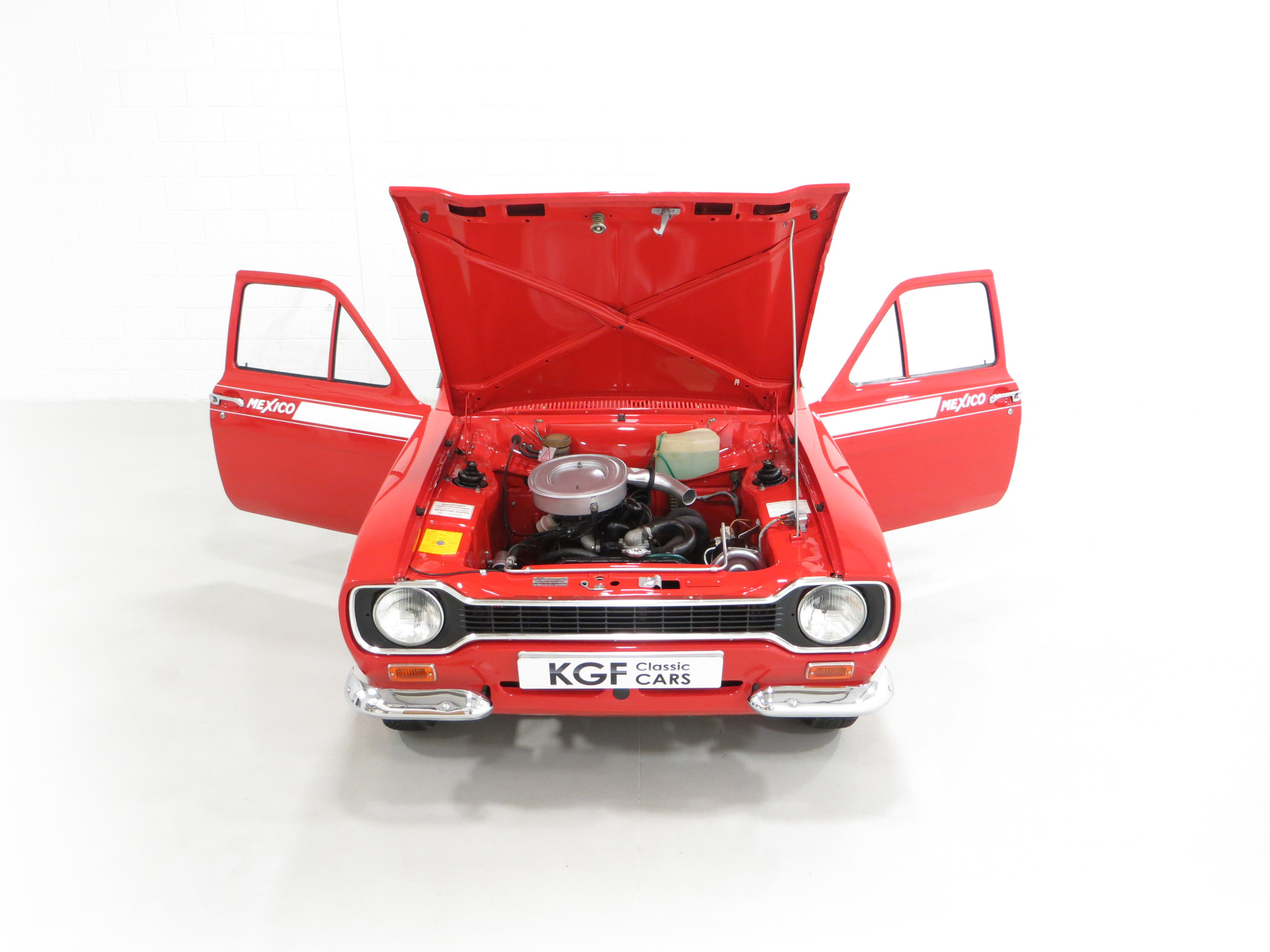 Built at Fords Advanced Vehicle Operations factory in Aveley in July 1971 this vehicle was registered on the 3rd August 1971 and has only had four former keepers from new. A very rare early car finished in one of three launch colours, Sunset Red, and incredibly still a matching numbers example with its factory supplied engine. Sourced by the AVO Owners Club model Registrar and Club Valuer in 2013 for the current Ford RS collector. Personally inspected by Glyn Morgan on the 10th March 2012 who writes that he is ‘completely satisfied that the car is a genuine 1971 Escort Mexico’. The difficult decision to sell this prime example was only taken to make room for a new addition, a low mileage Mk2 Ford Escort RS2000, identical to what the owner had when new! A collection of invoices, MOT certificates and old literature makes fascinating reading along with copies of HAVOC, the AVO Owners Club quarterly magazine for members. Spare keys are included. A very rare car for the avid collector and blue oval enthusiast.