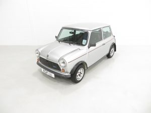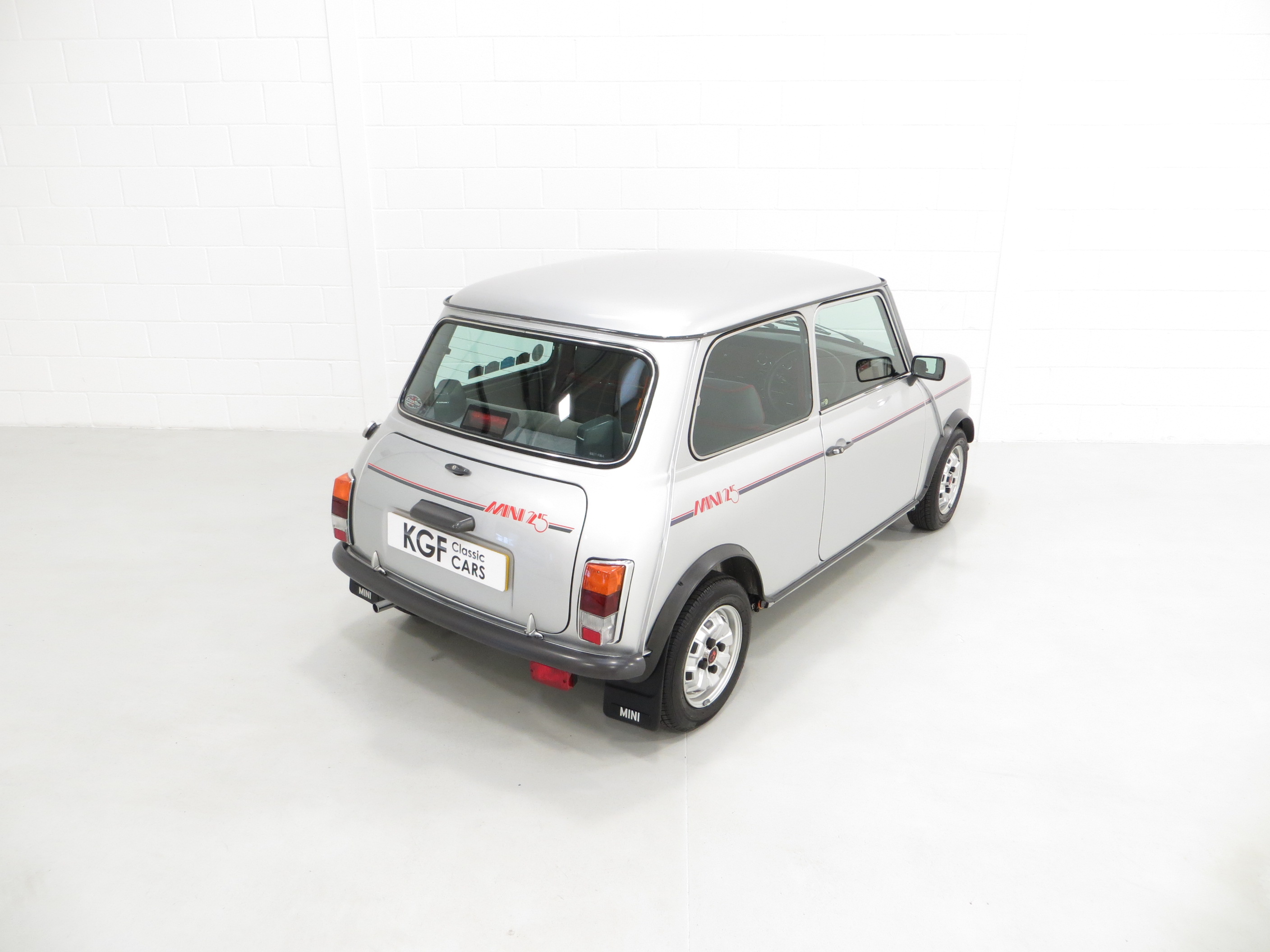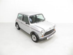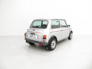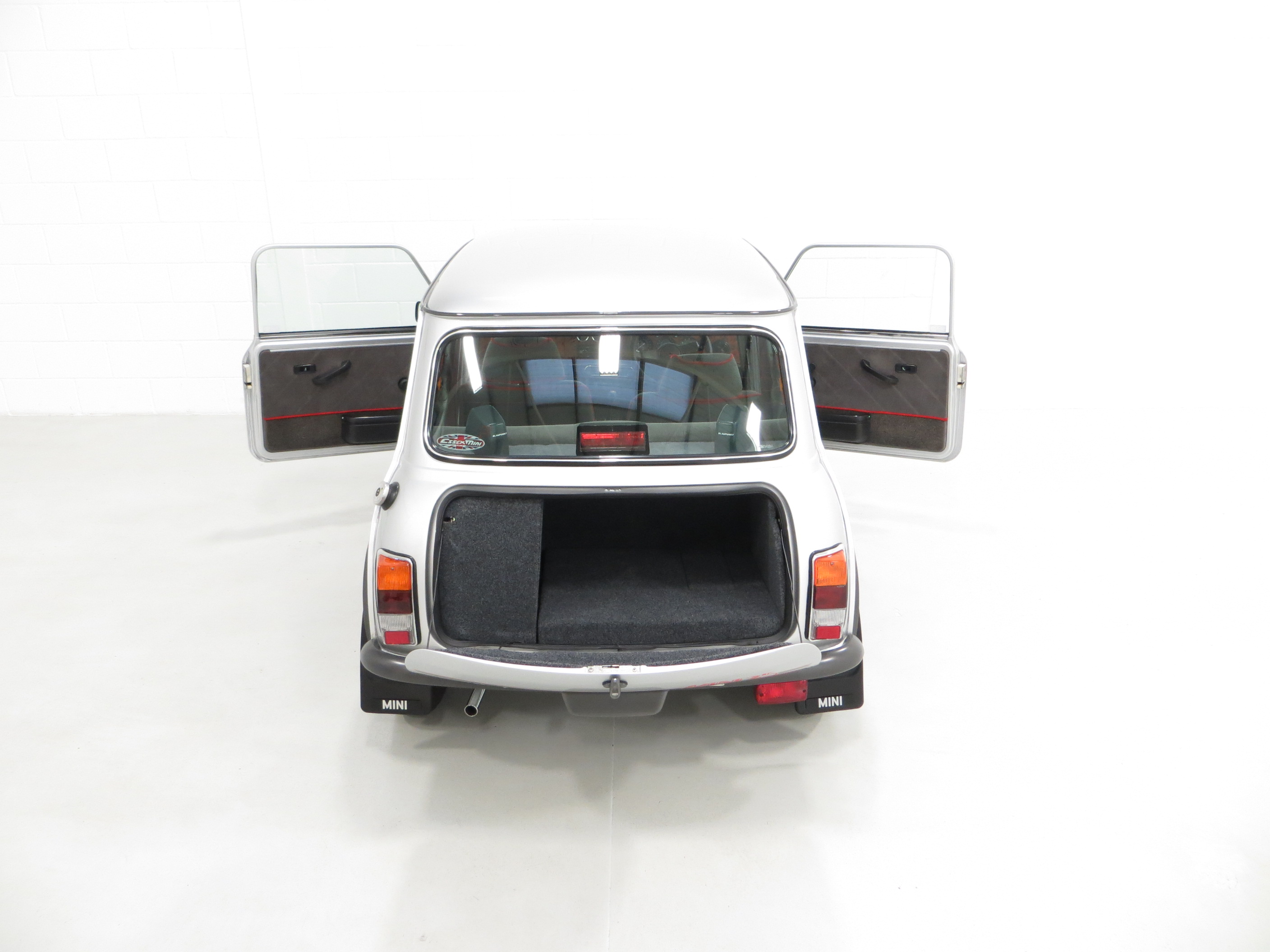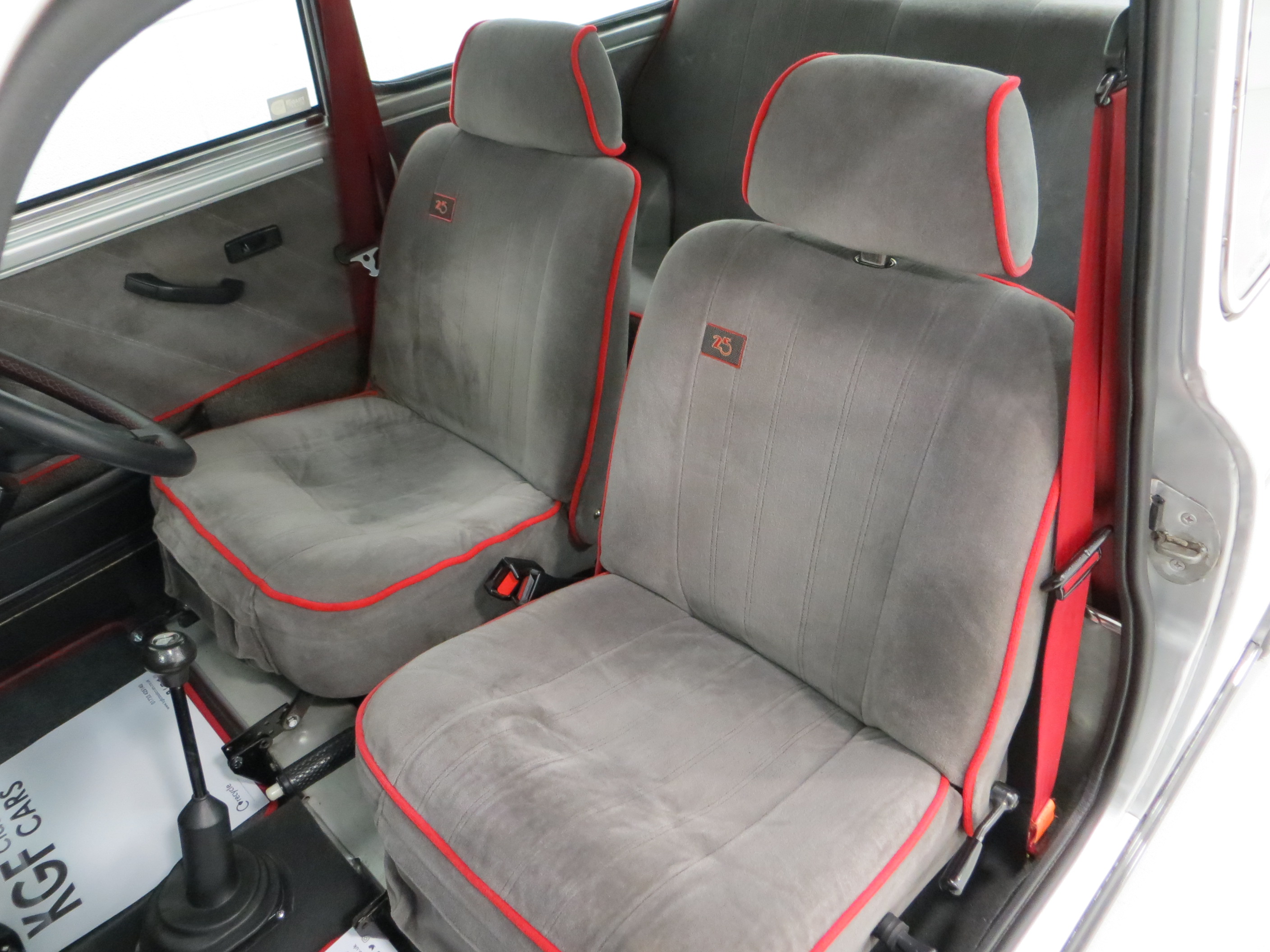 Laminated windscreen, tinted glass, twin exterior door mirrors, locking fuel filler cap, twin sun visors with vanity mirror, water temperature gauge, heated rear window, rear fog lamp, brake circuit test switch, front ashtray, twin door bins, rear companion boxes. Special Edition Mini 25 Features; Silver Leaf clearcoat paintwork, Grey Nimbus finish to Bumpers, grille, wheel arch extensions, door handles, roof and sill finishers. Grey/red side and bootlid tape with integral ‘Mini 25’ decal, Flint velvet knitted fabric seats and trim with ‘25’ motif, red velvet seat piping, unique seat front pockets, leather-bound steering wheel with ‘25’ motif, red seatbelt webbing, red piped floor mats. Dealer accessories; TOAD alarm, mud flaps, walnut dashboard incorporating additional gauges.