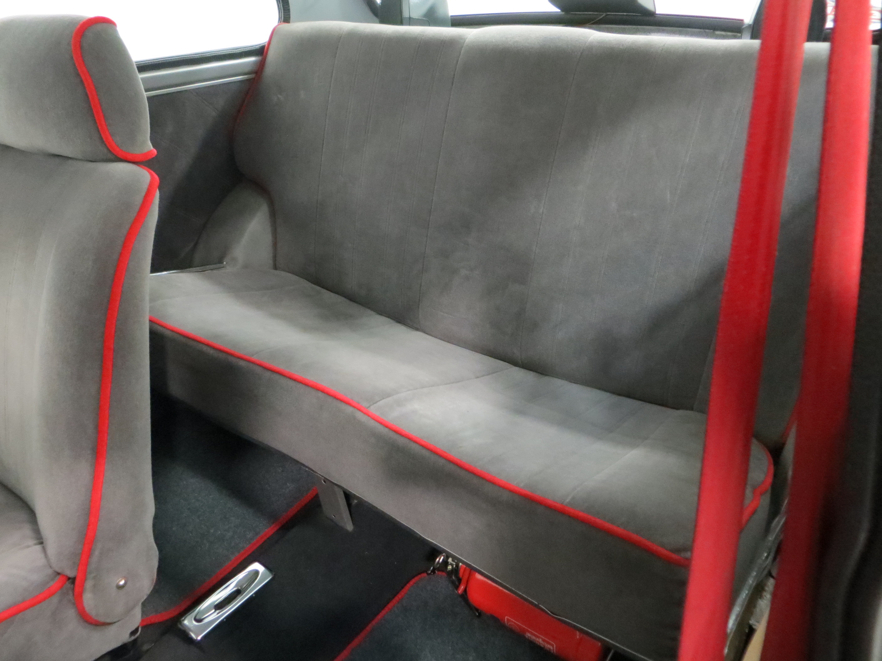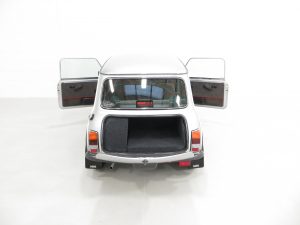 The unique interior of this outstanding Mini 25 is in fabulous condition. The Flint velvet knitted fabric seats and trim, (Code LCG), display correct ‘25’ motifs as well as the quirky seat-front zip pockets. All upholstery including the matching door cars and carpeting is beautifully clean with only one small nick to the driver’s seat back lower edge. The three spoke steering wheel with ‘25’ central motif has been perfectly retrimmed in the correct leather finish. The original Austin badged push button radio remains fitted but has been superseded by a hidden modern DAB unit which is within a professionally fitted upgrade walnut dashboard incorporating additional oil pressure gauge, ammeter and clock. The boot area has also been professionally boarded out with felt covered panels. A subtly improved interior with none of the original Mini 25 charm lost.